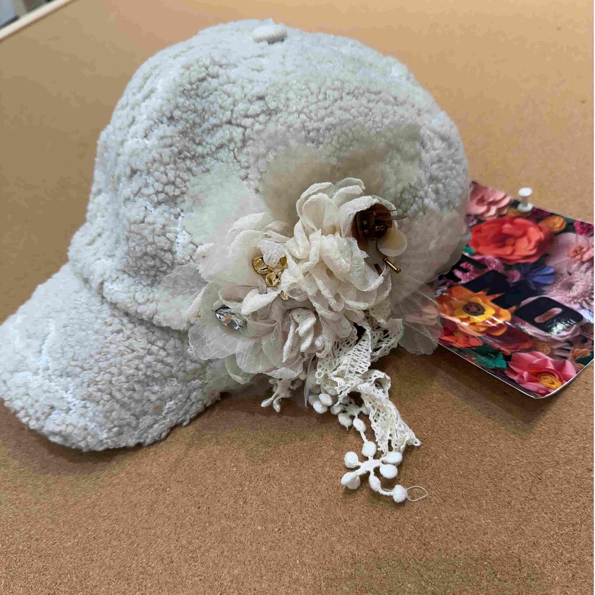 AKEMO Rhinestone Floral Fuzzy Hat(WHITE)