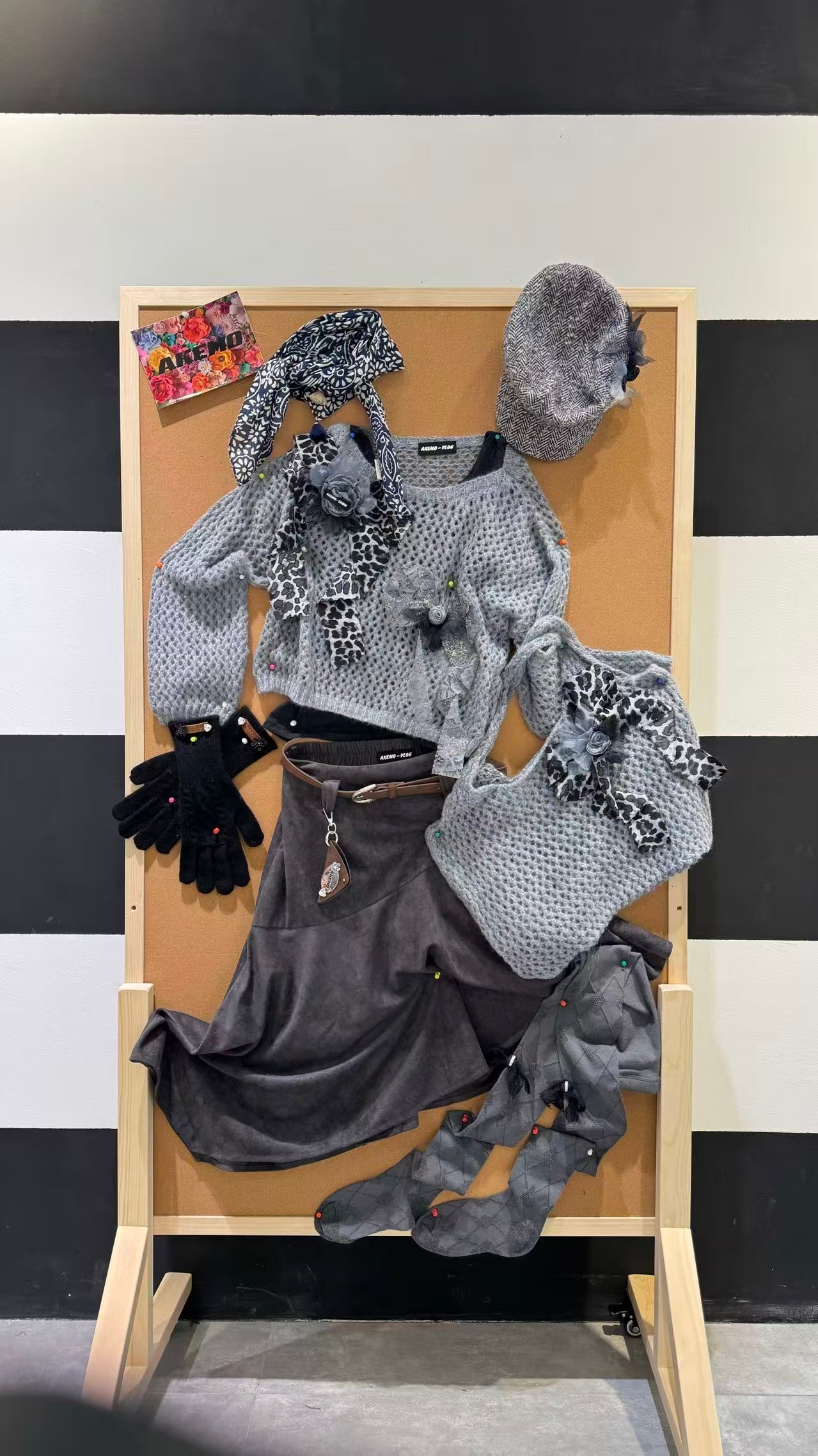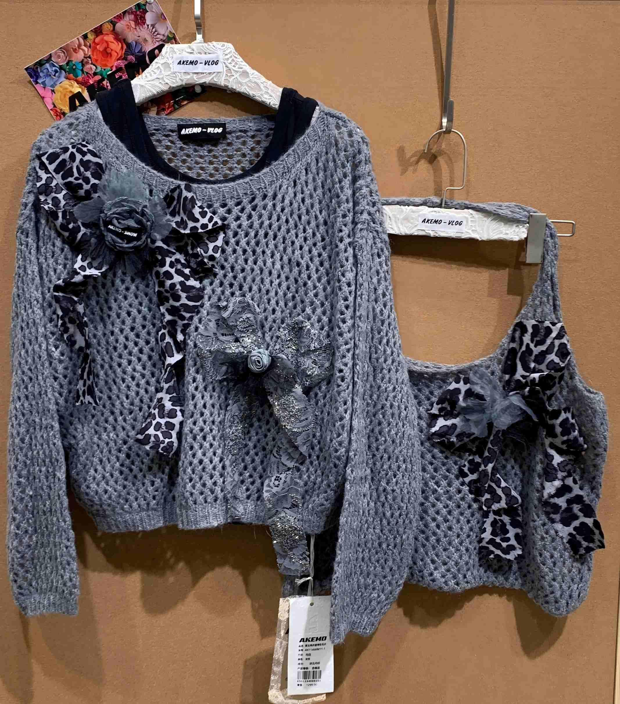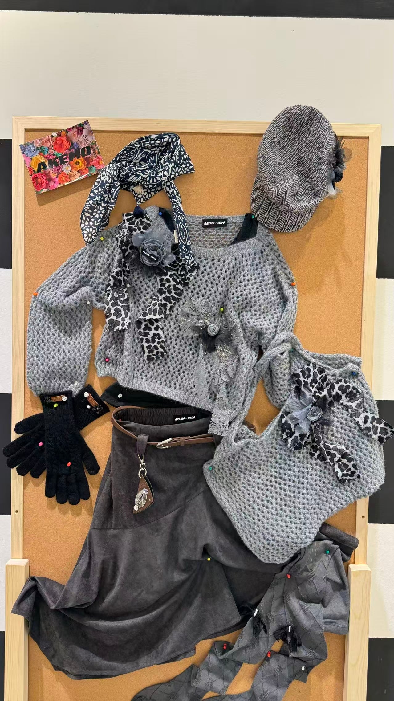 AKEMO Two-piece Sweater Tote Set(GREY)+ Suede Skirt
