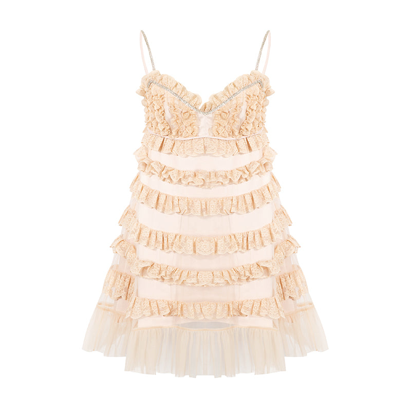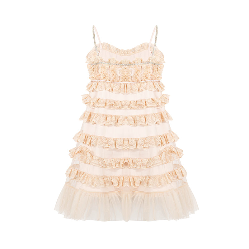 CEE CUBED Peach Pink Tiered Lace Trim Dress