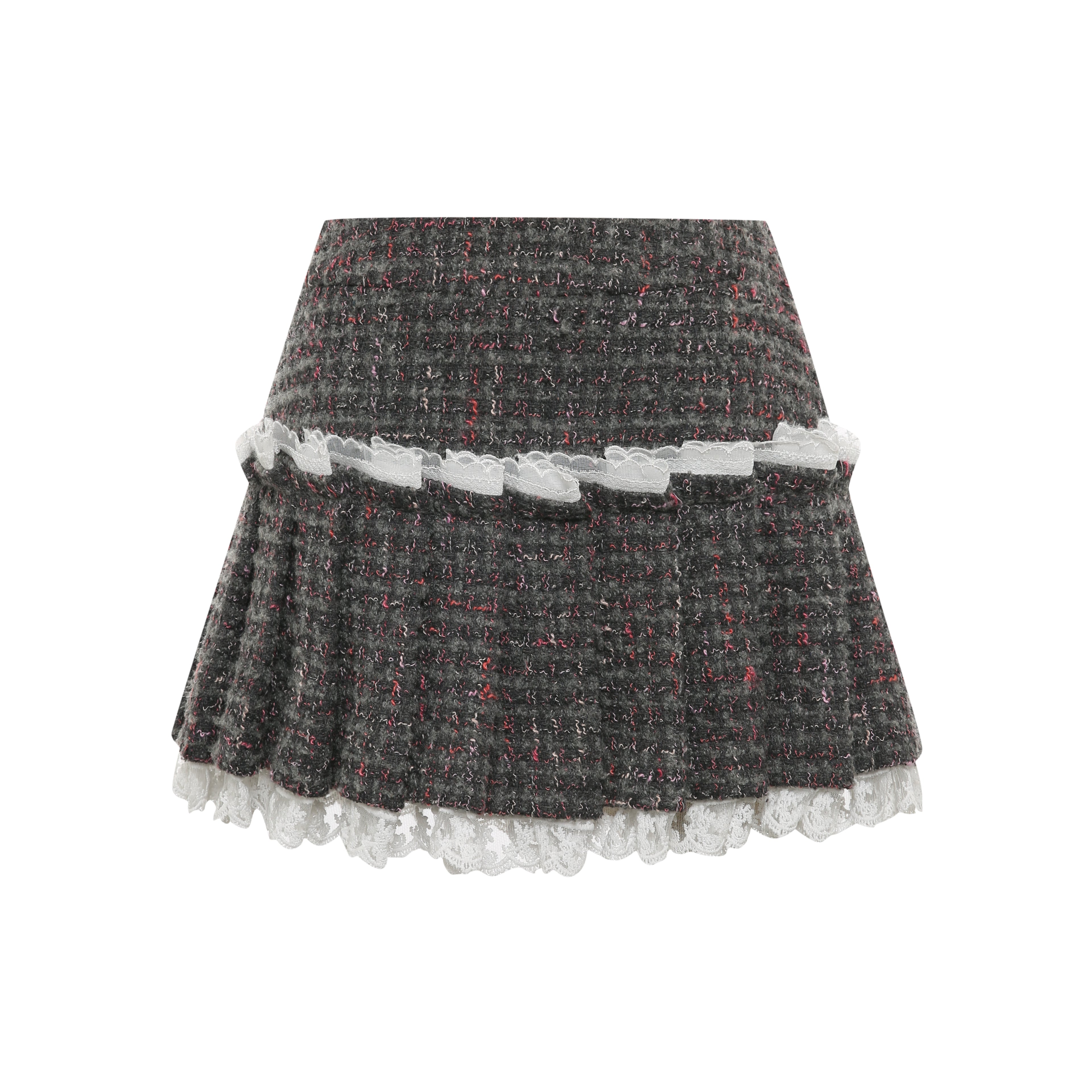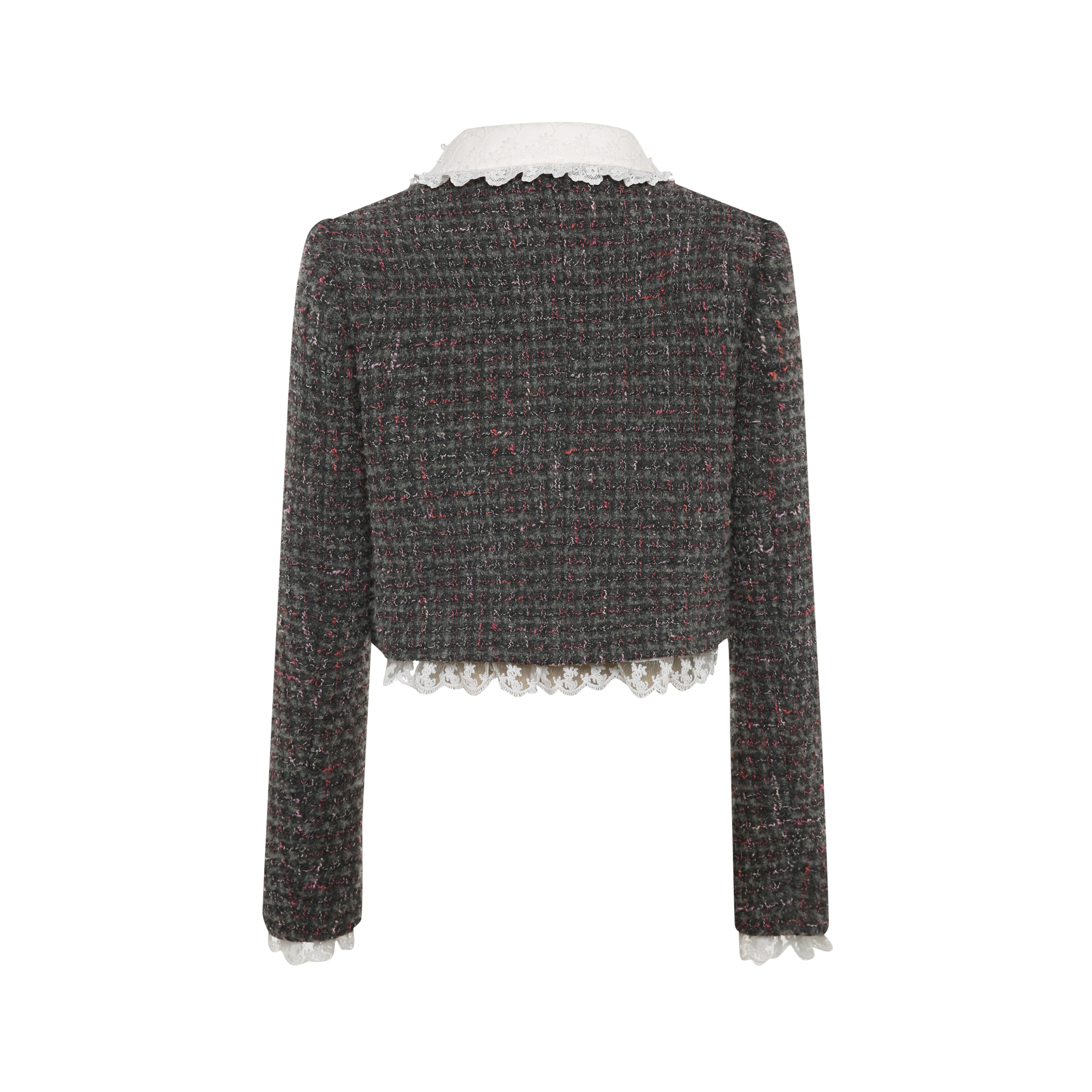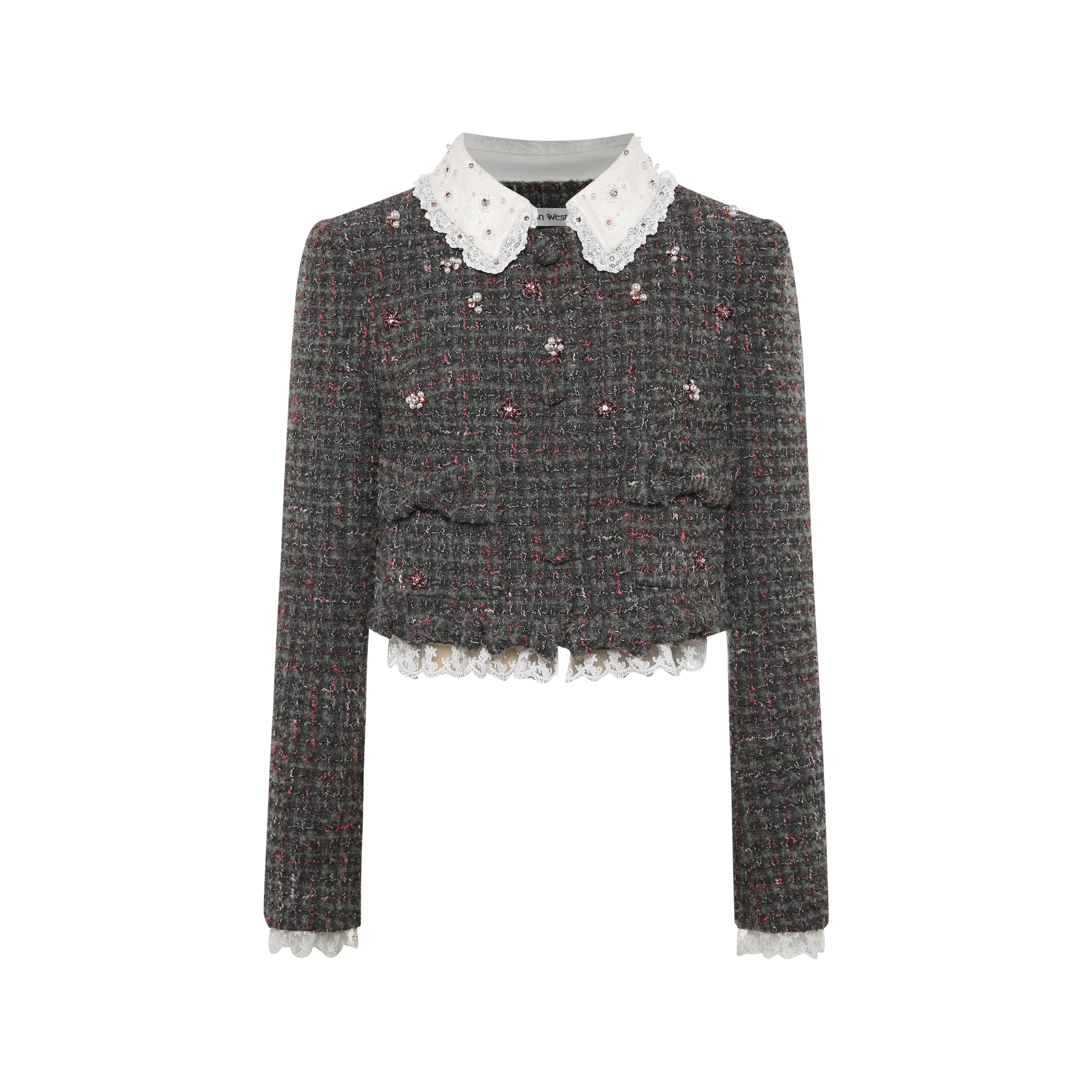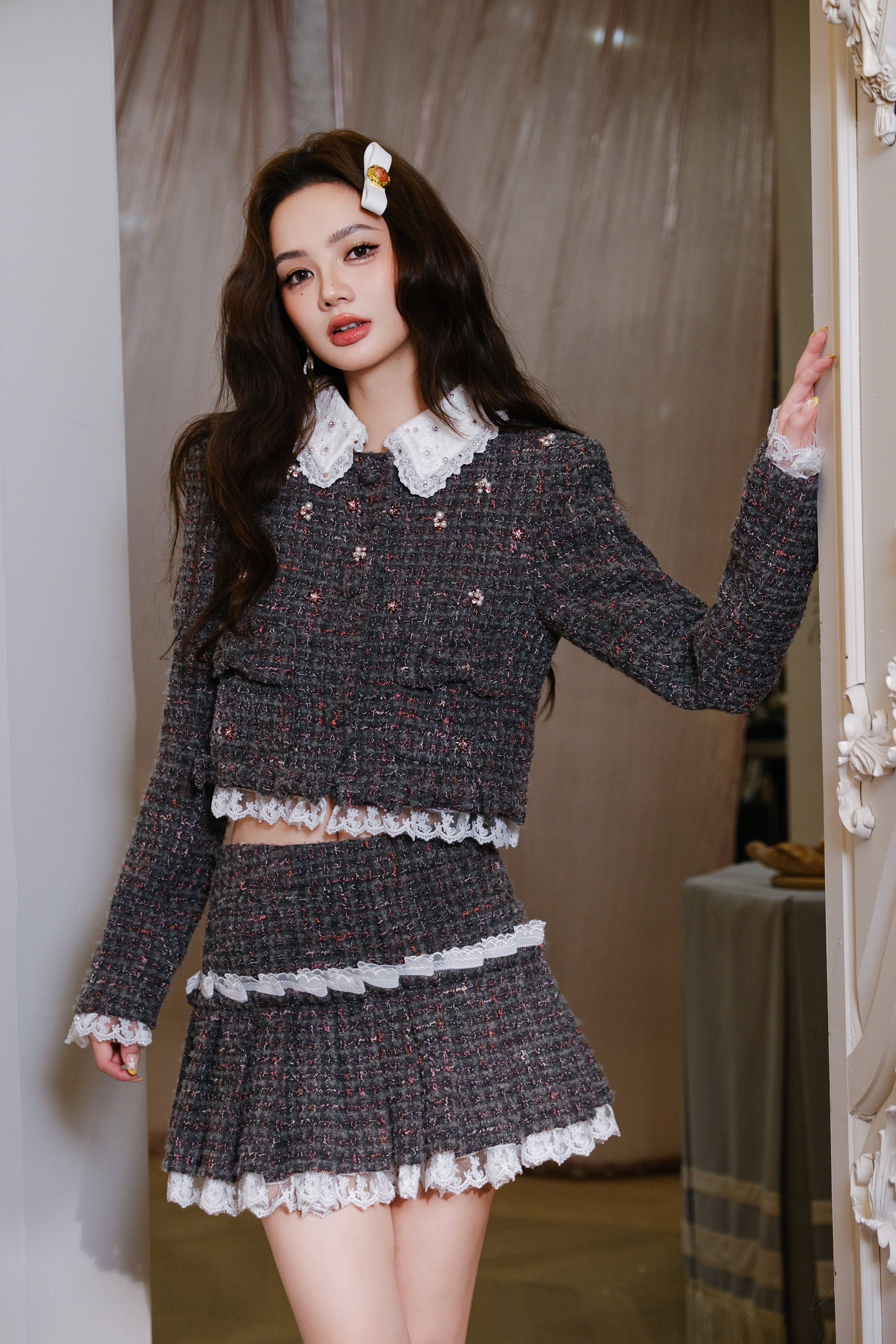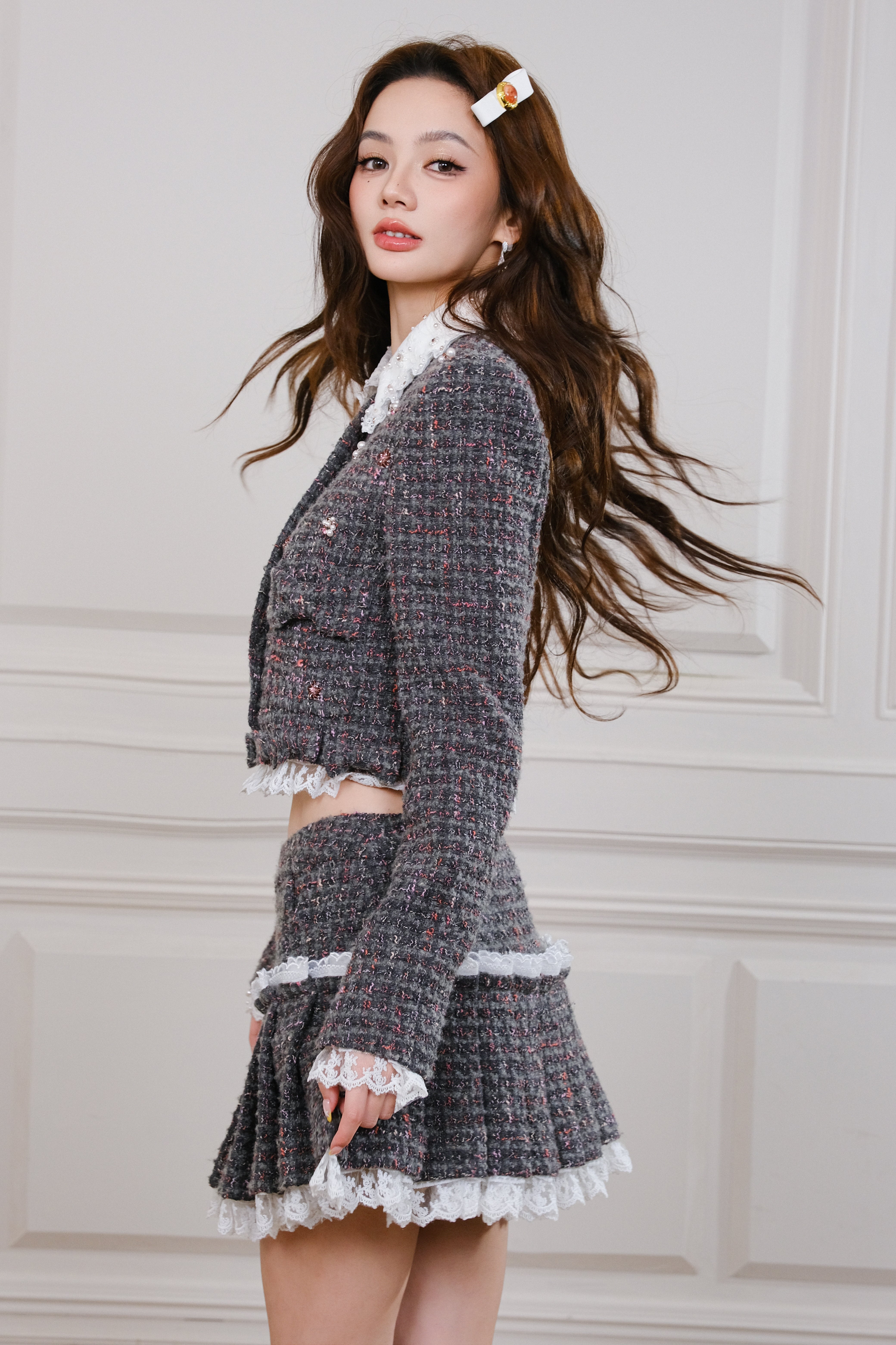 MAISON WESTER Grey Black Tweed White Collar Set Jacket+Skirt