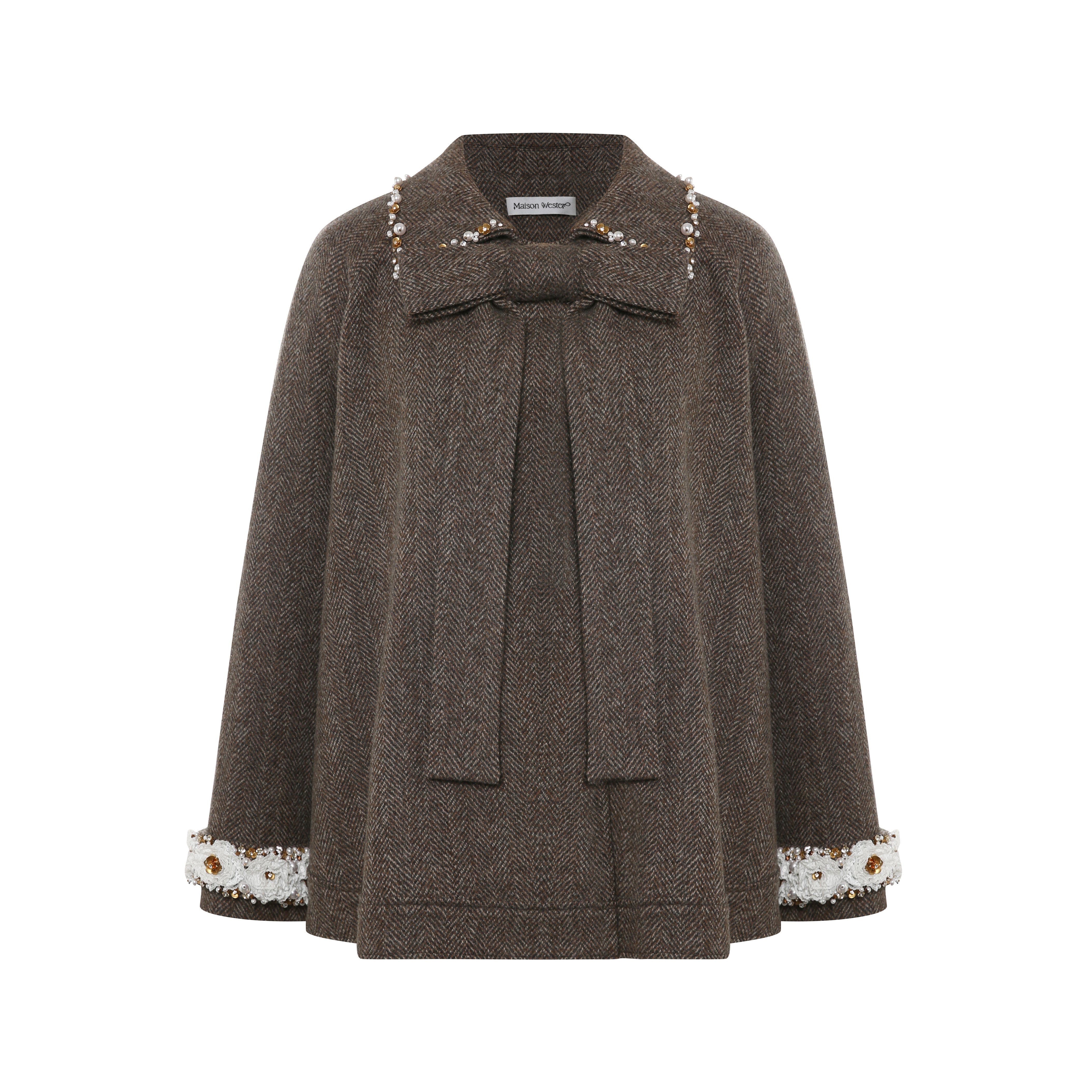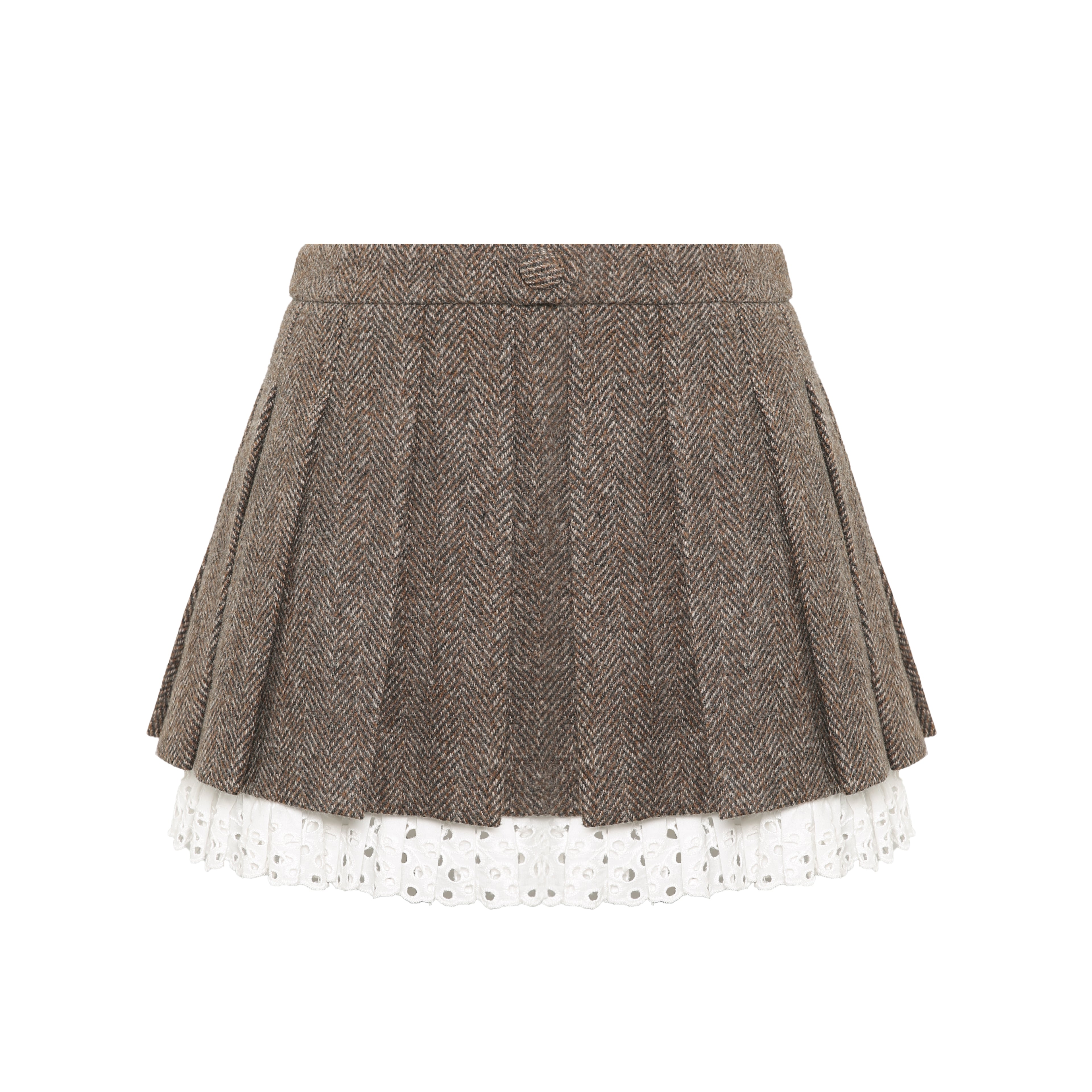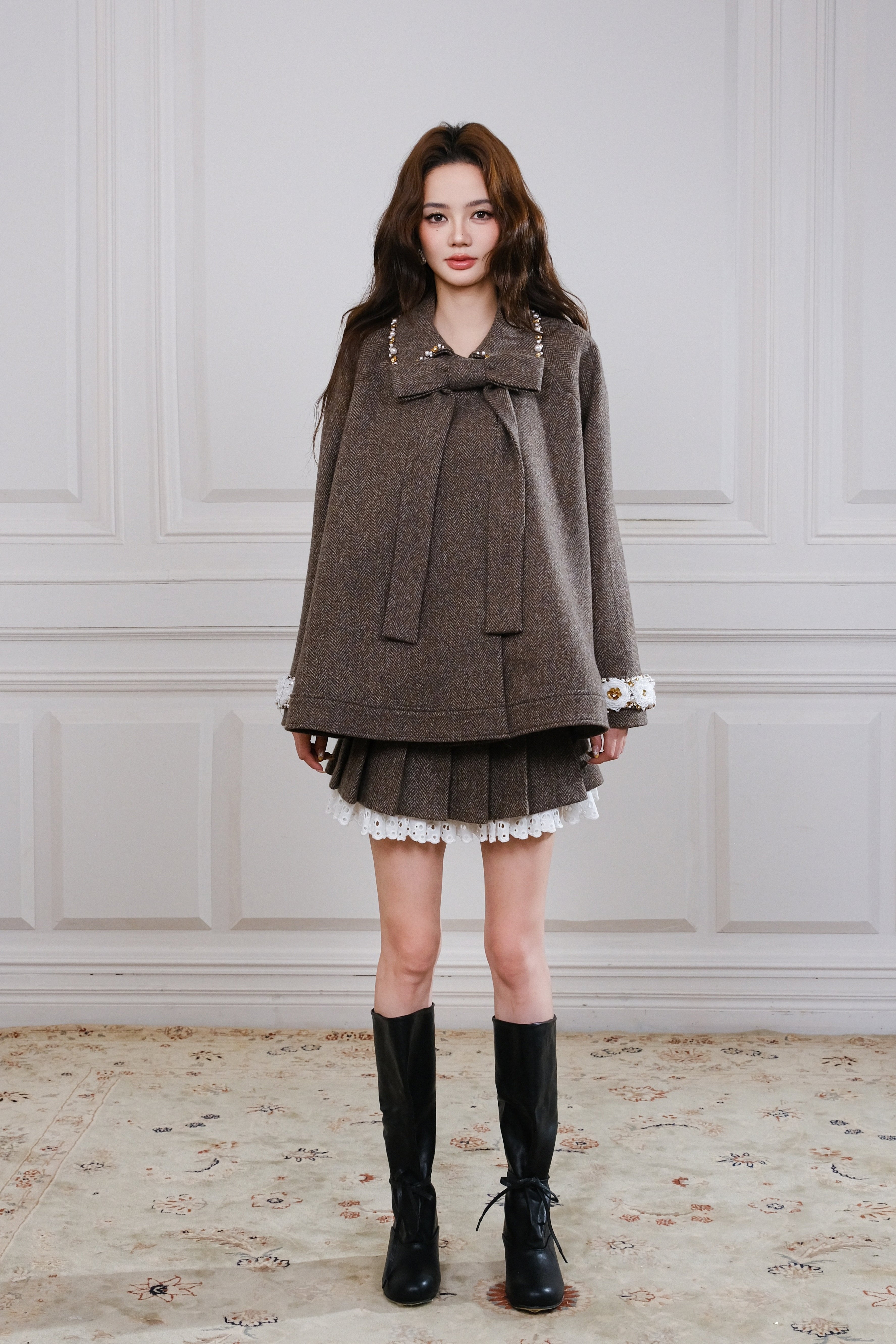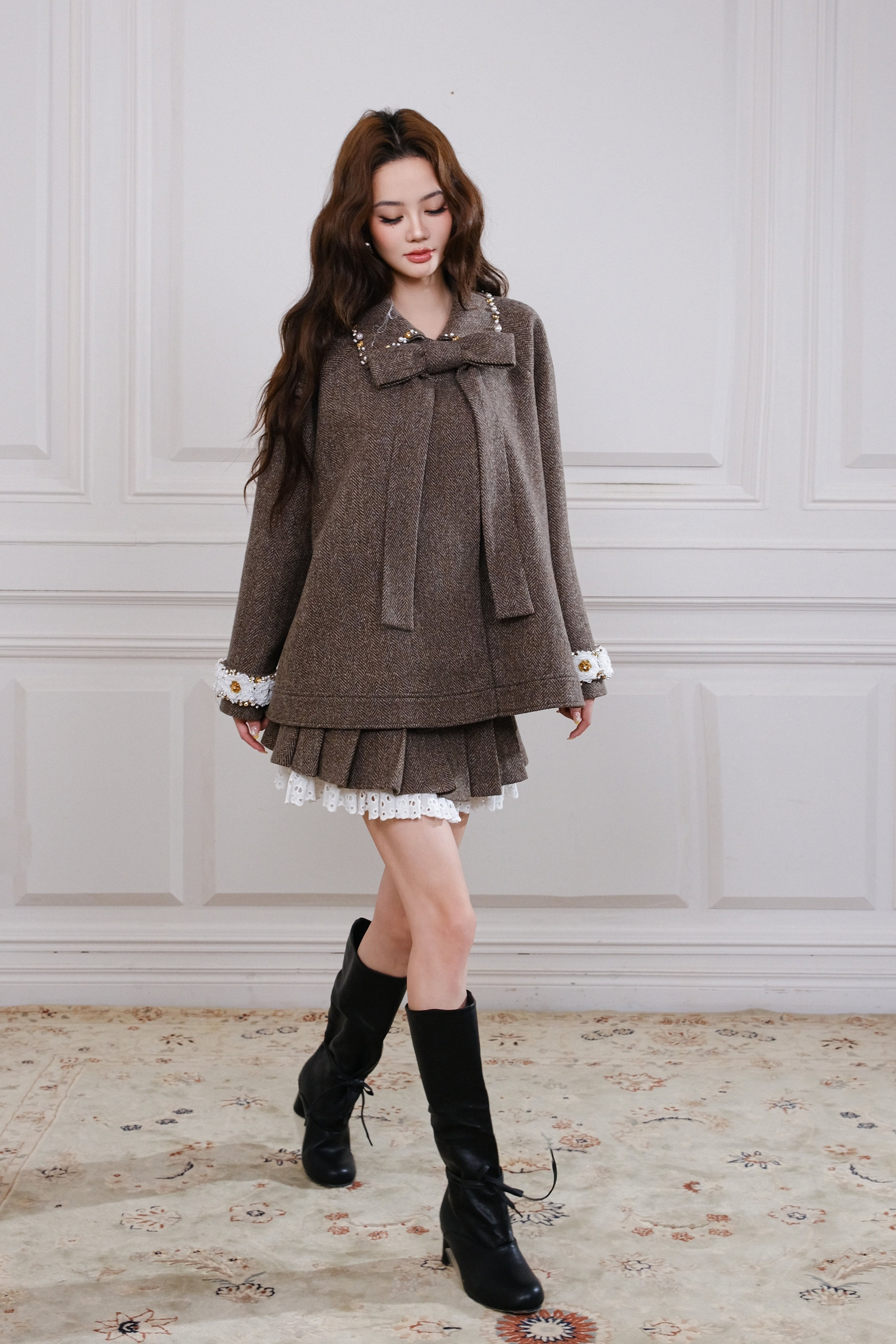 MAISON WESTER Grey Brown Wool Bow Set Jacket+Skirt