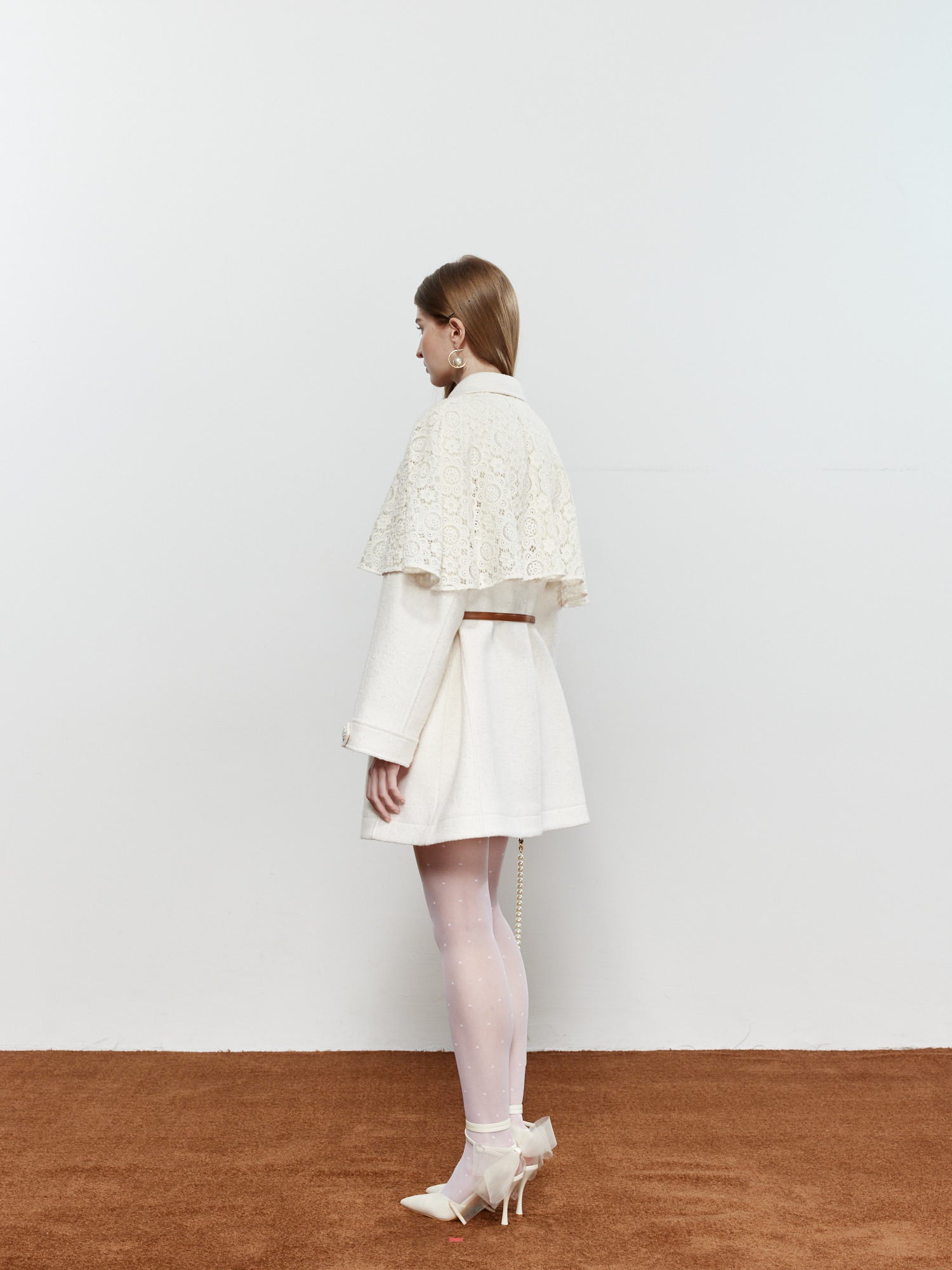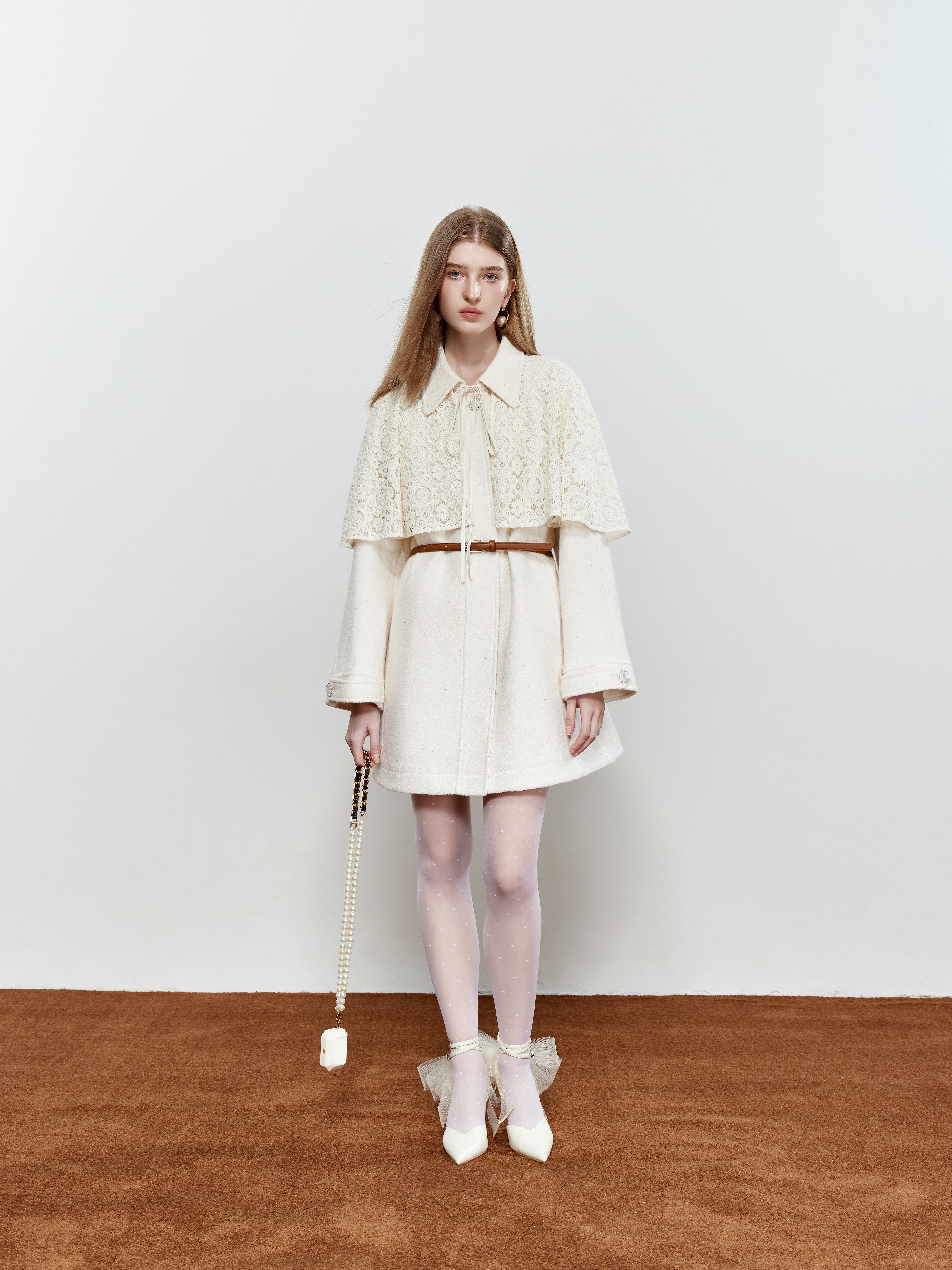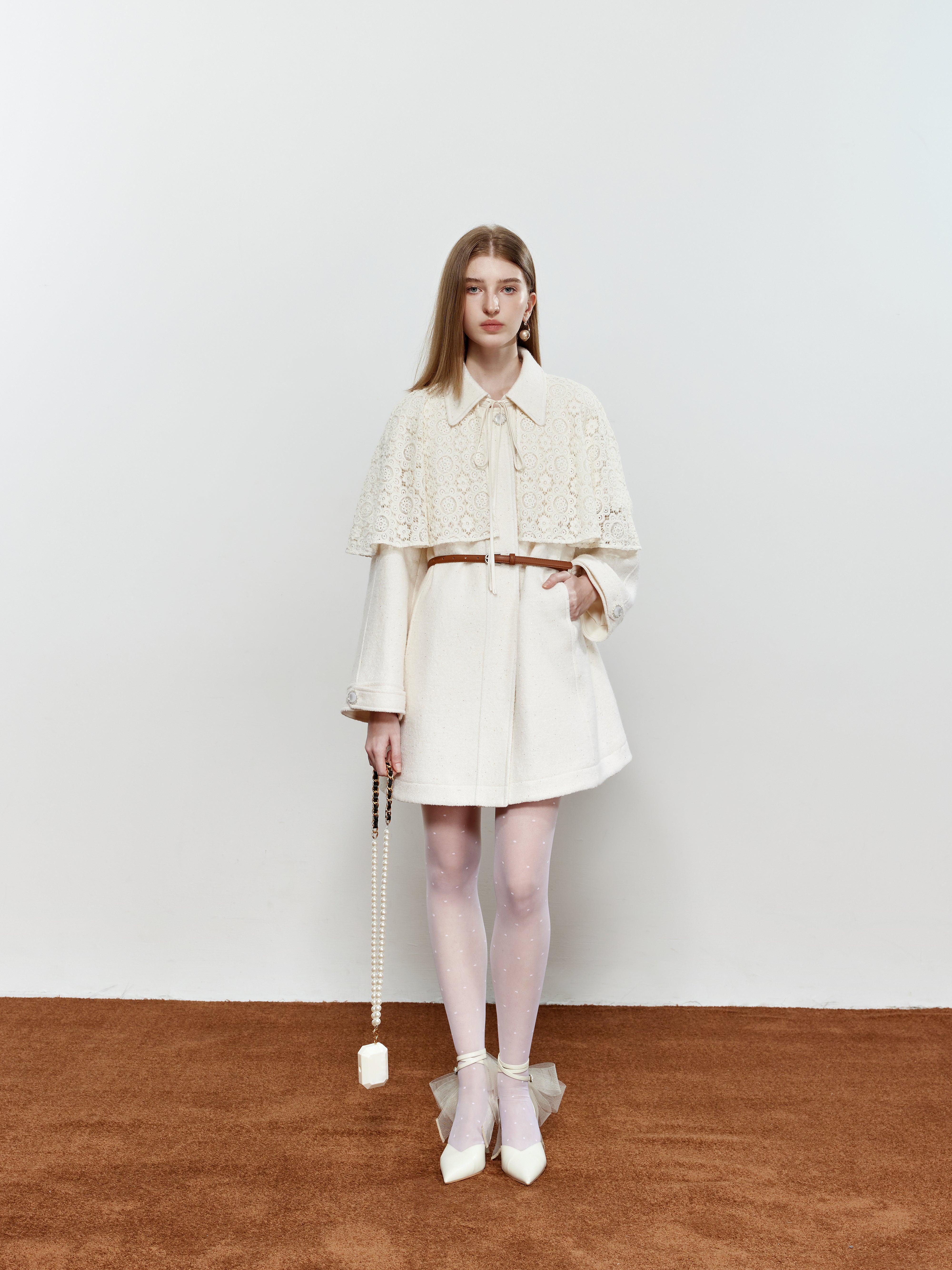 ROCHA ROMA Coat with Detachable Lace Cape
