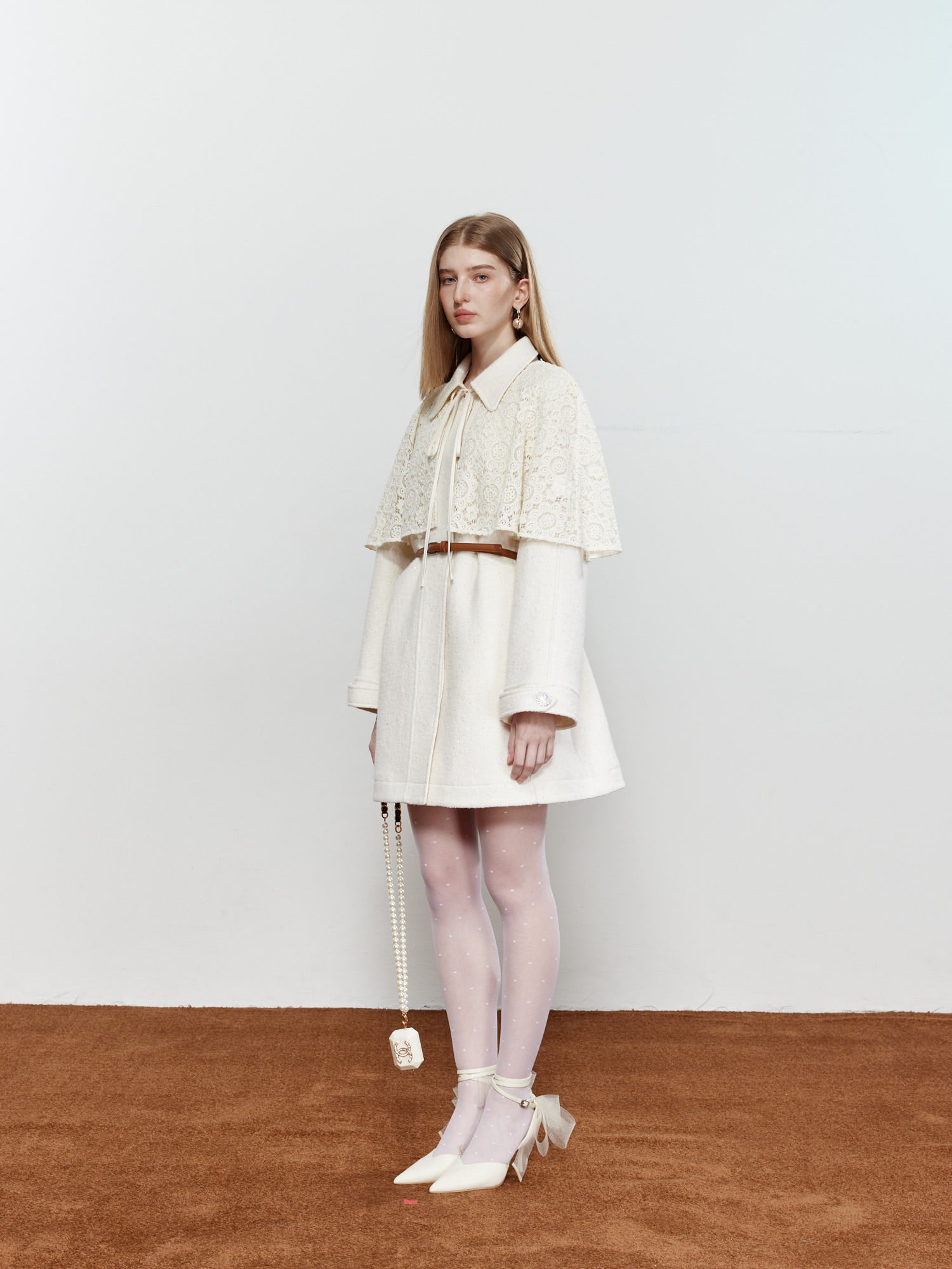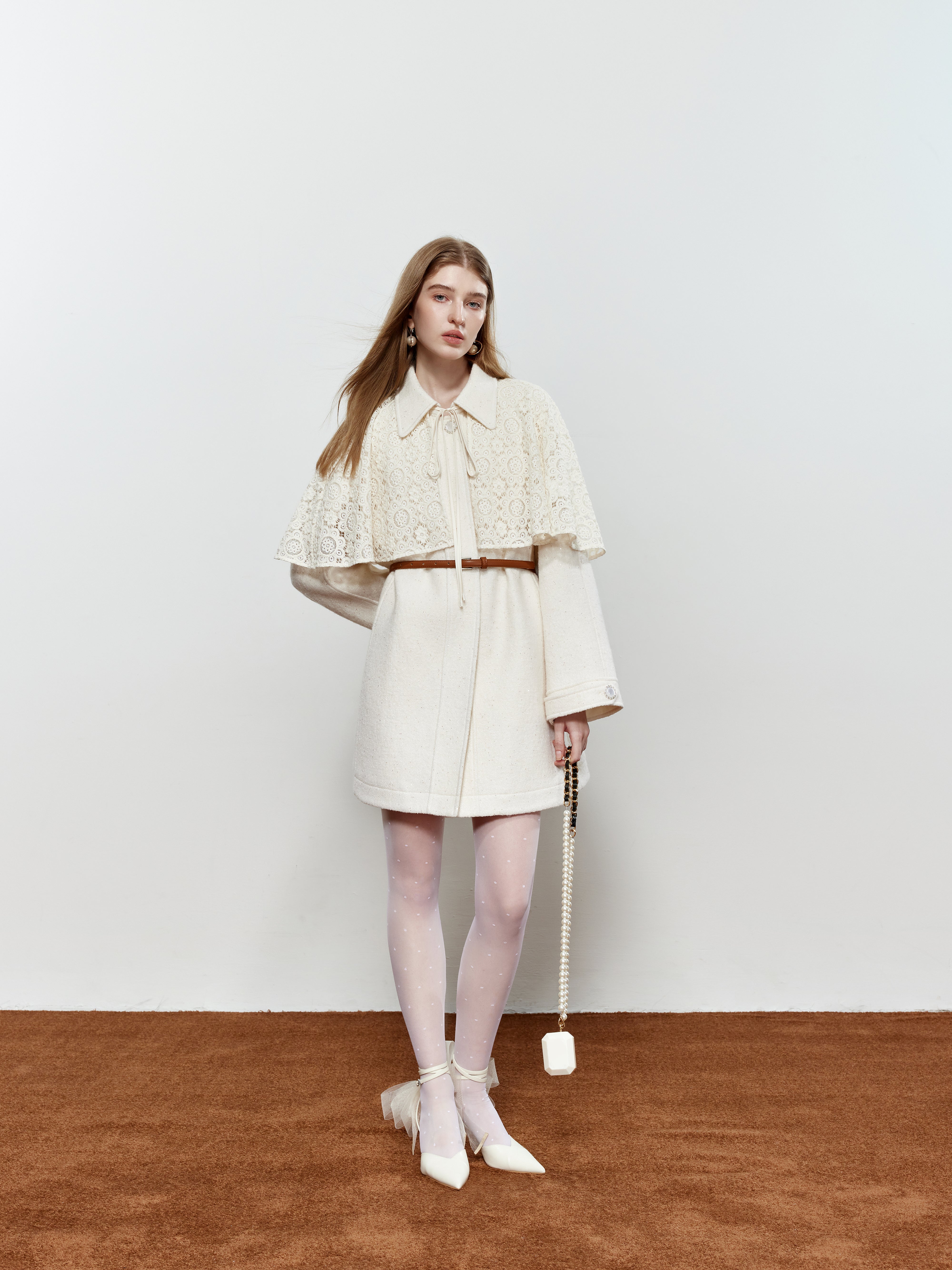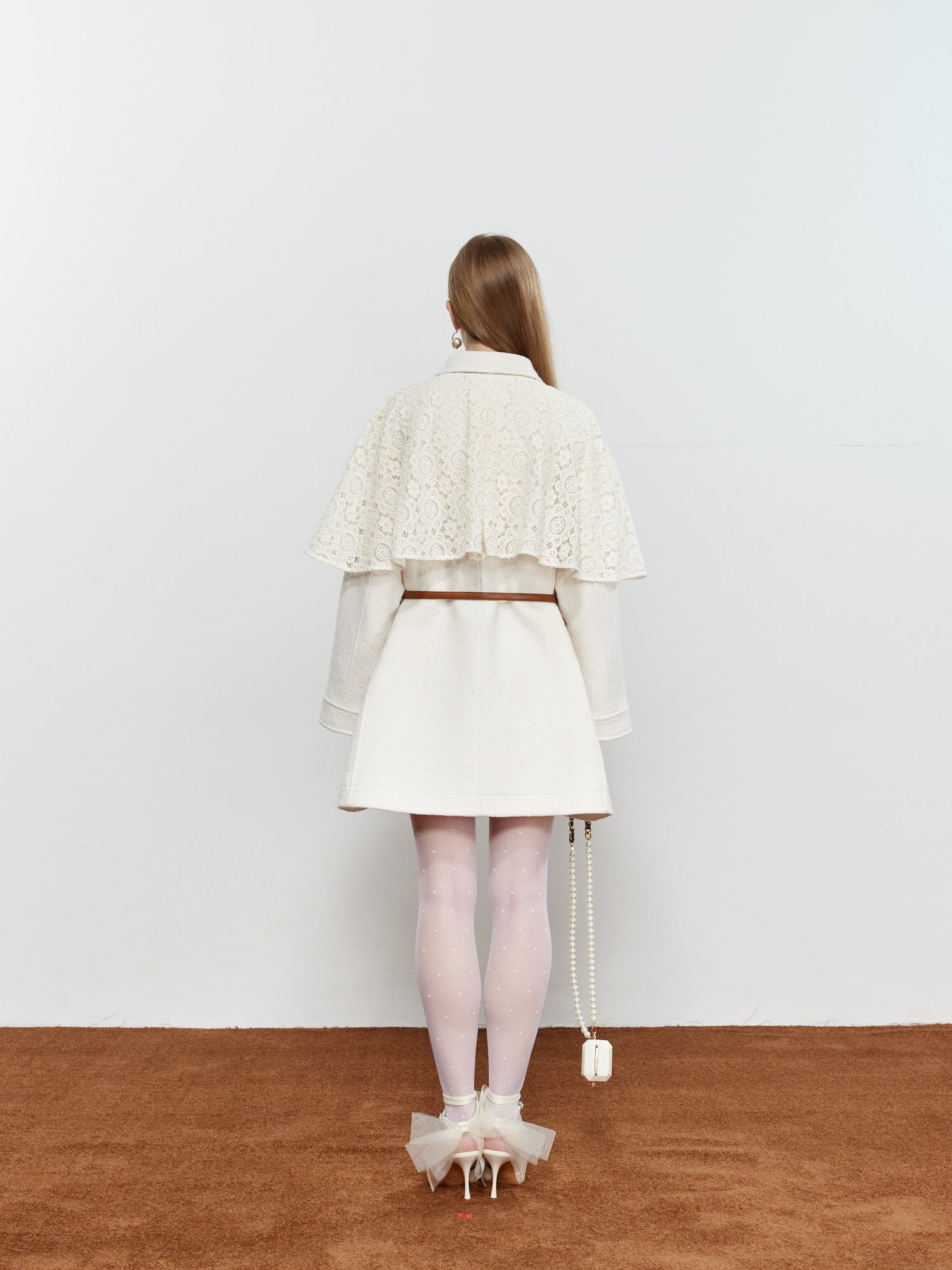 ROCHA ROMA Coat with Detachable Lace Cape