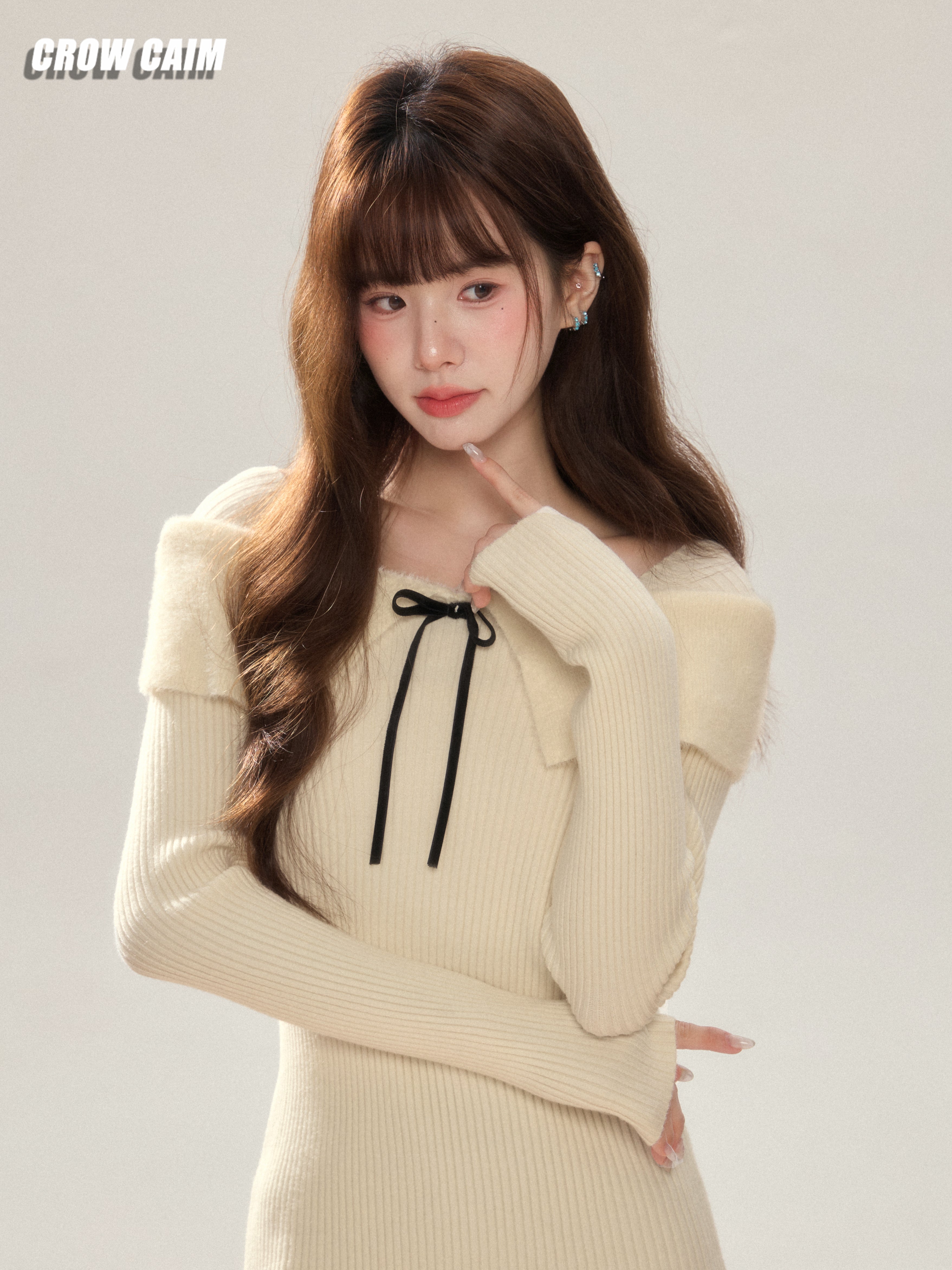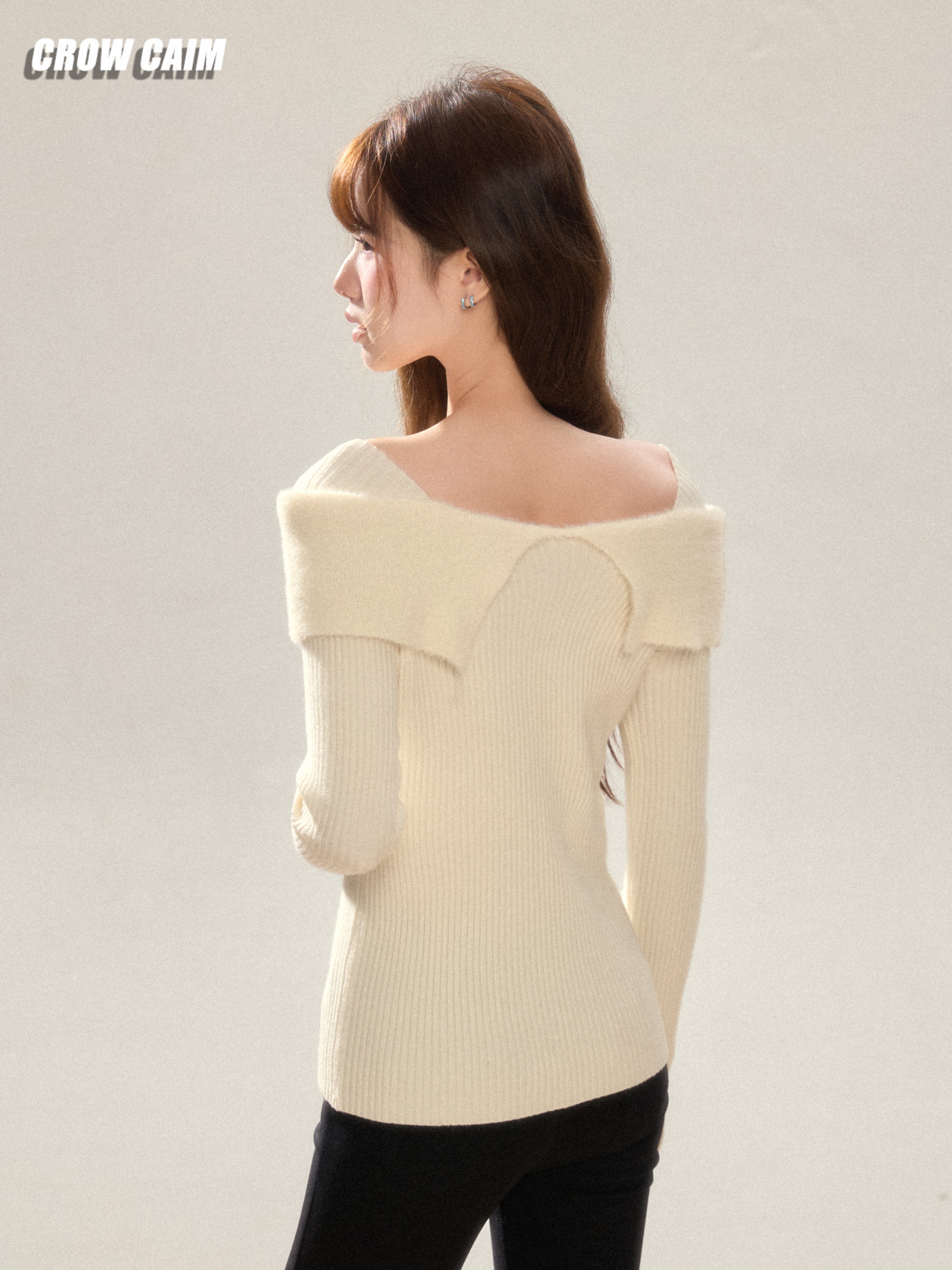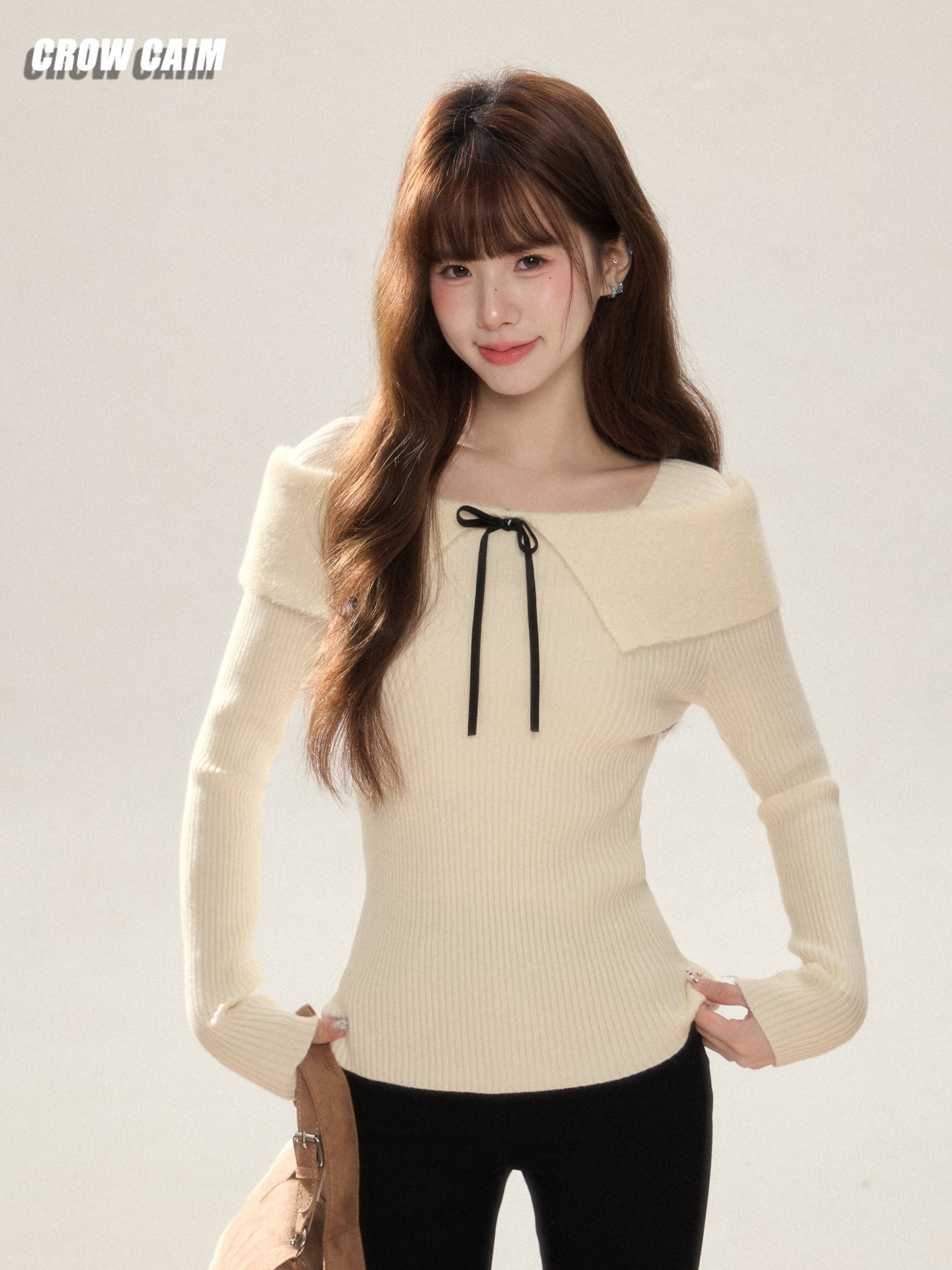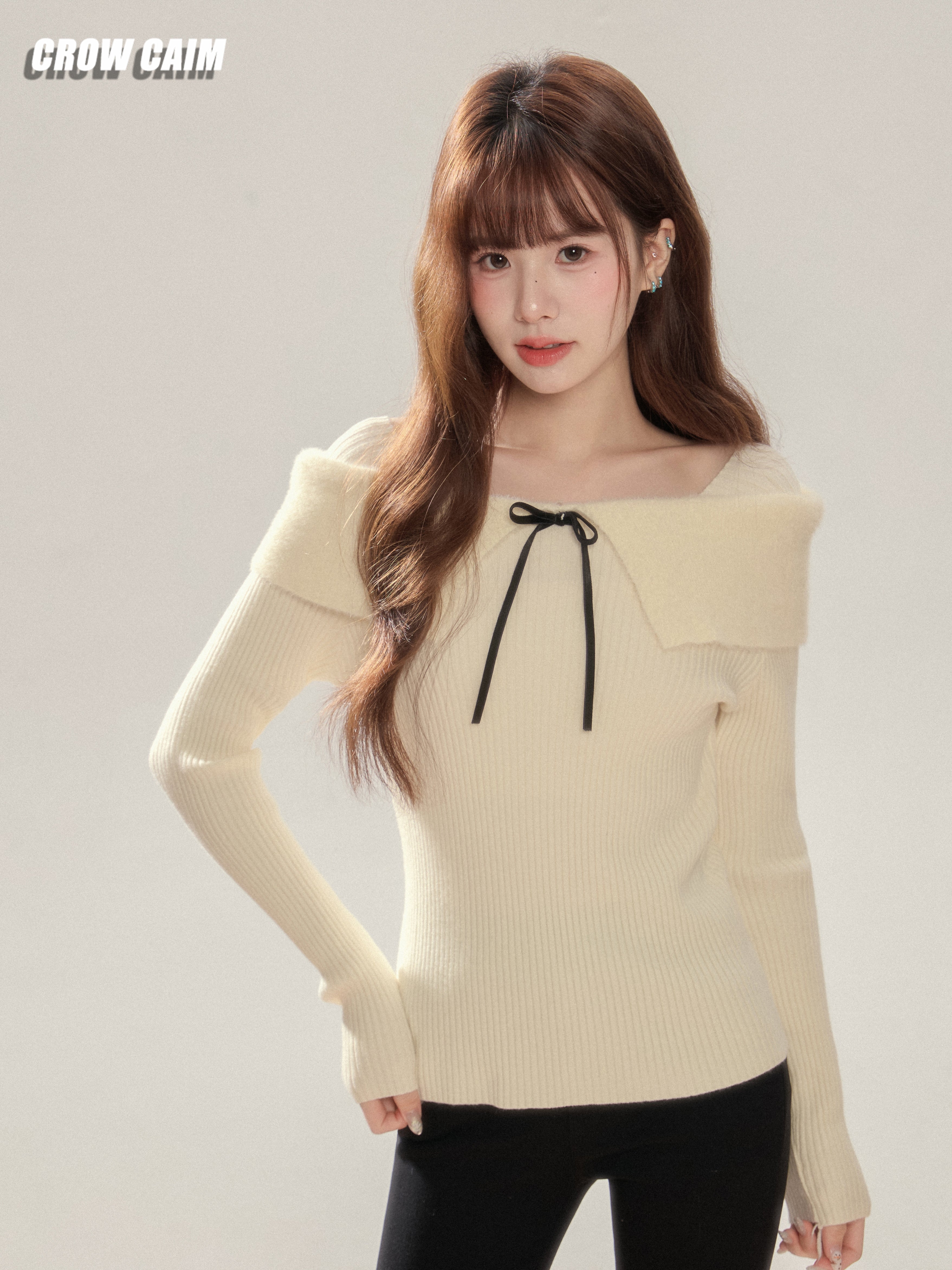 CROWCAIM Bow Collar Off-Shoulder Knit Top