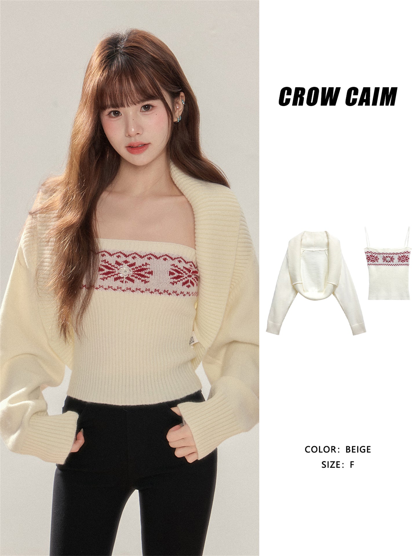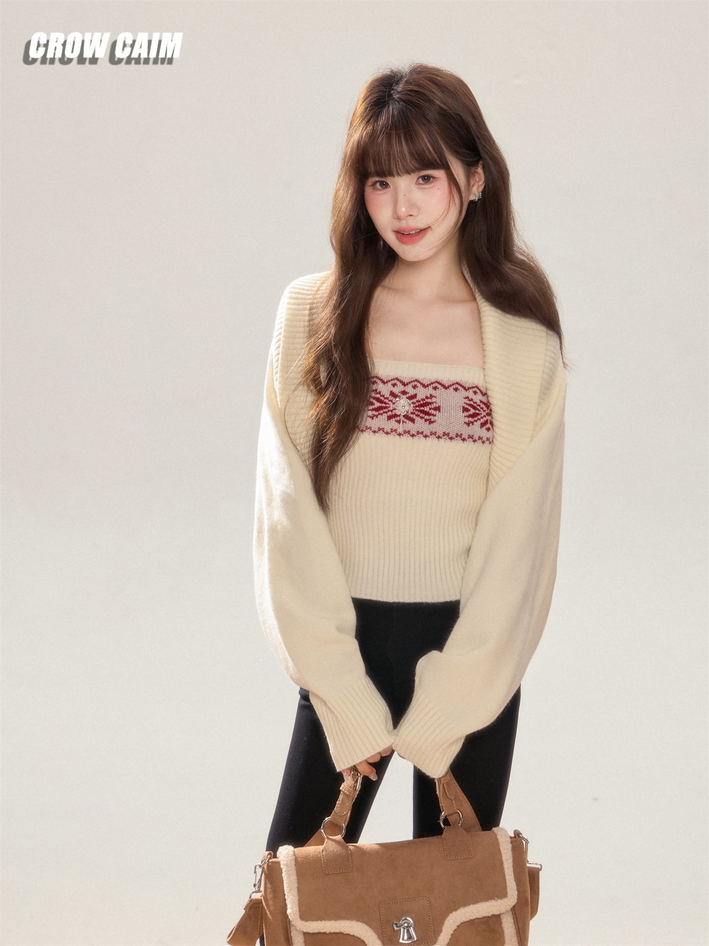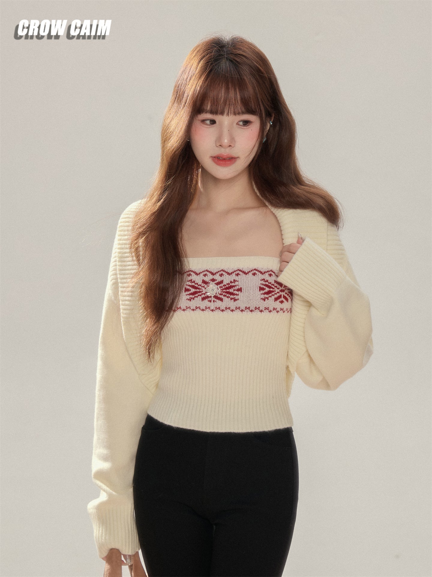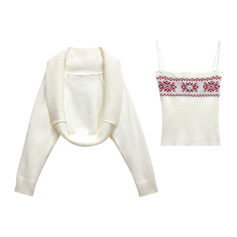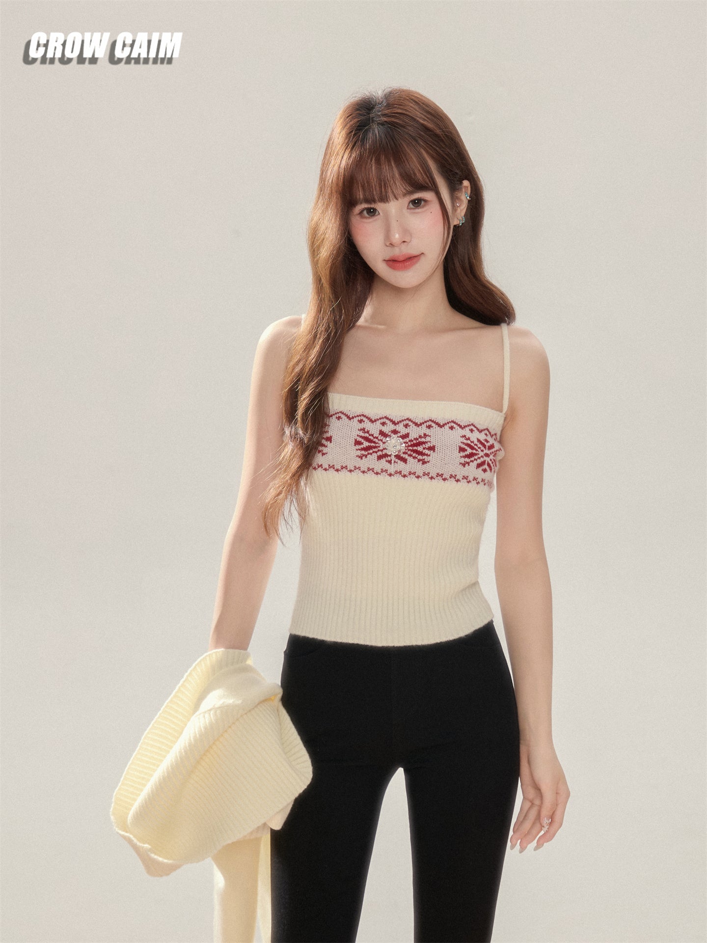 CROWCAIM Fair Isle Knit Cami & Vest Two-Piece Set