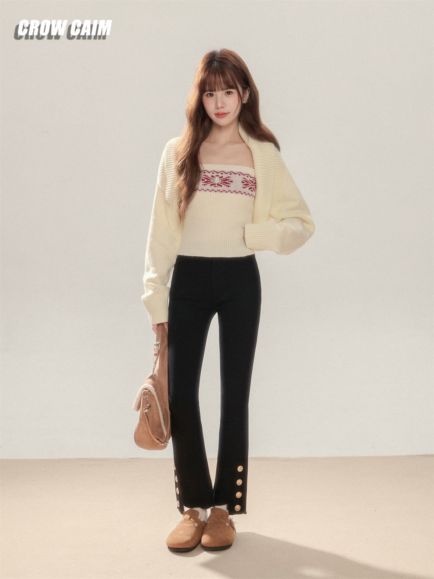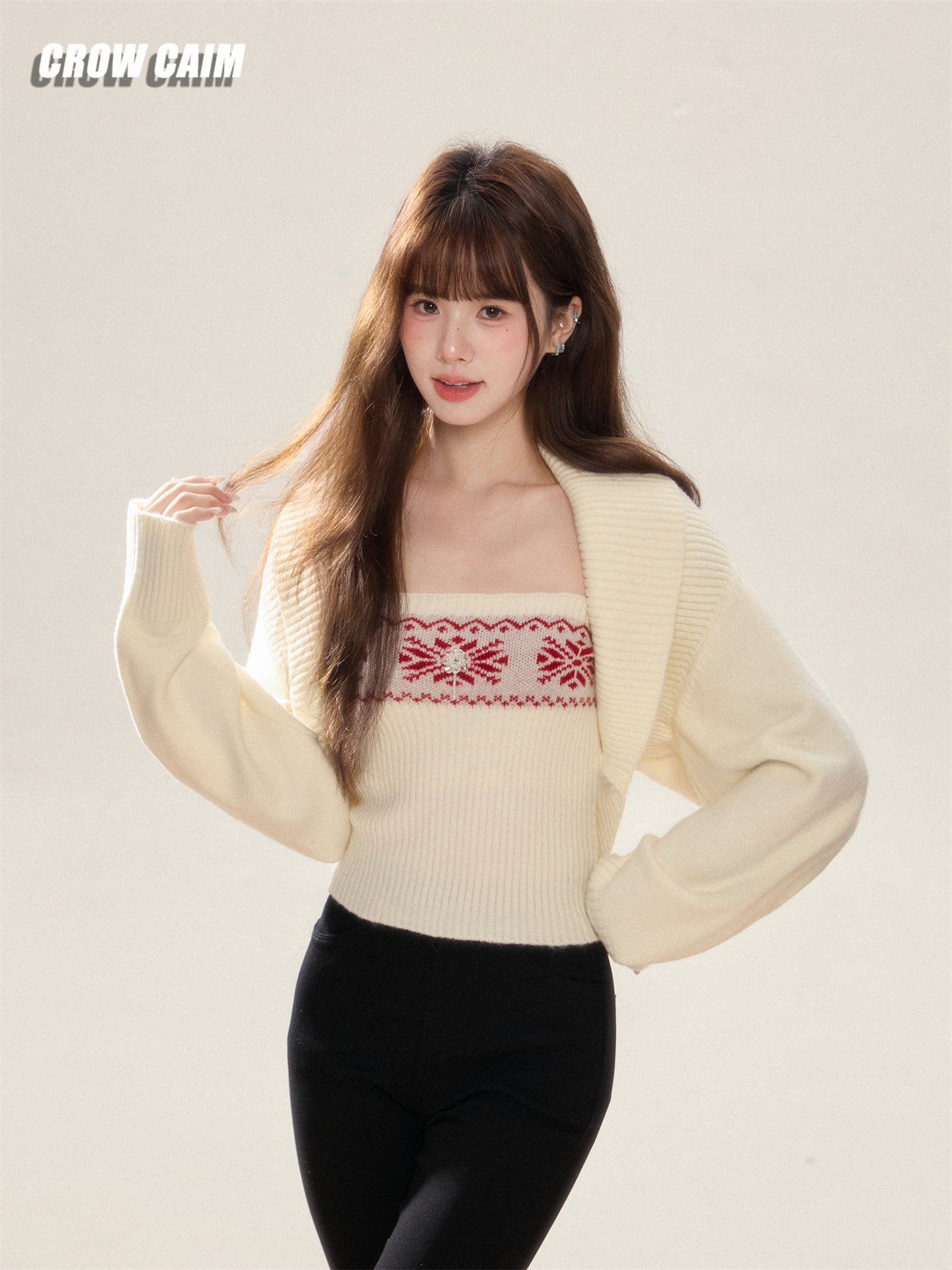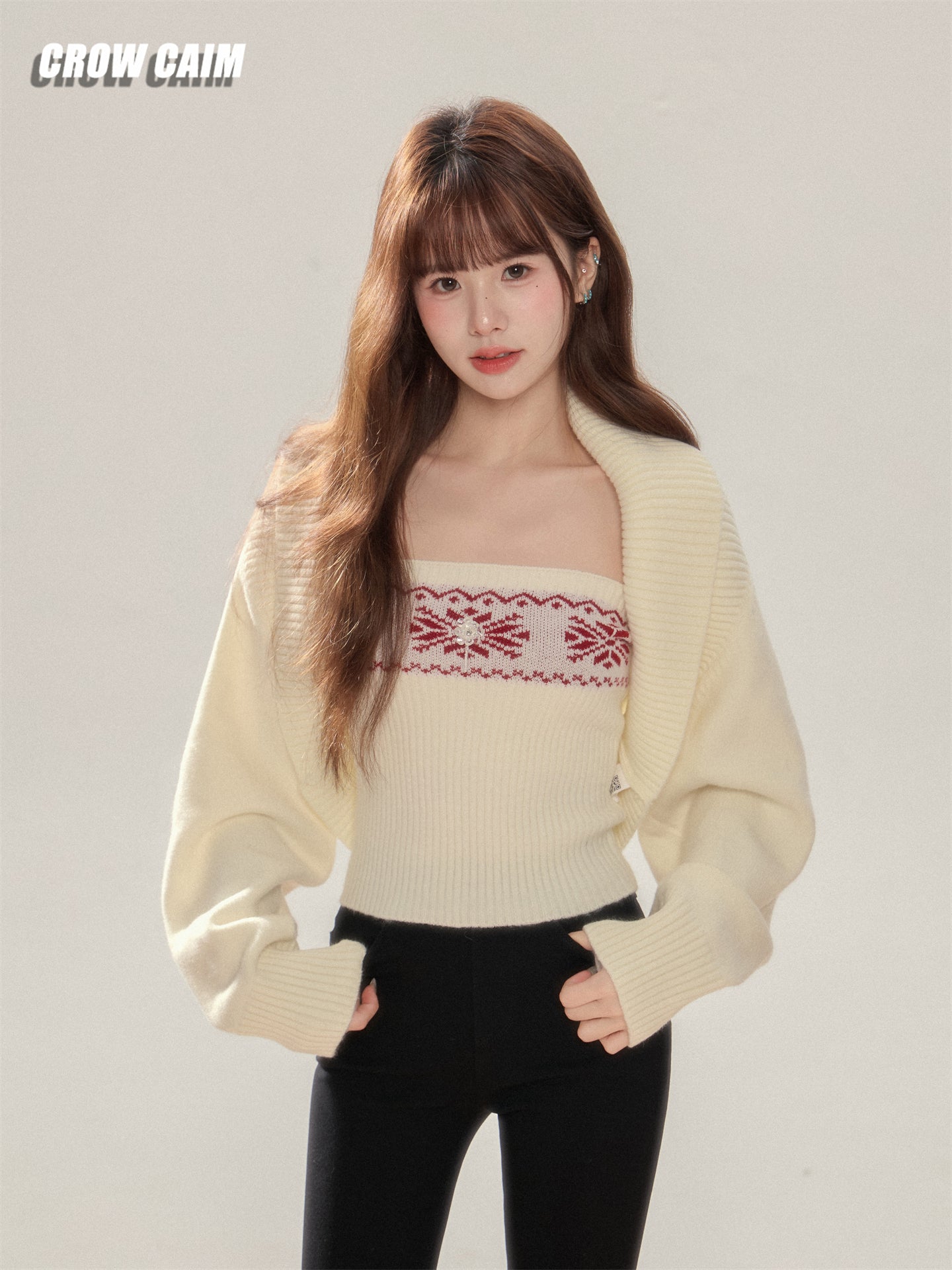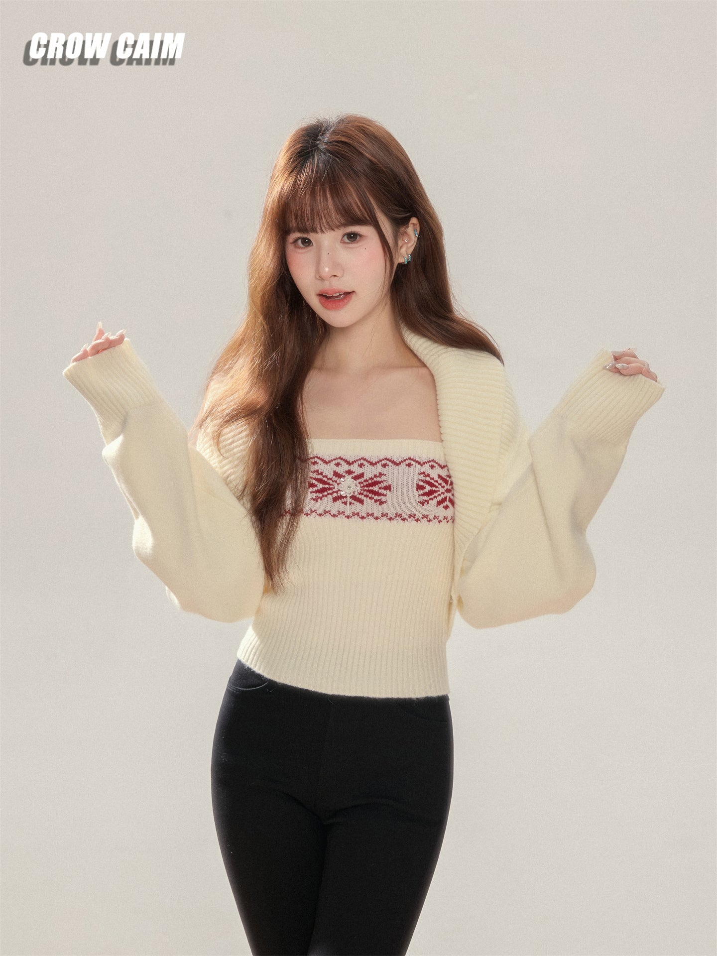 CROWCAIM Fair Isle Knit Cami & Vest Two-Piece Set
