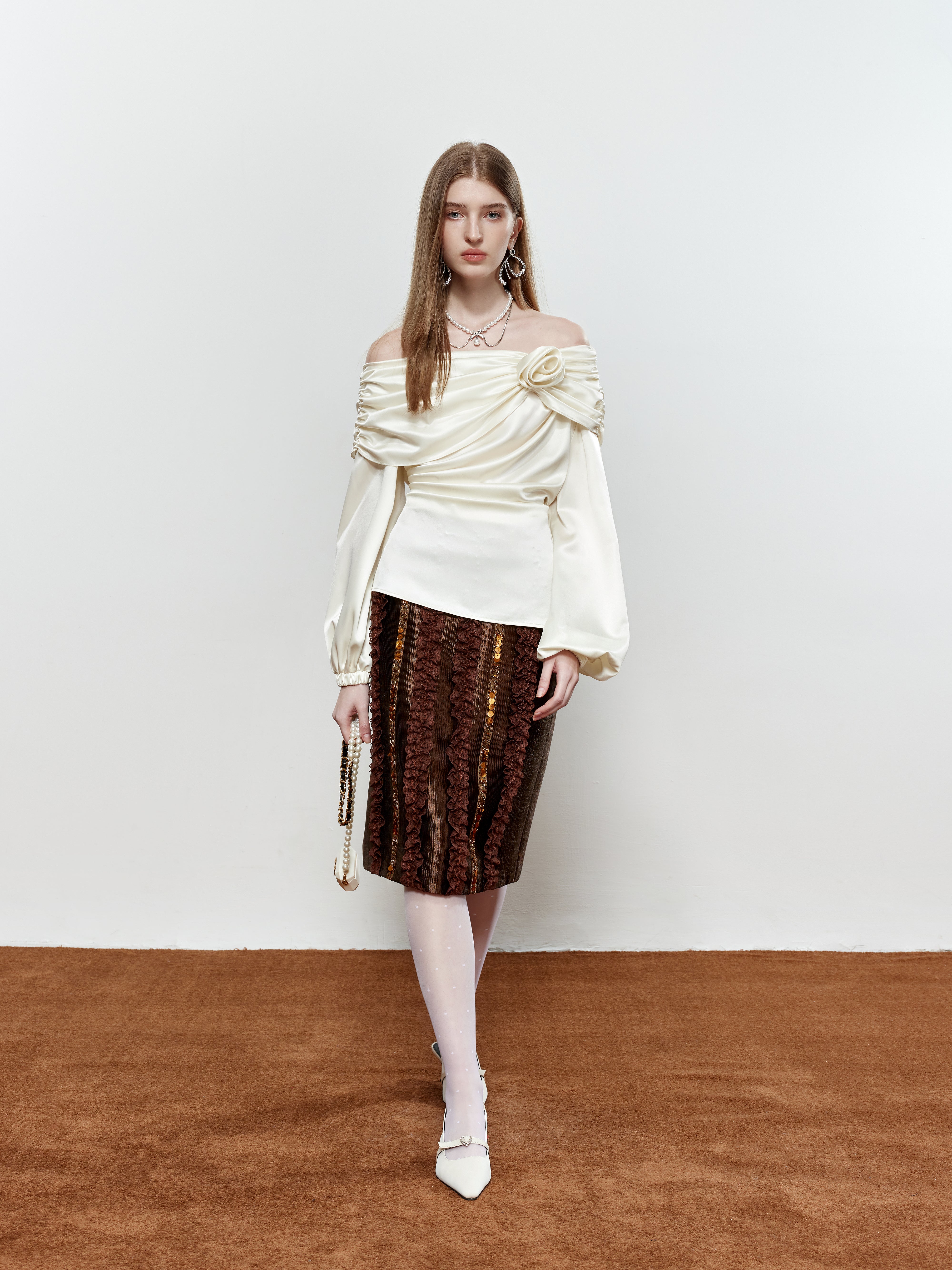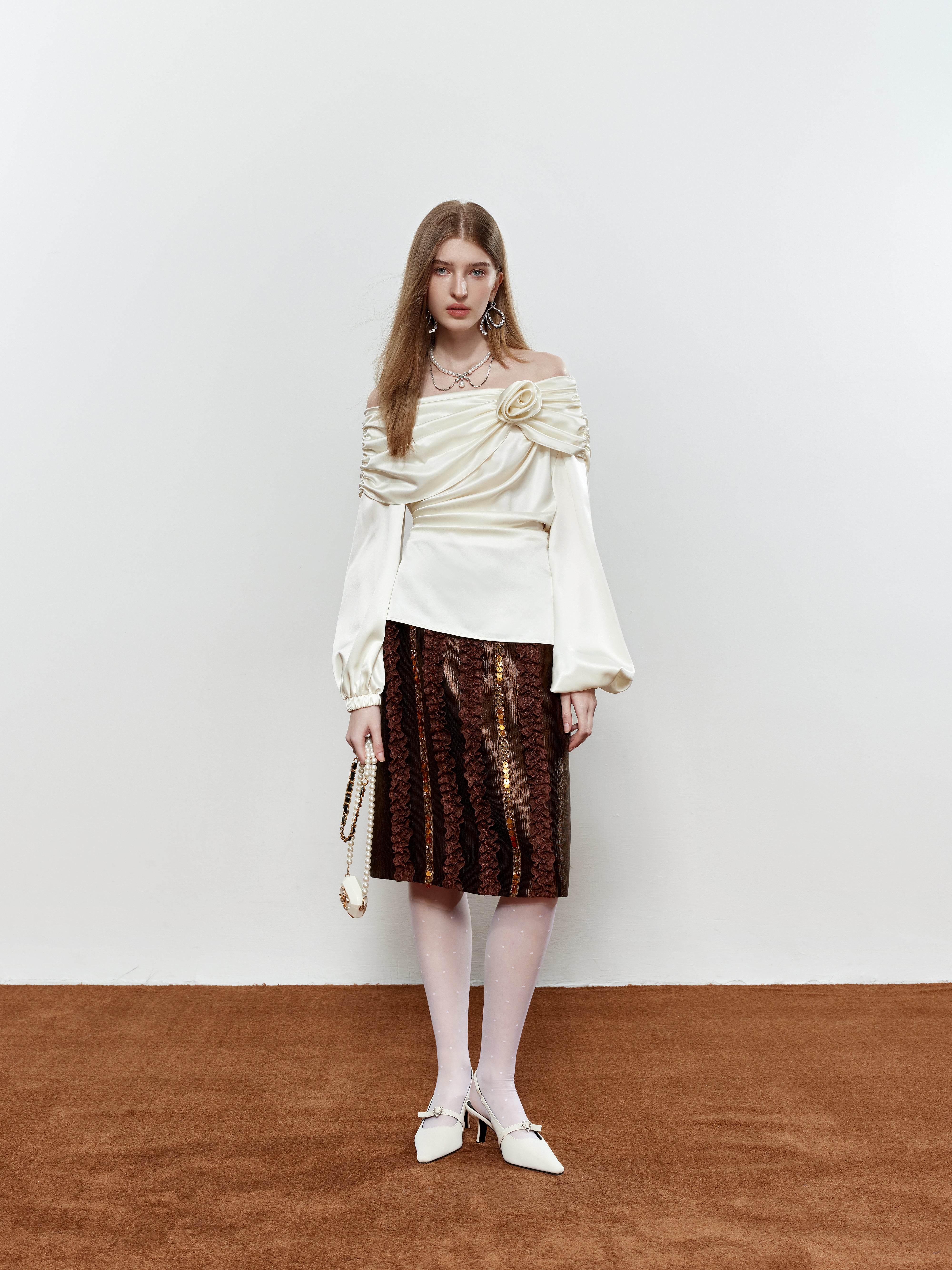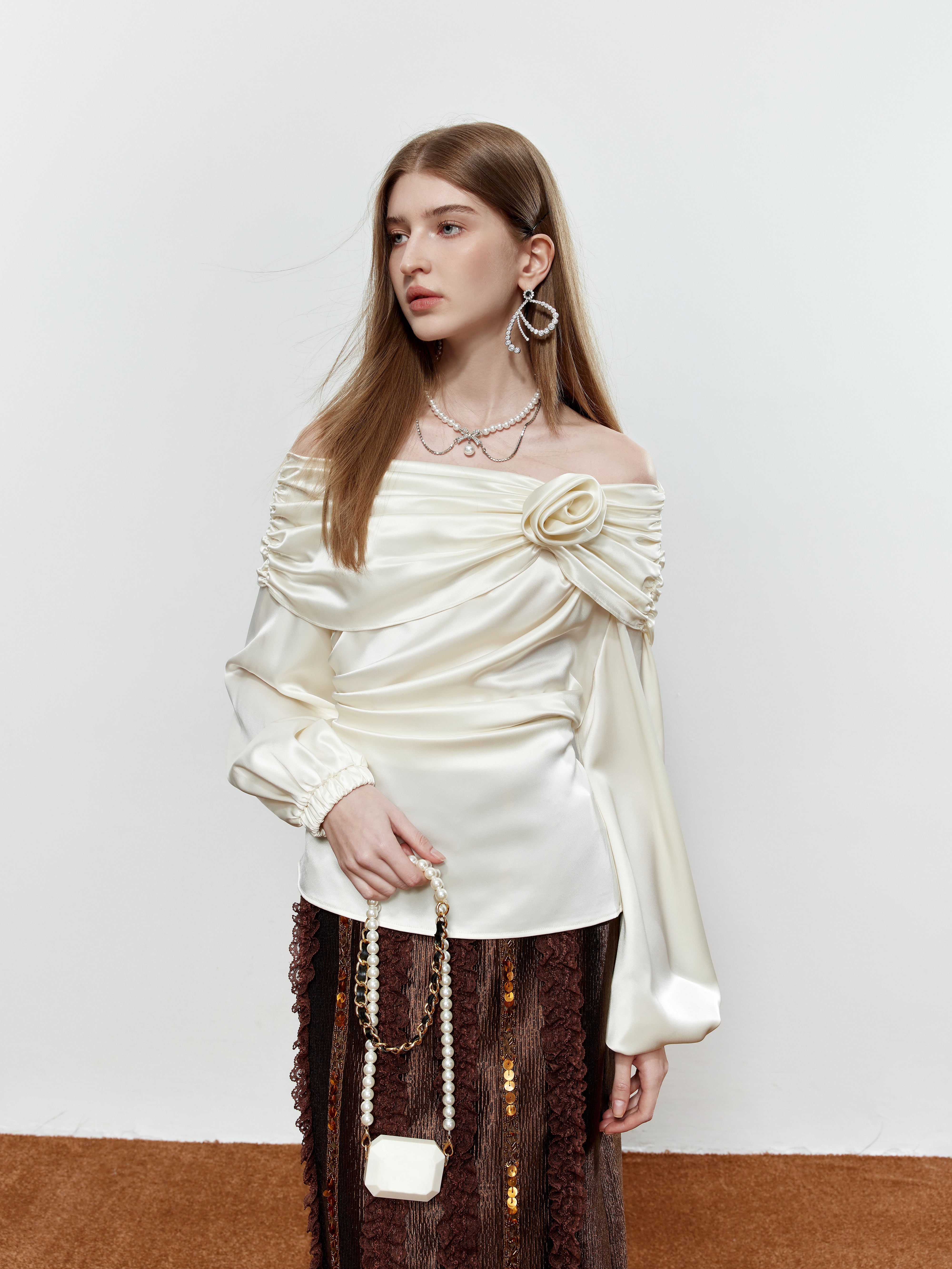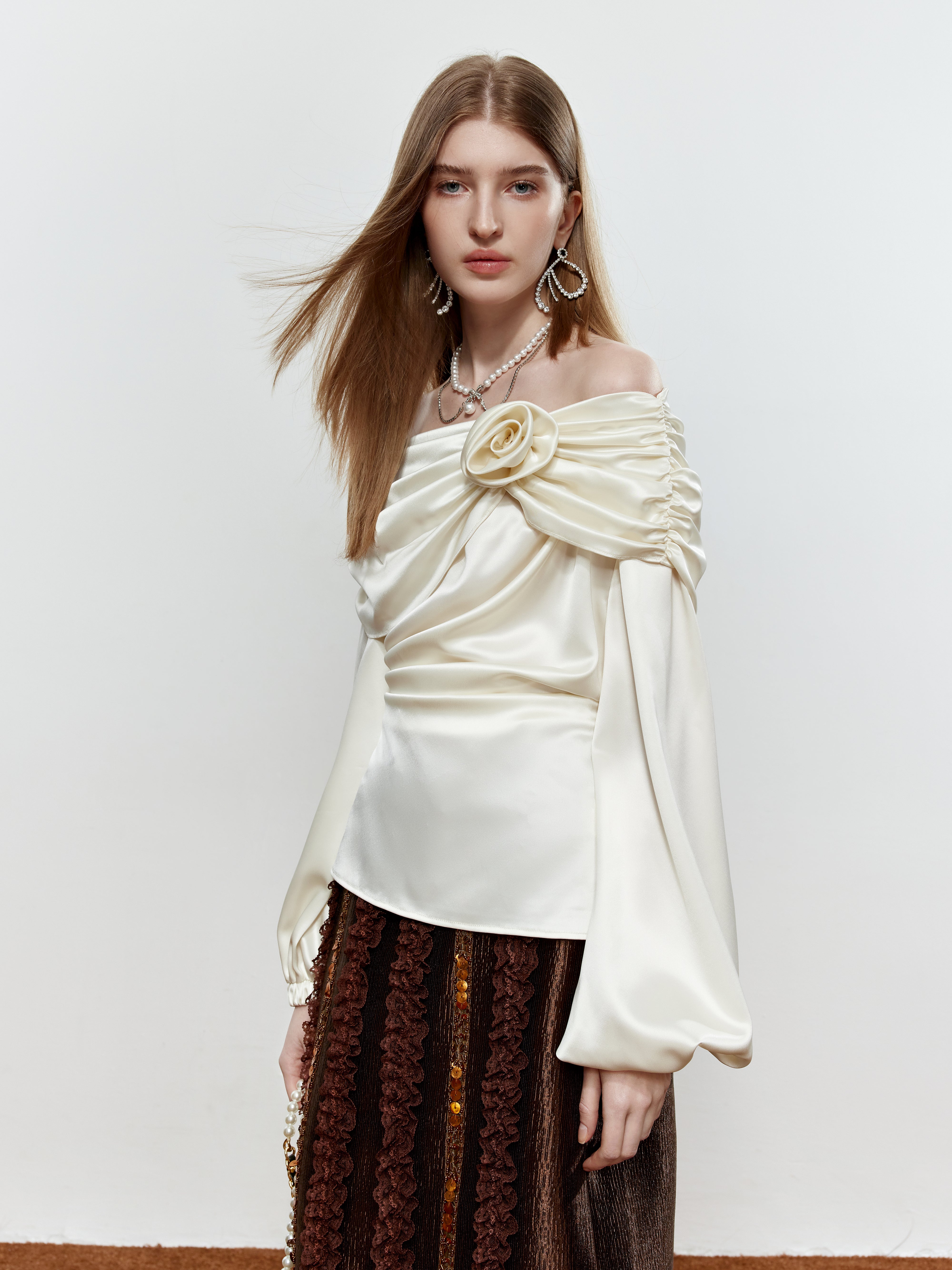ROCHA ROMA Off-Shoulder Ruched Floral Top