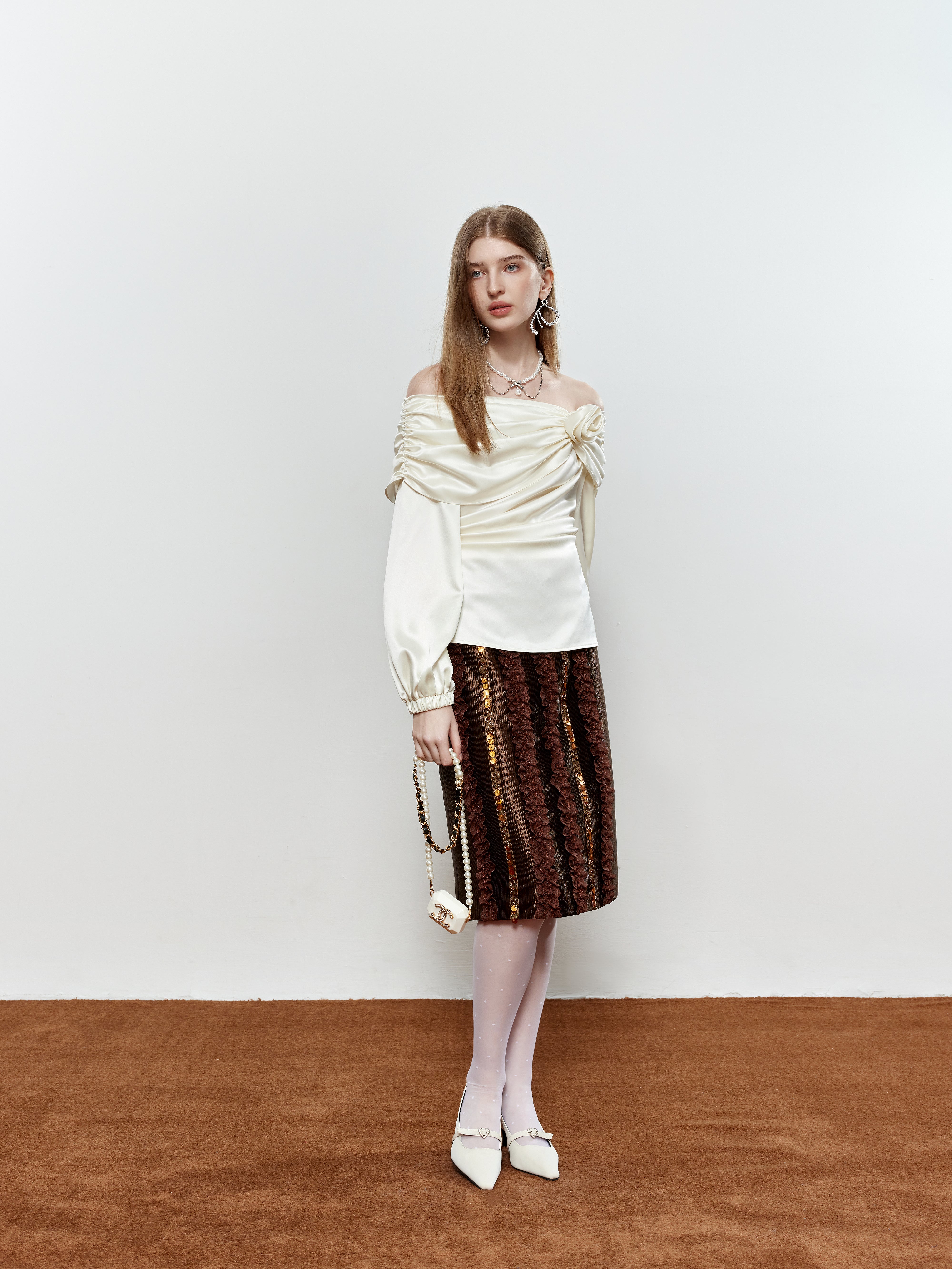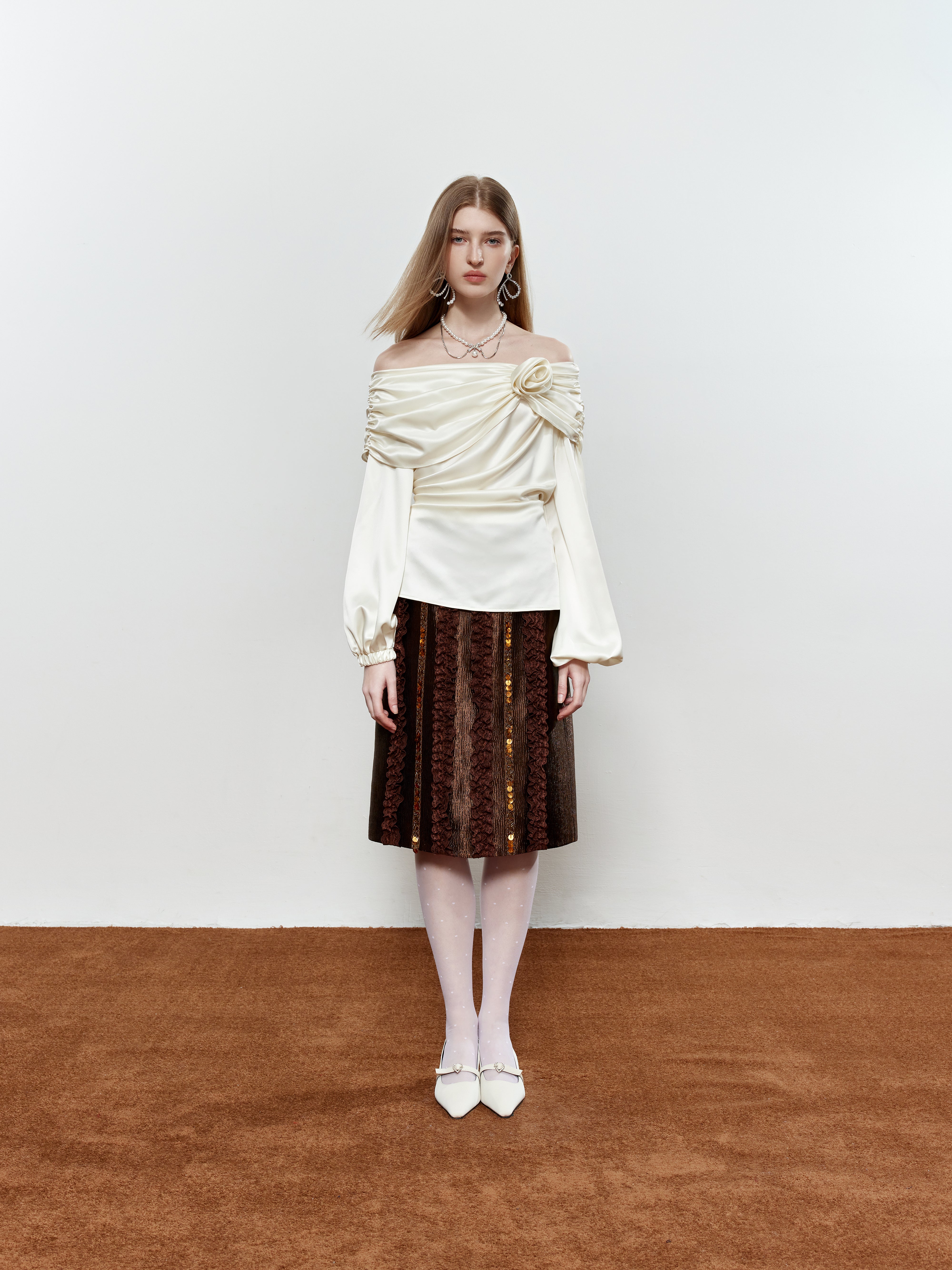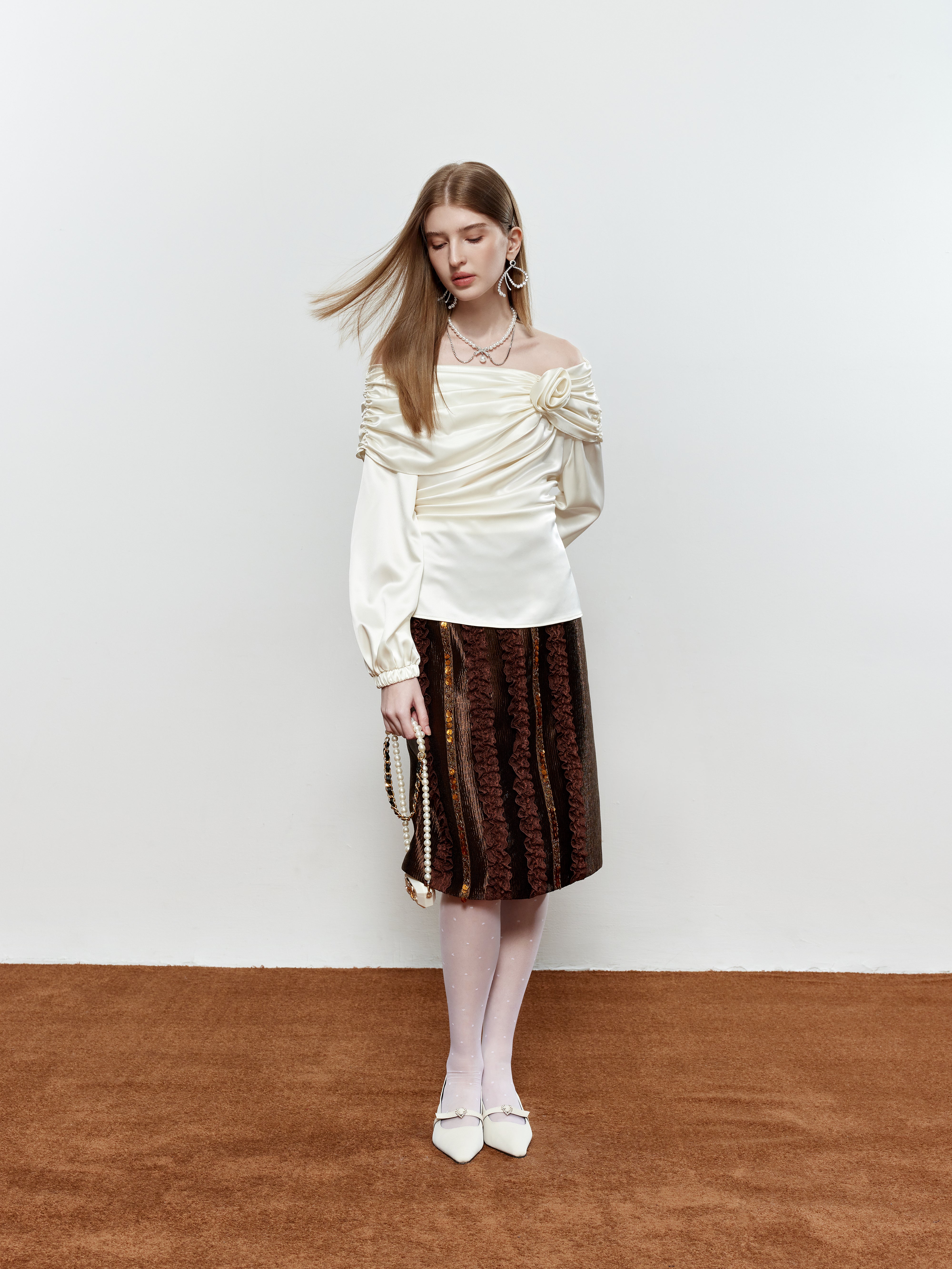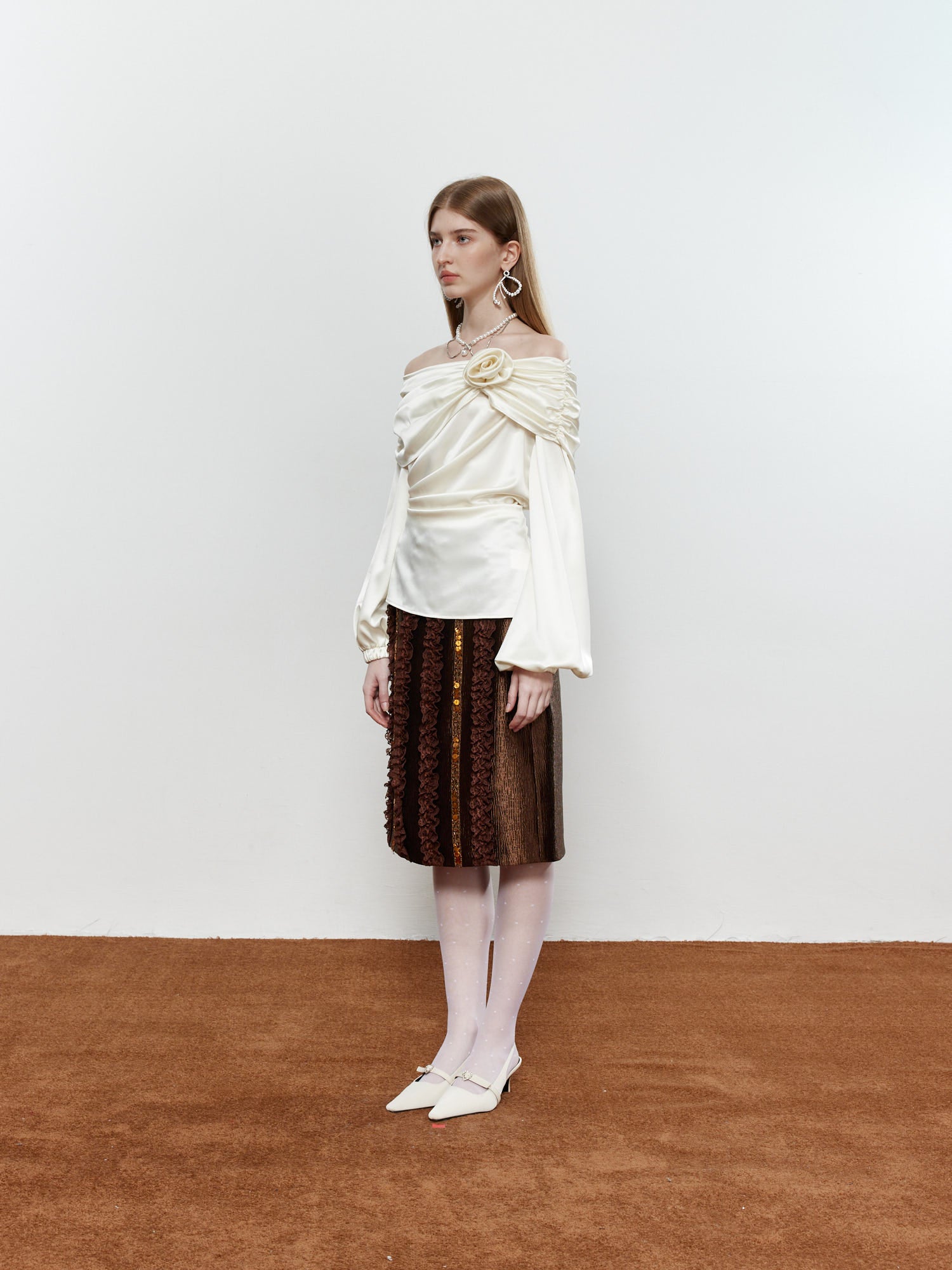 ROCHA ROMA Off-Shoulder Ruched Floral Top