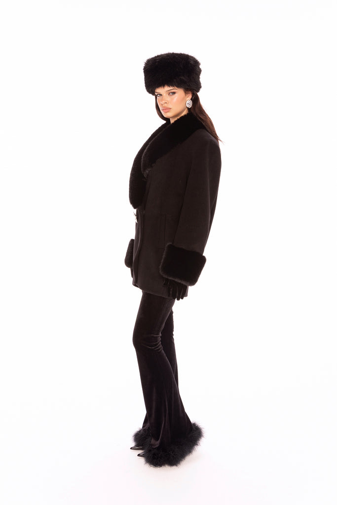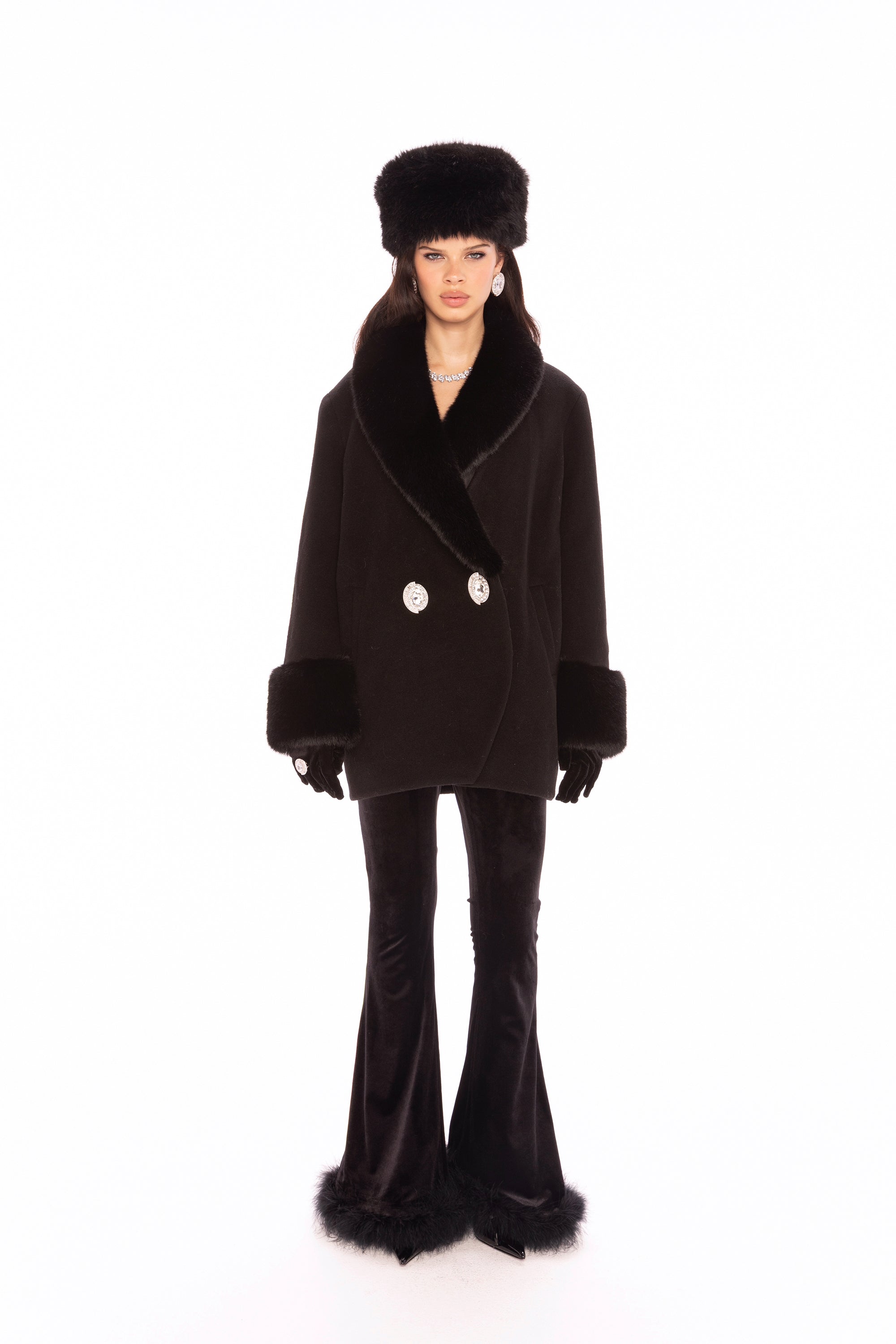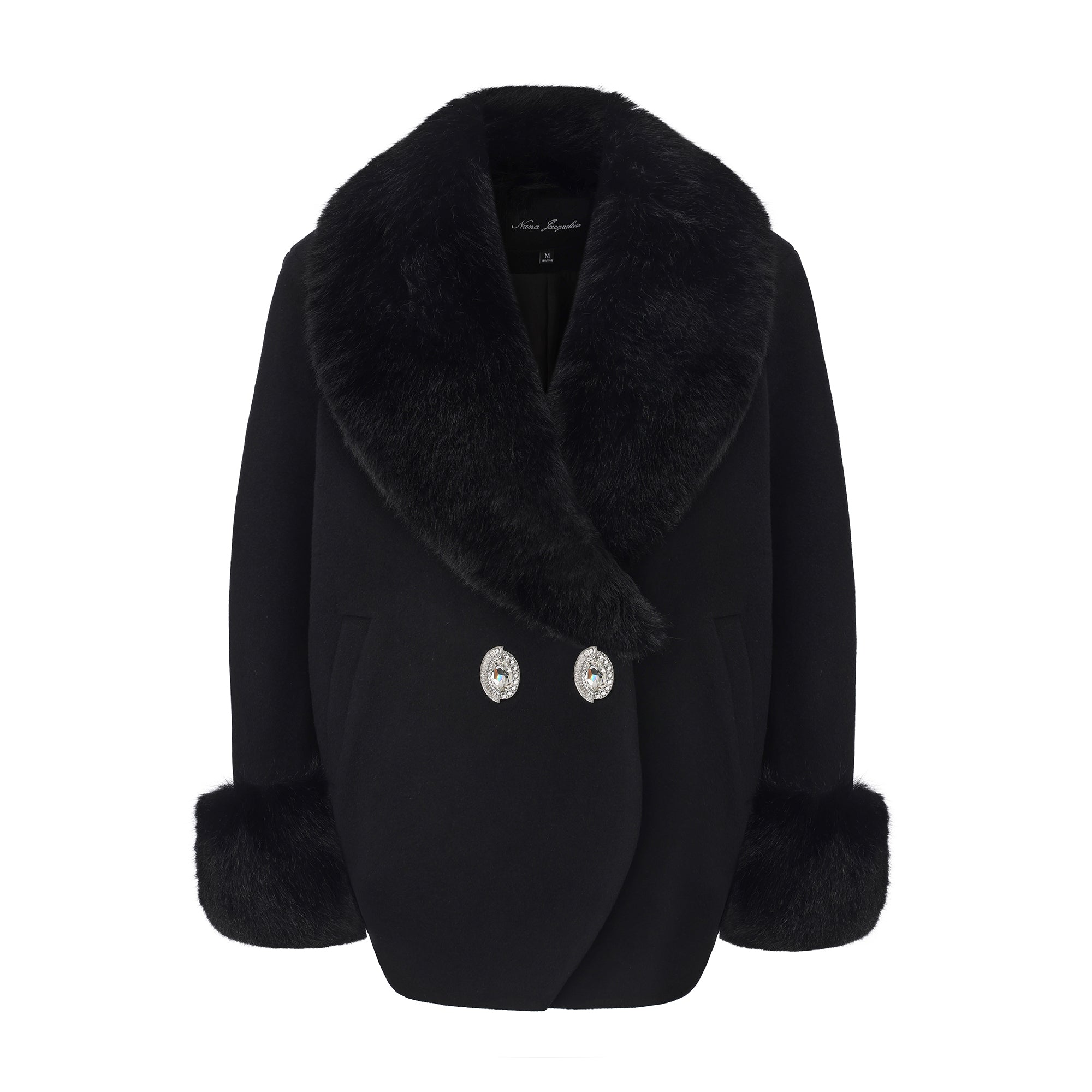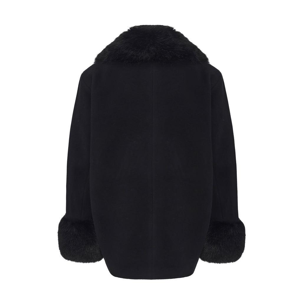 NANA JACQUELINE Althea Faux Fur Collar Cocoon Coat (Black) - S is backordered and will ship as soon as it is back in stock.