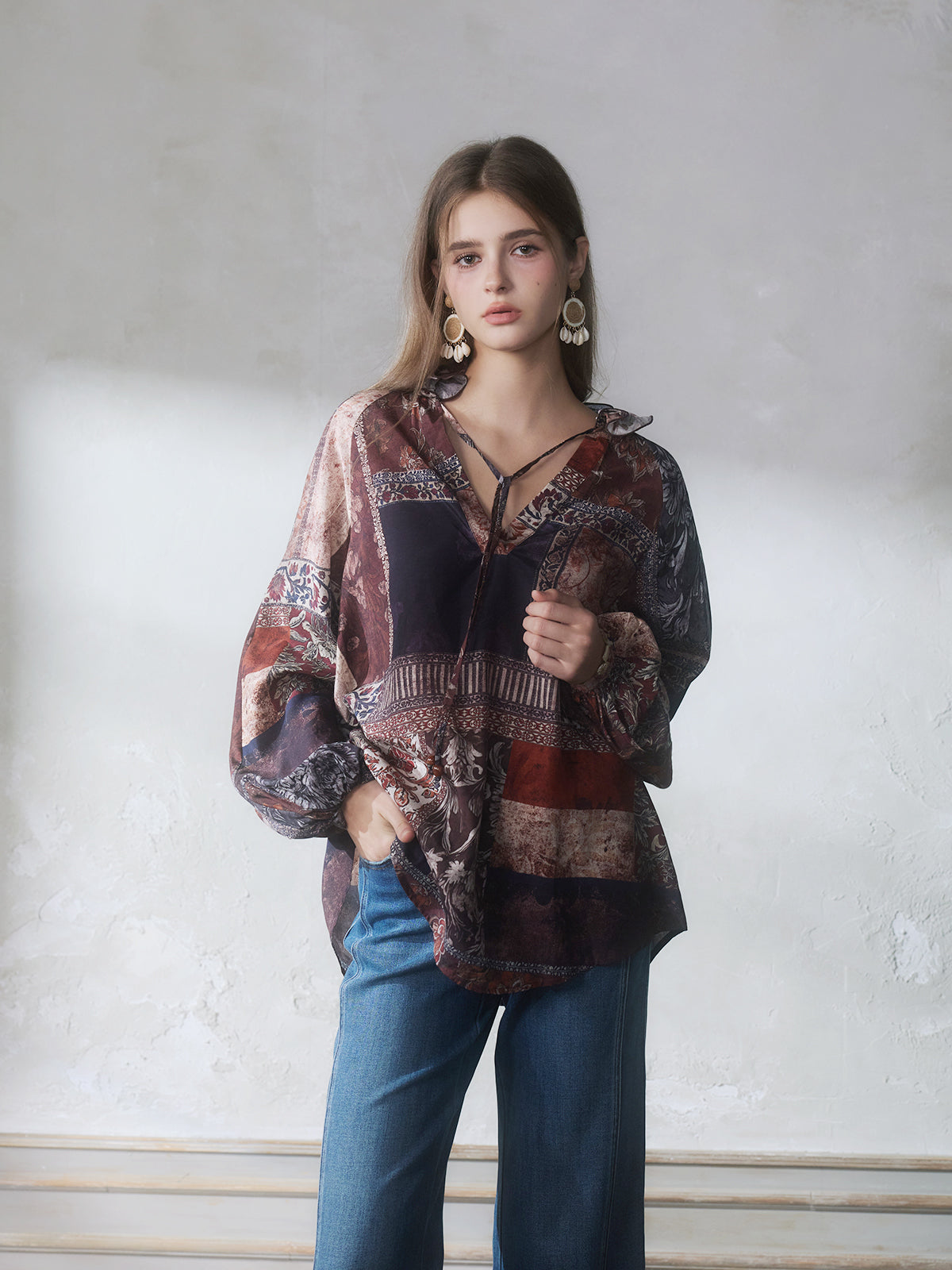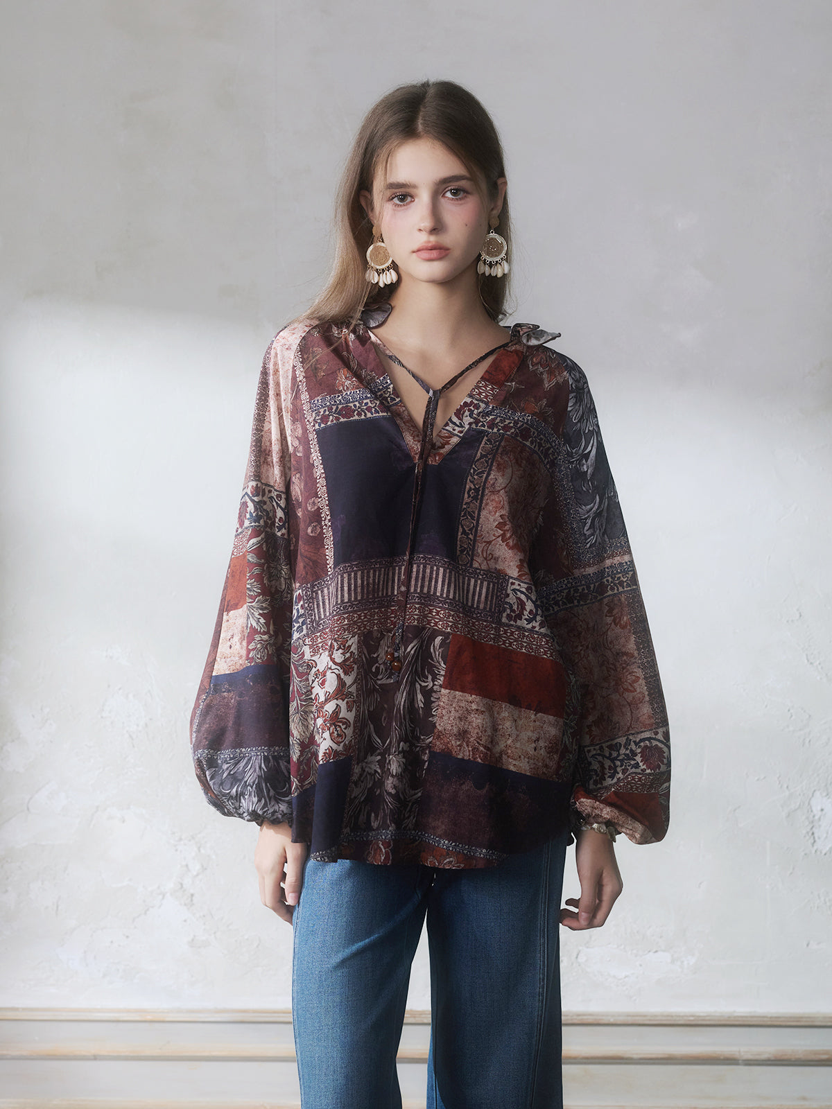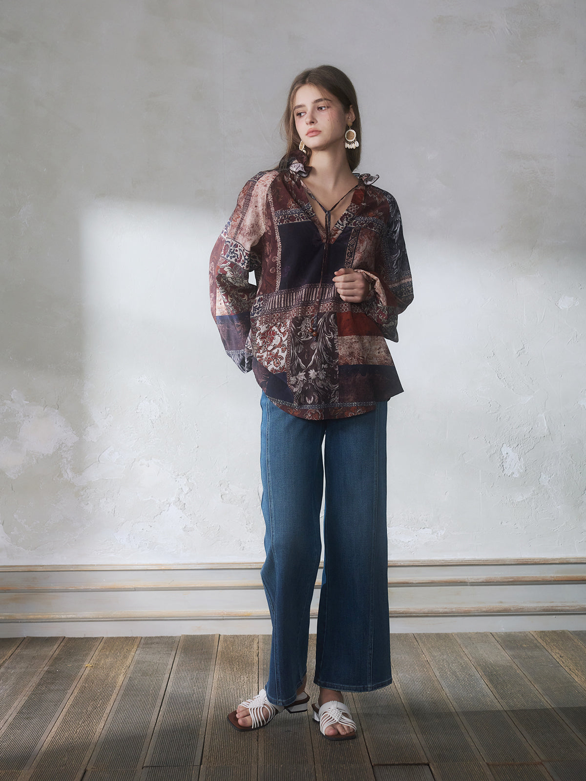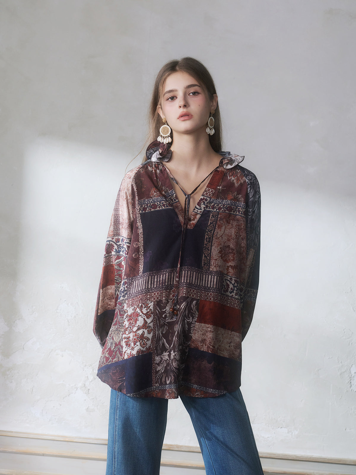 GUOJINGYI Flamenco Lace Collar Floral Top