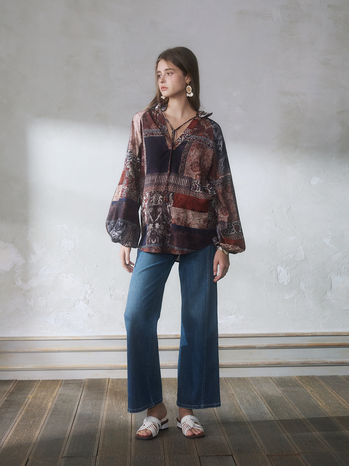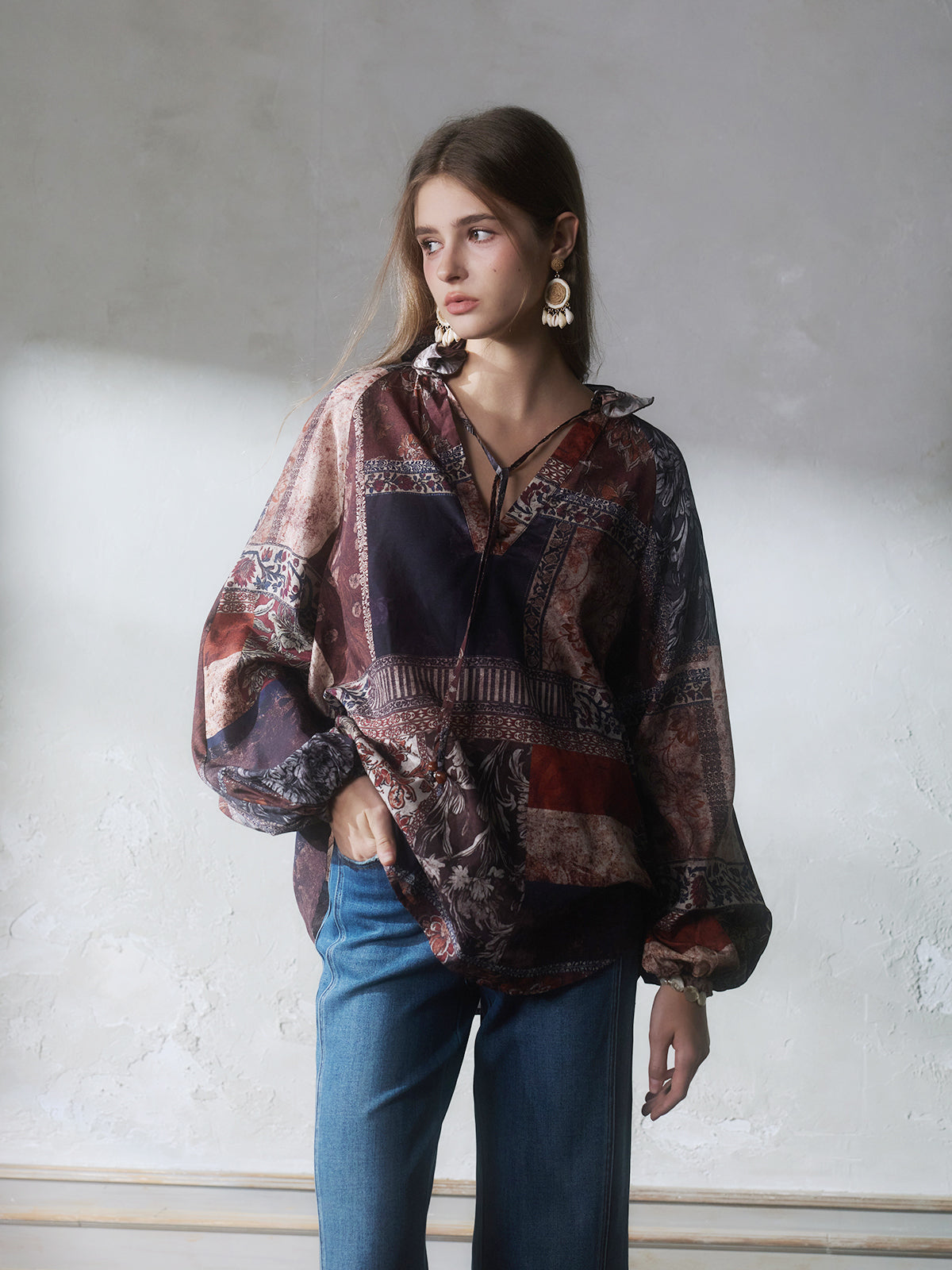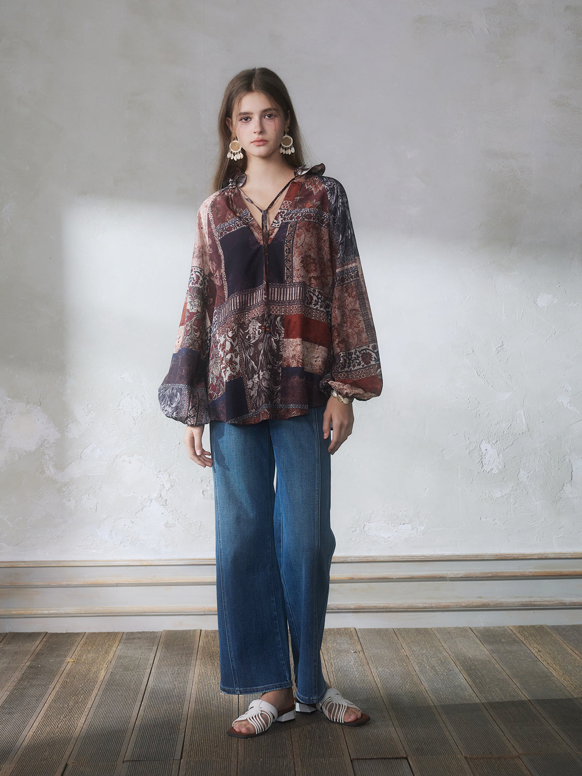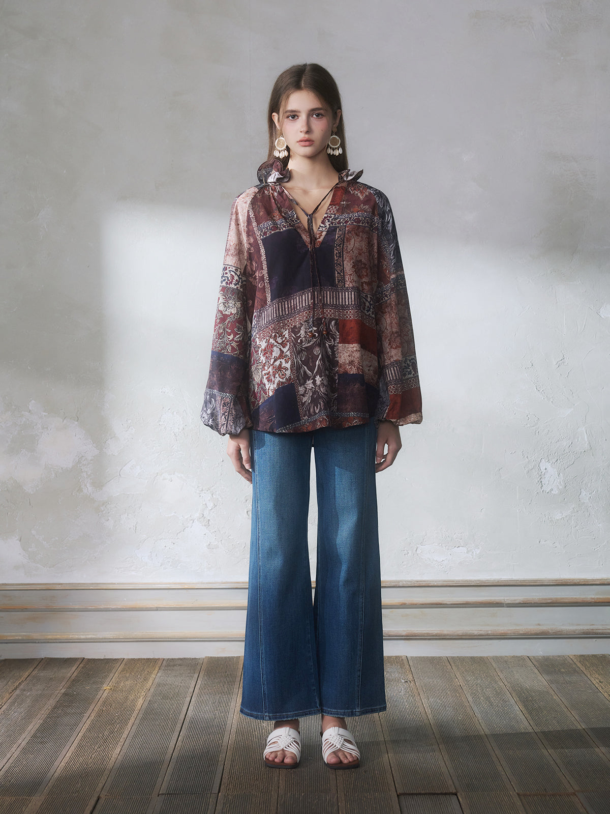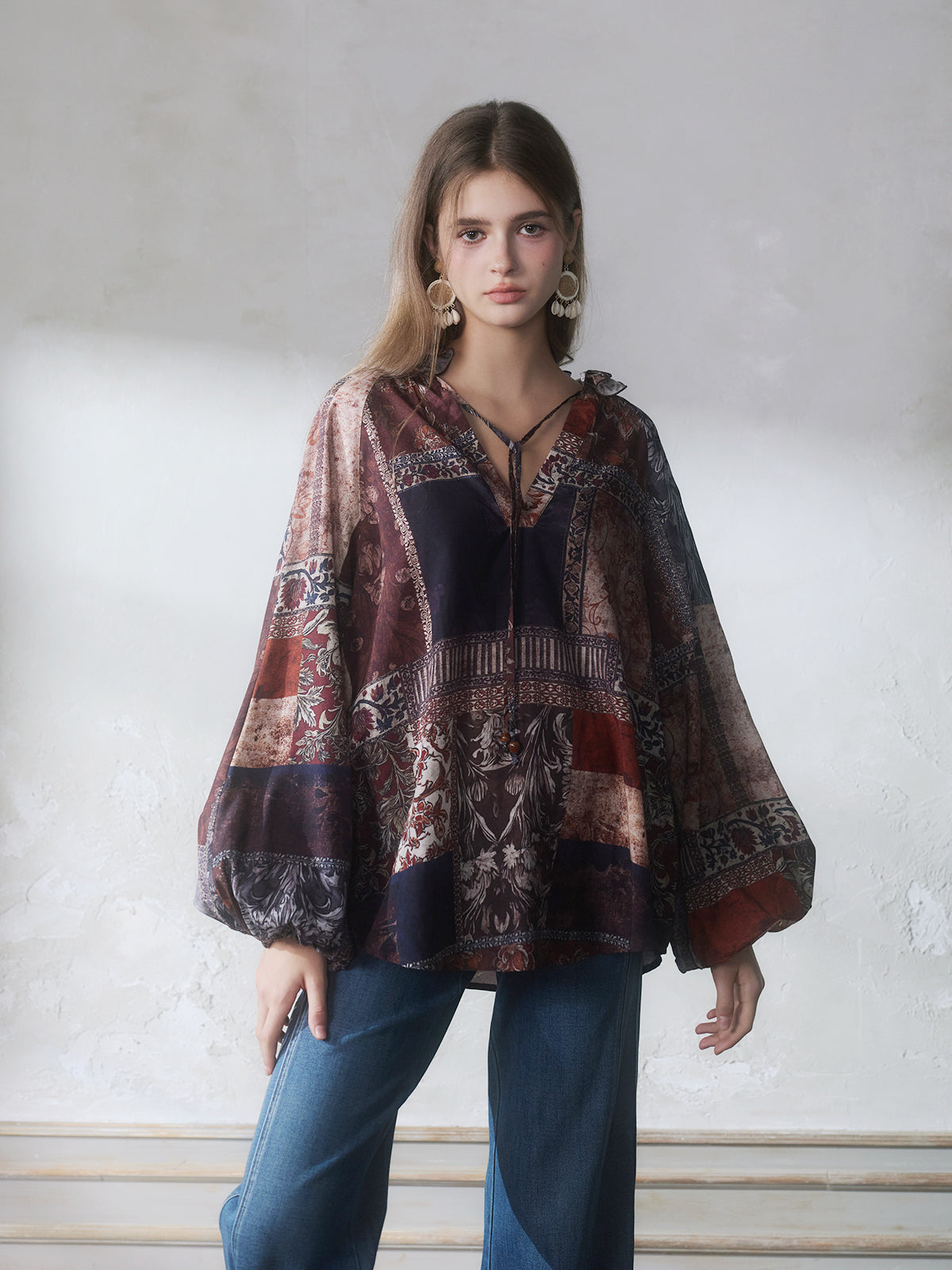 GUOJINGYI Flamenco Lace Collar Floral Top