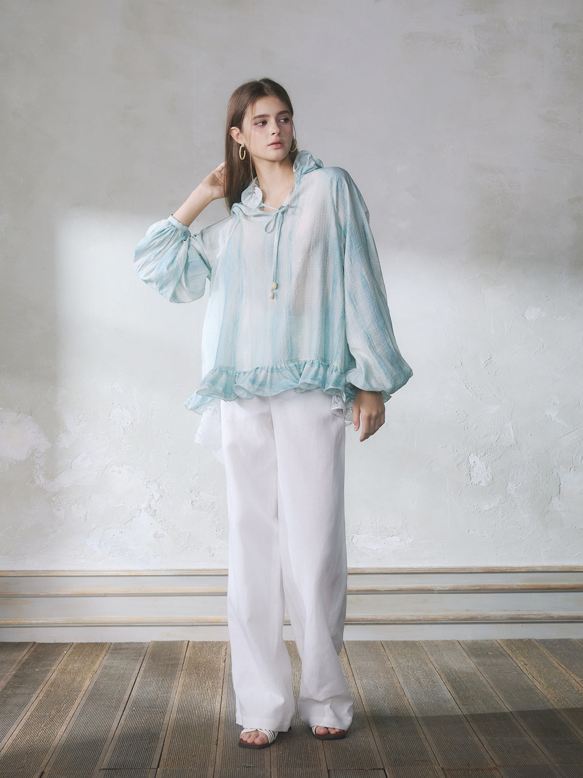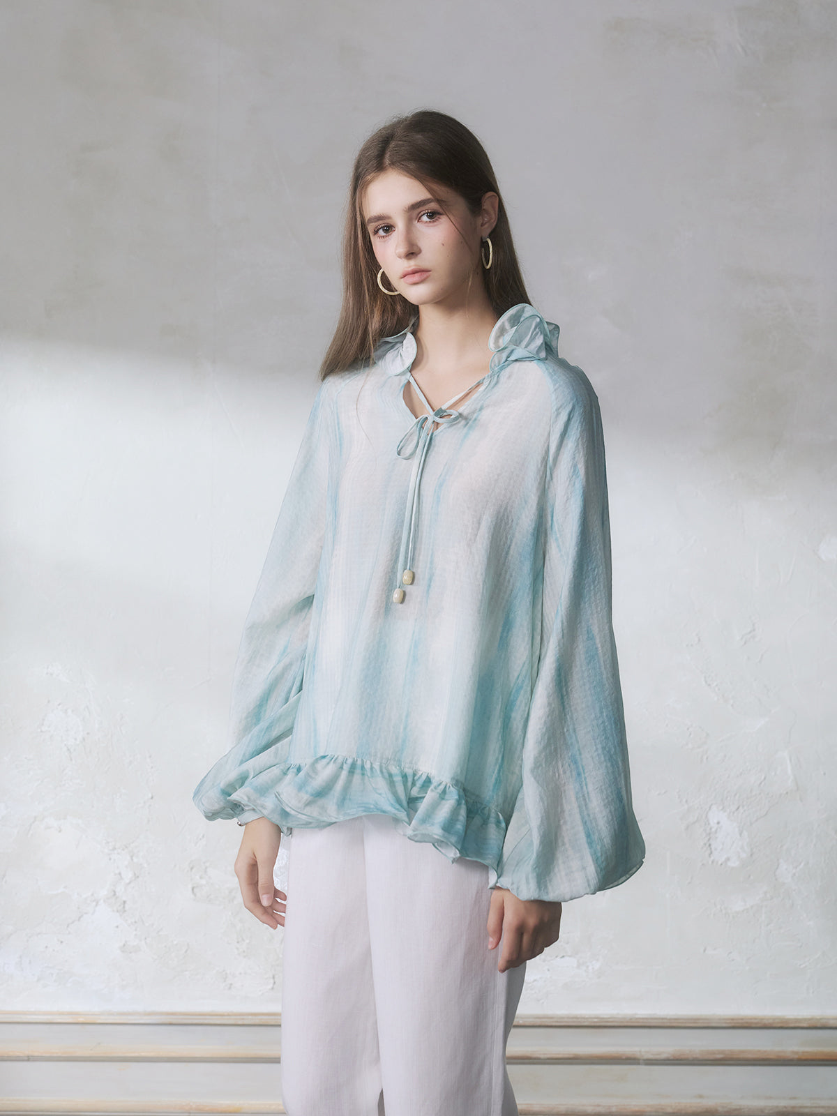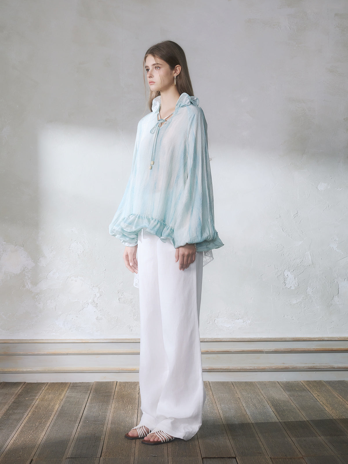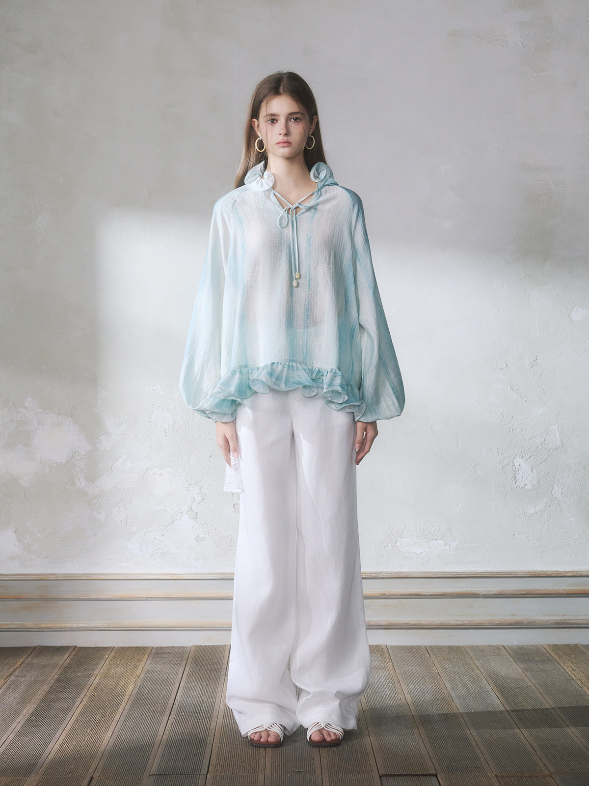 GUOJINGYI Light Blue Lace-Trim Shirt