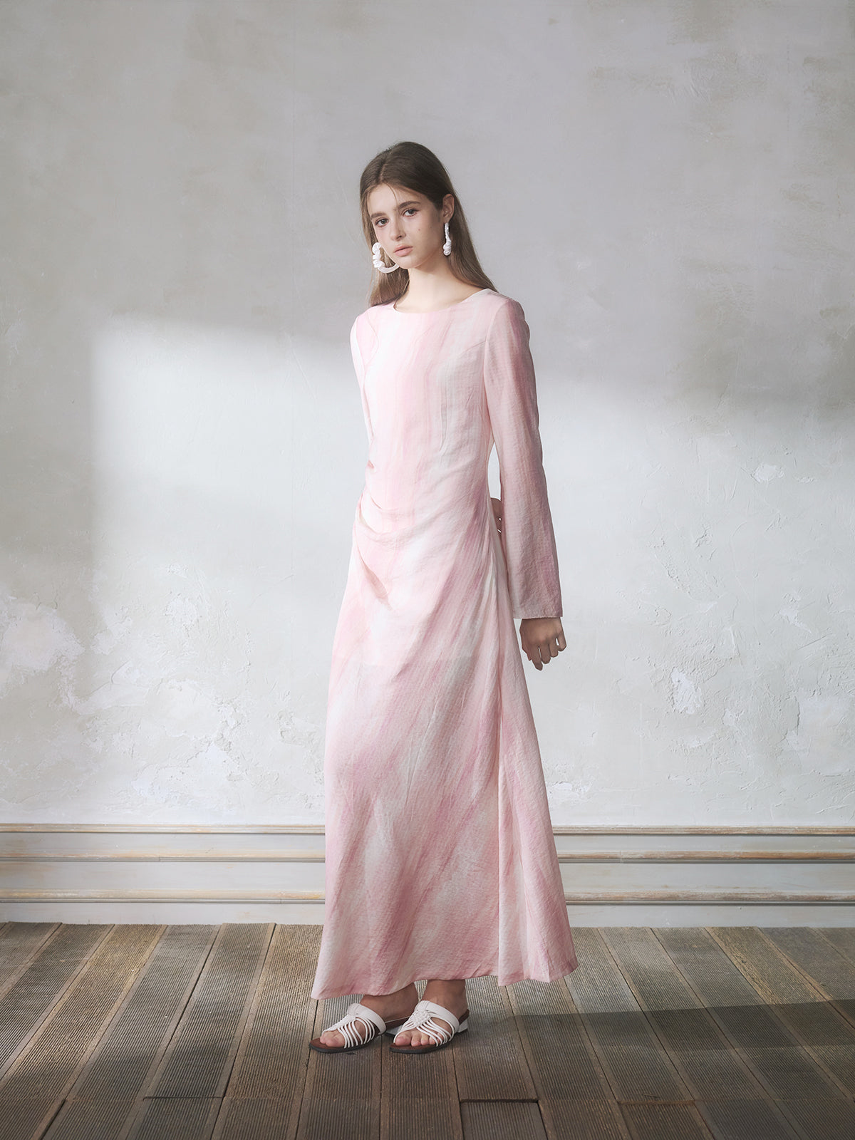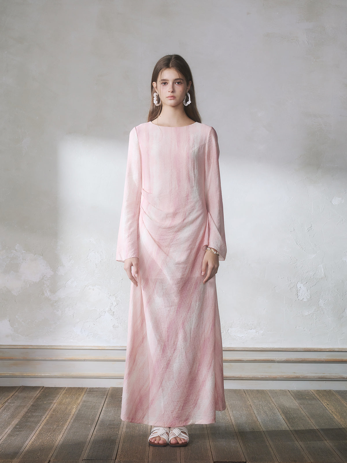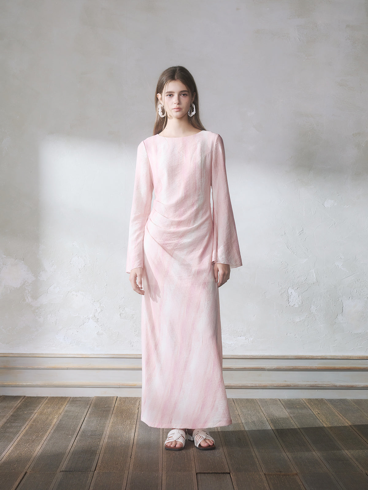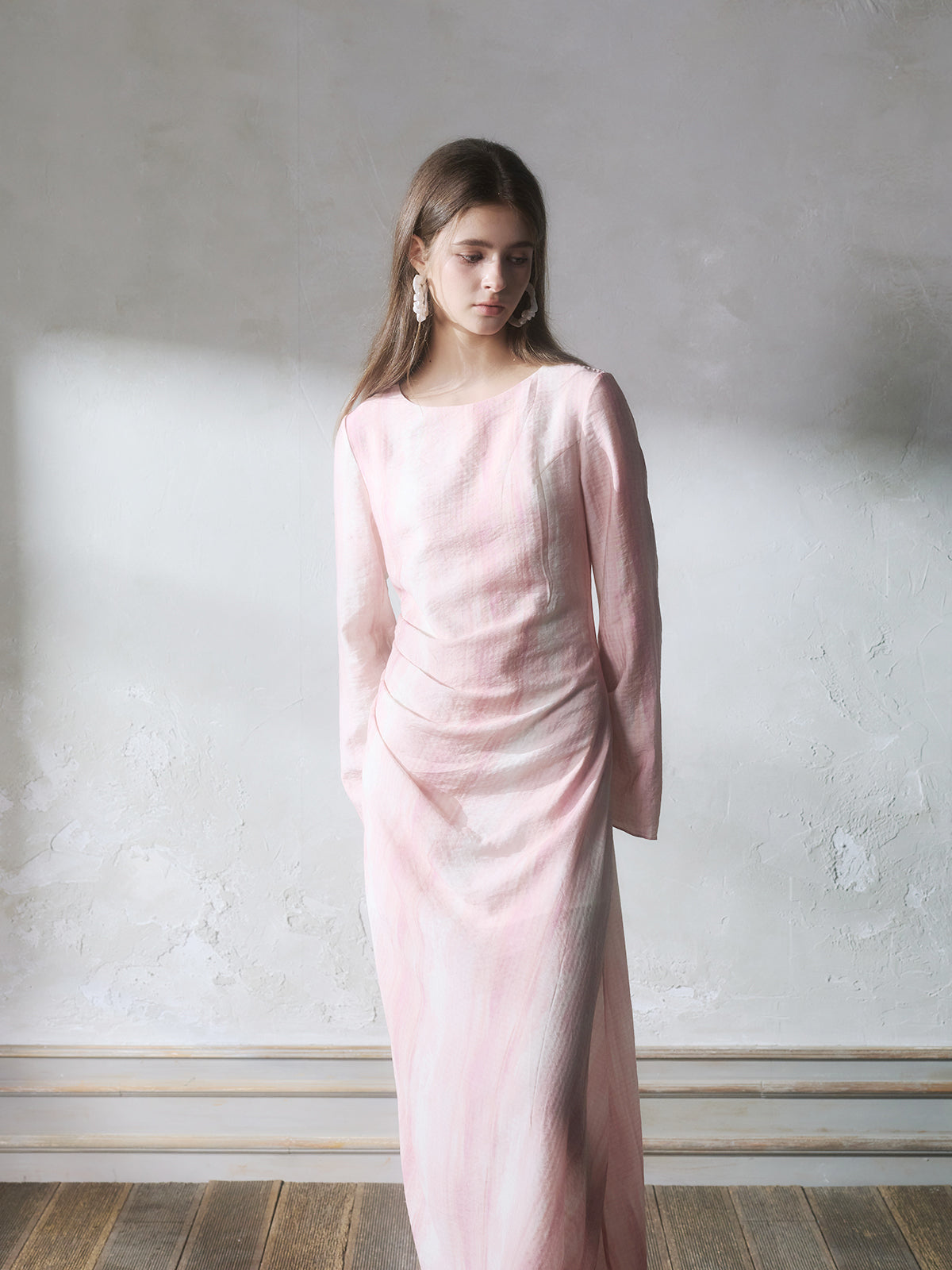 GUOJINGYI Light Pink Printed Maxi Dress