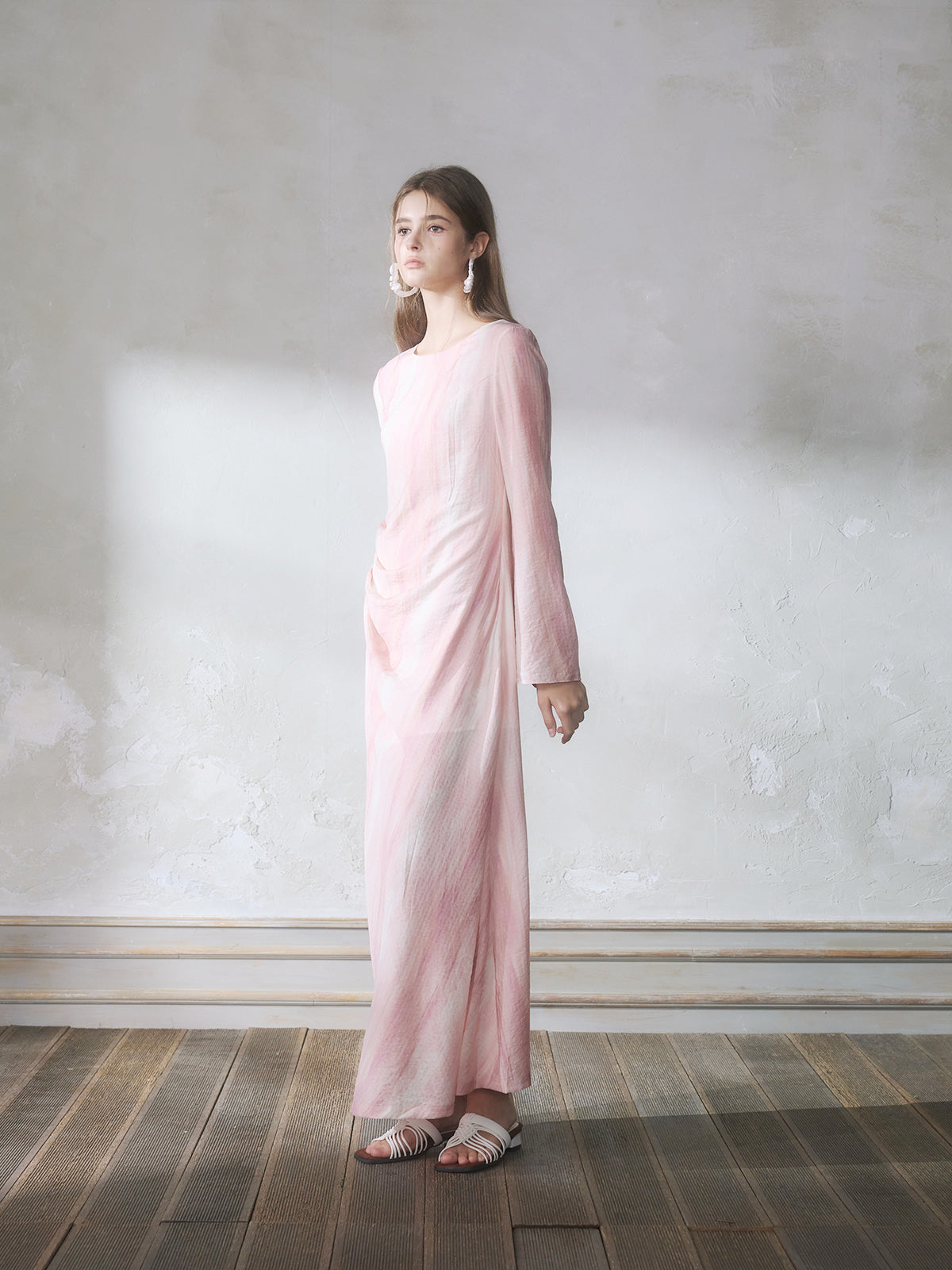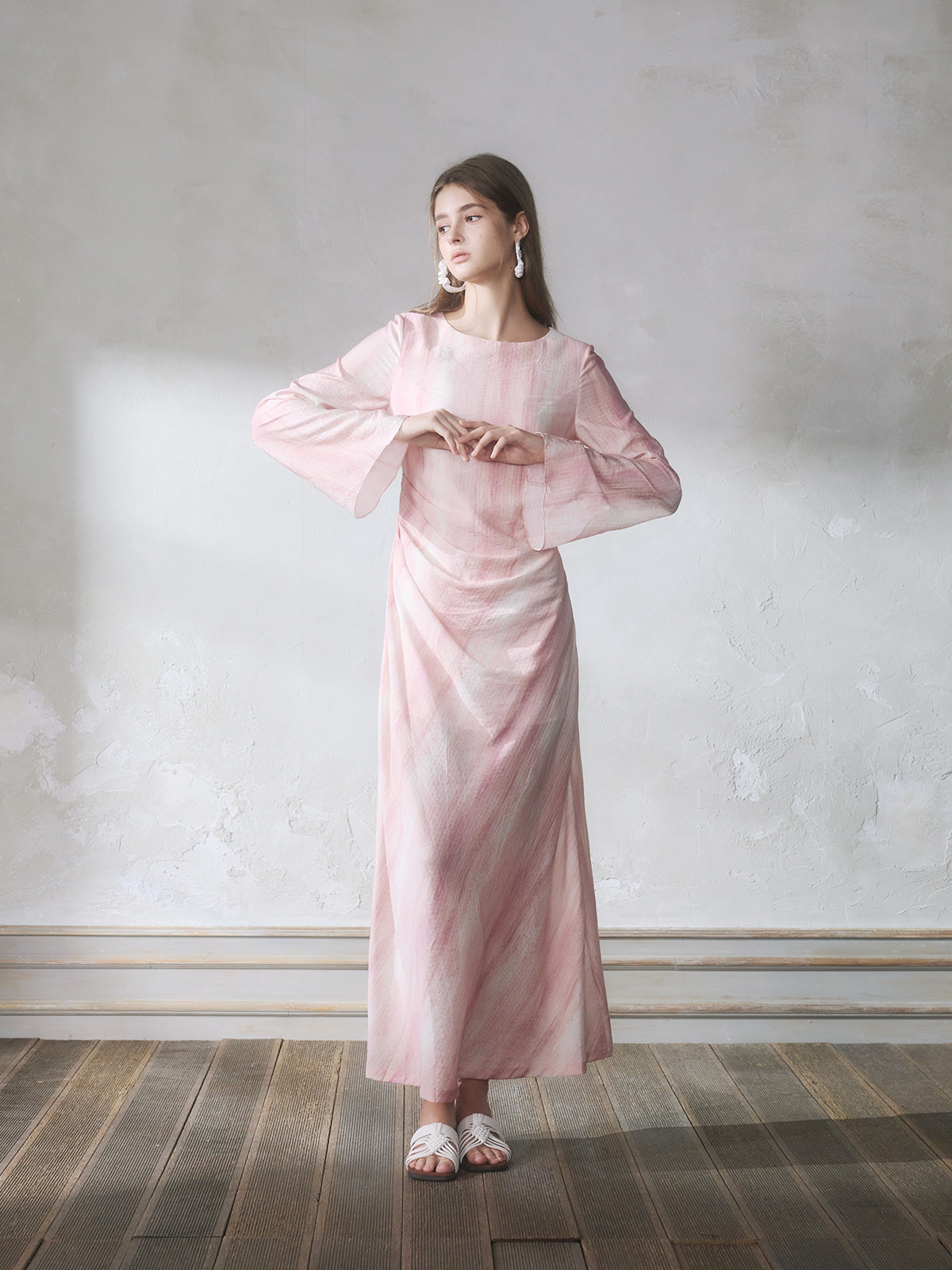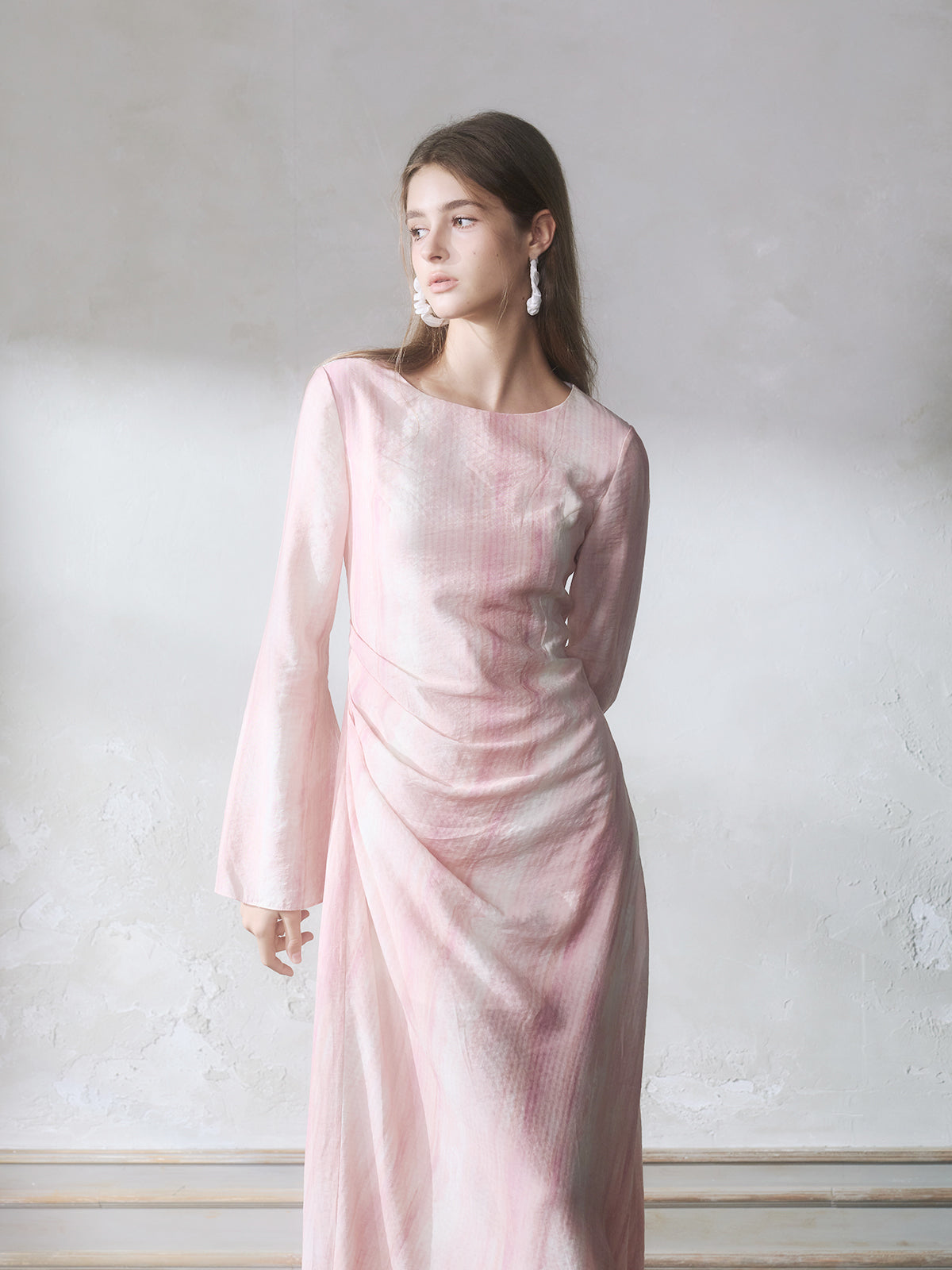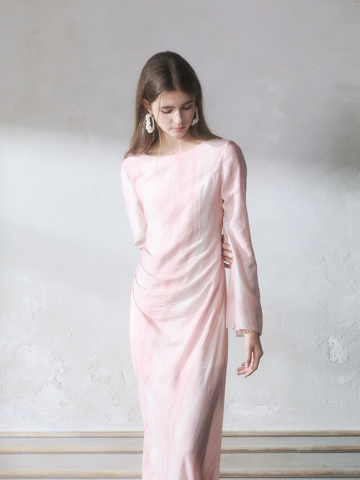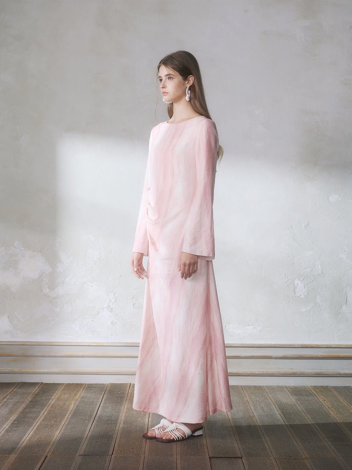 GUOJINGYI Light Pink Printed Maxi Dress