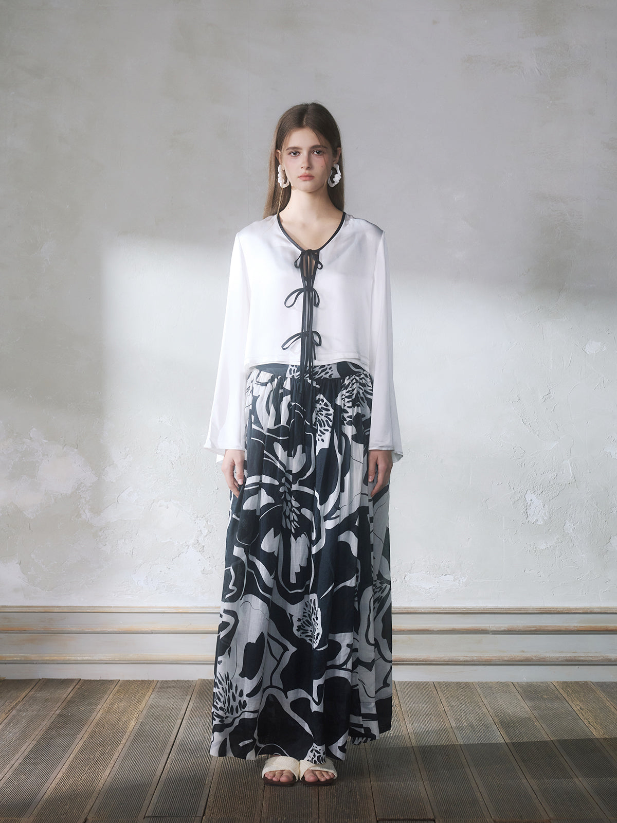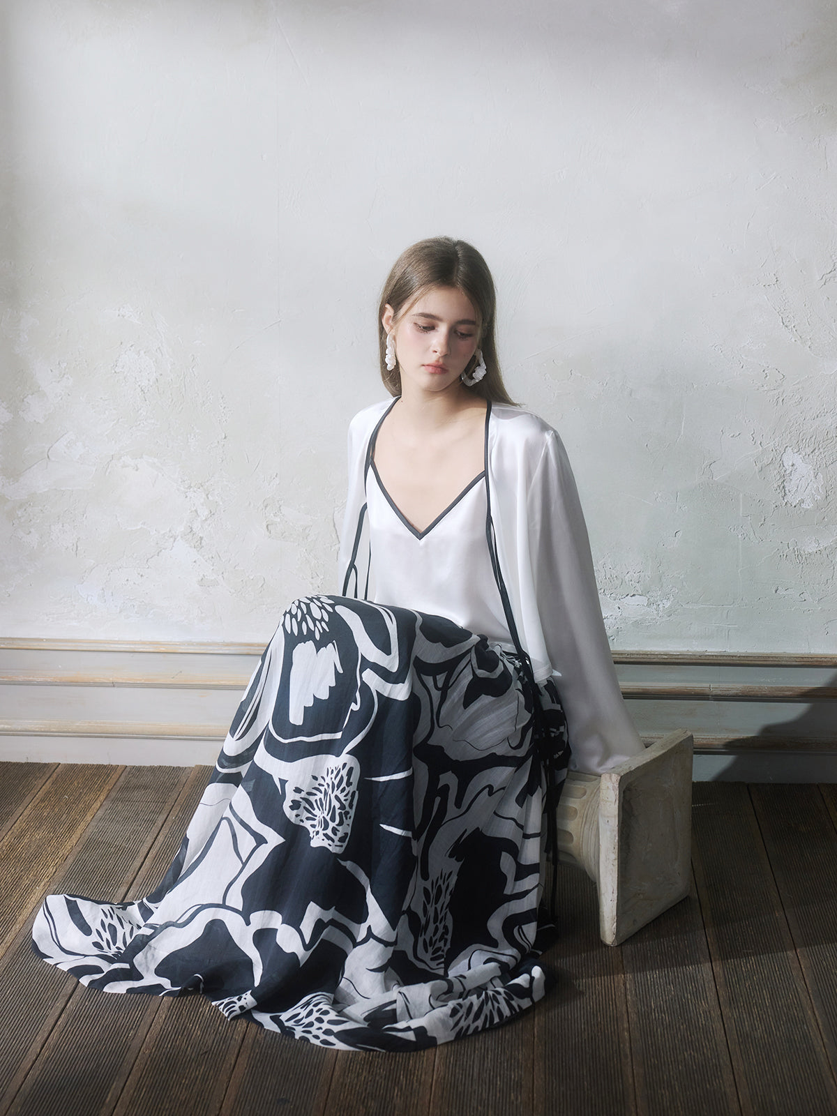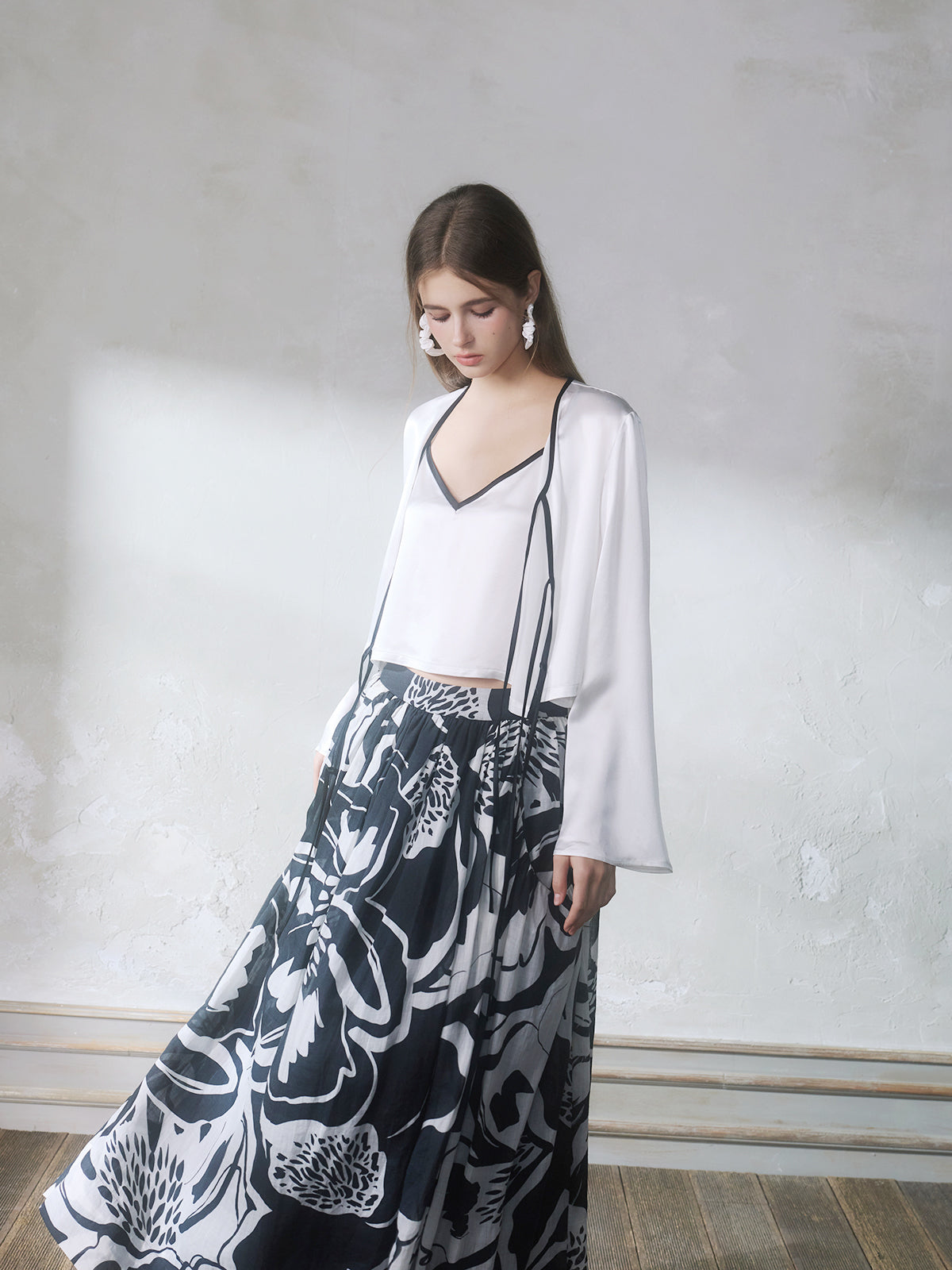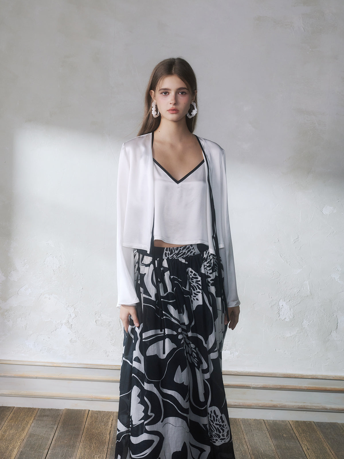GUOJINGYI White Acetate Cami, Cardigan & Floral Skirt Set