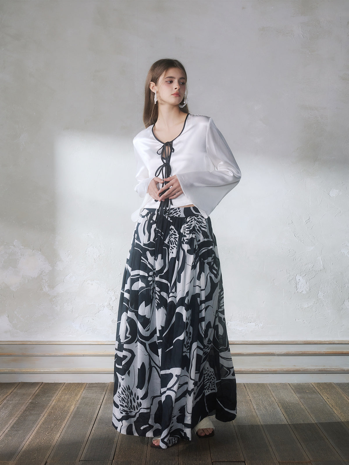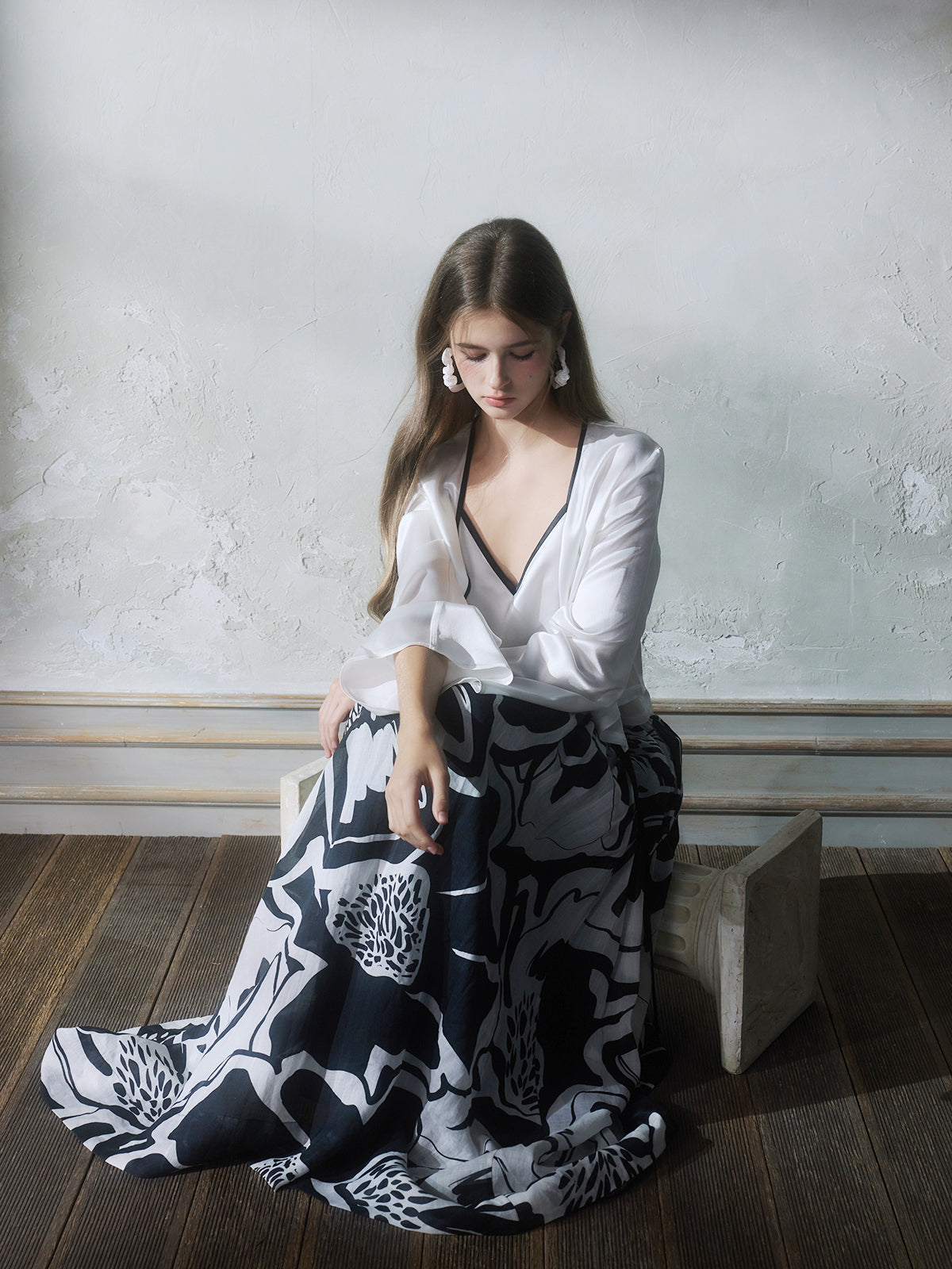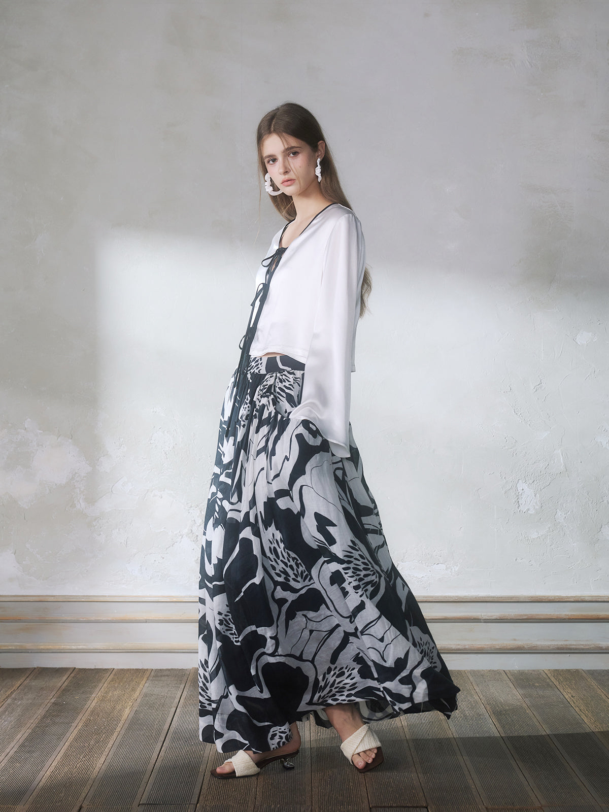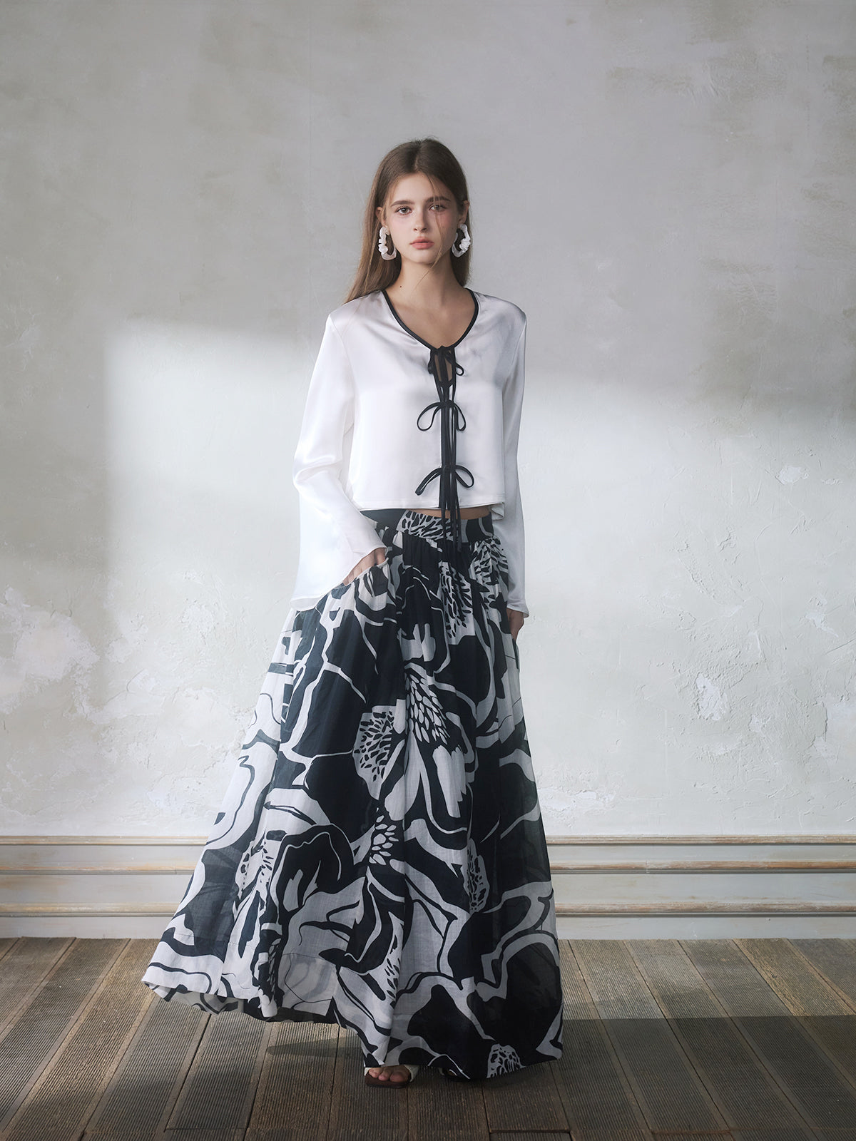 GUOJINGYI White Acetate Cami, Cardigan & Floral Skirt Set