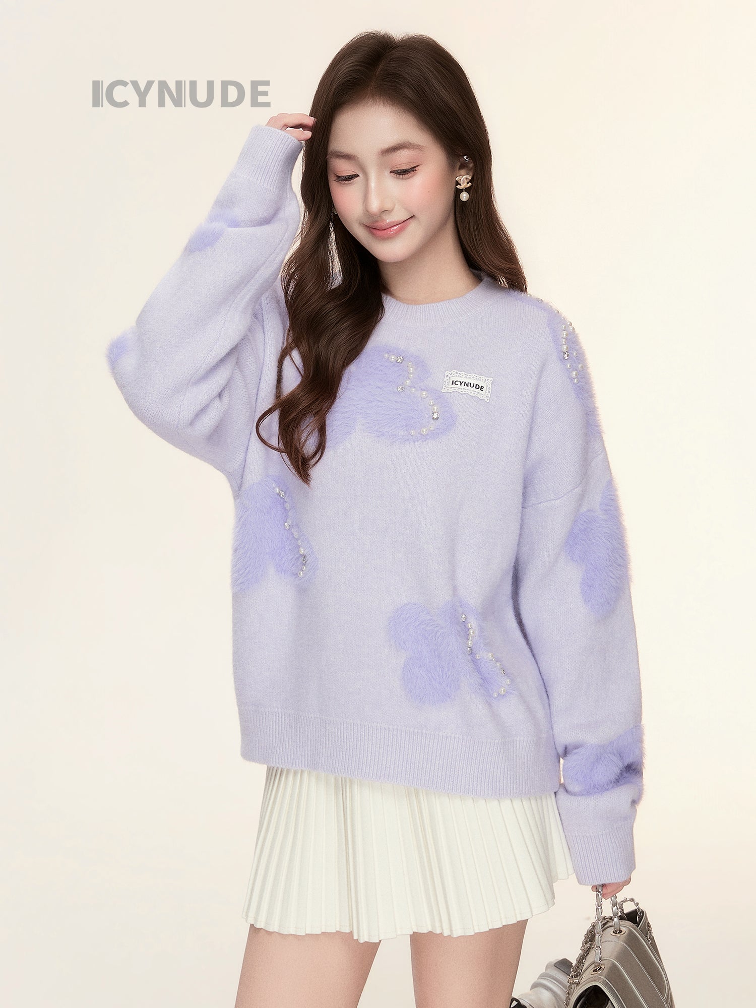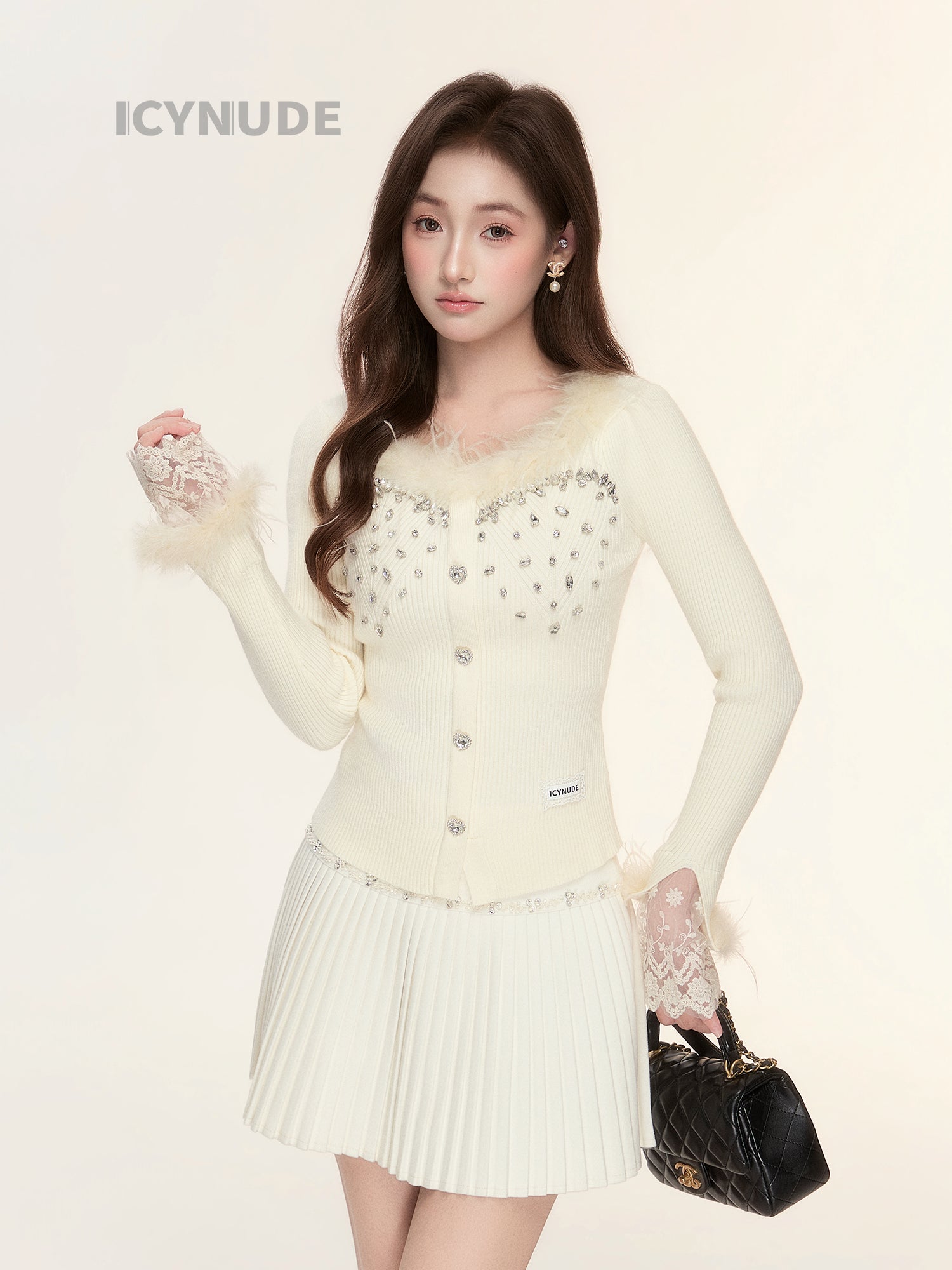 ICY NUDE Beaded Pleated Skirt