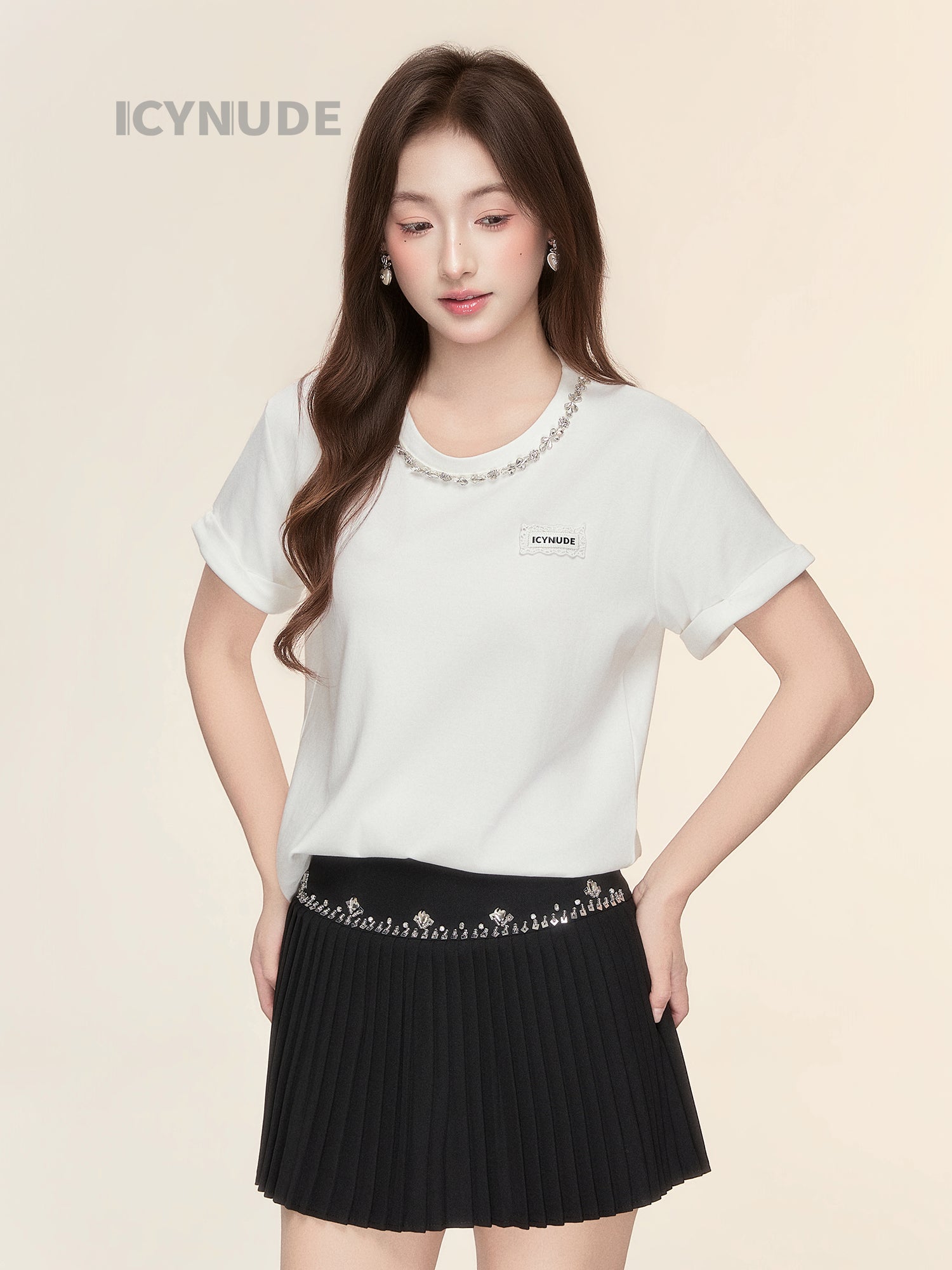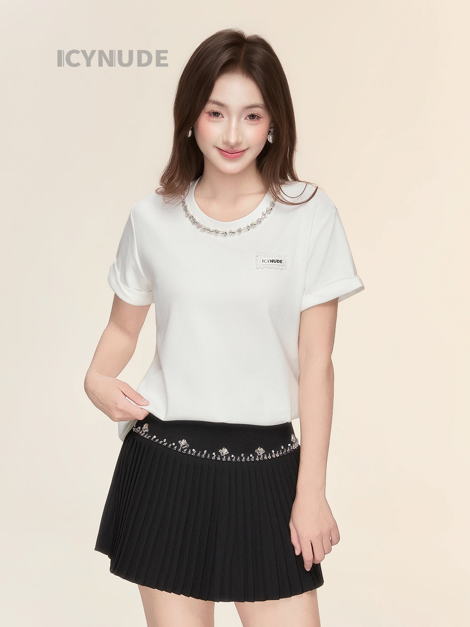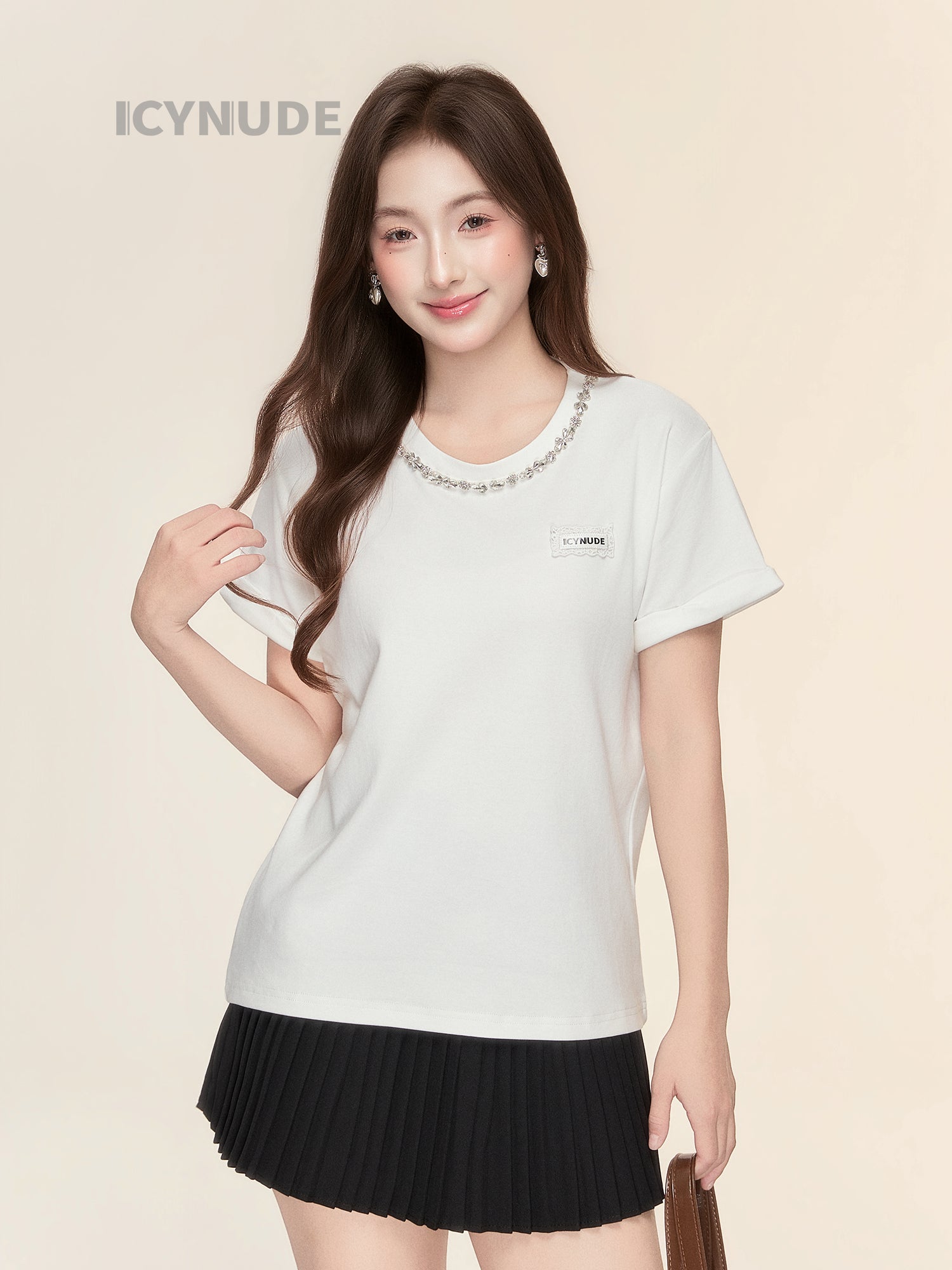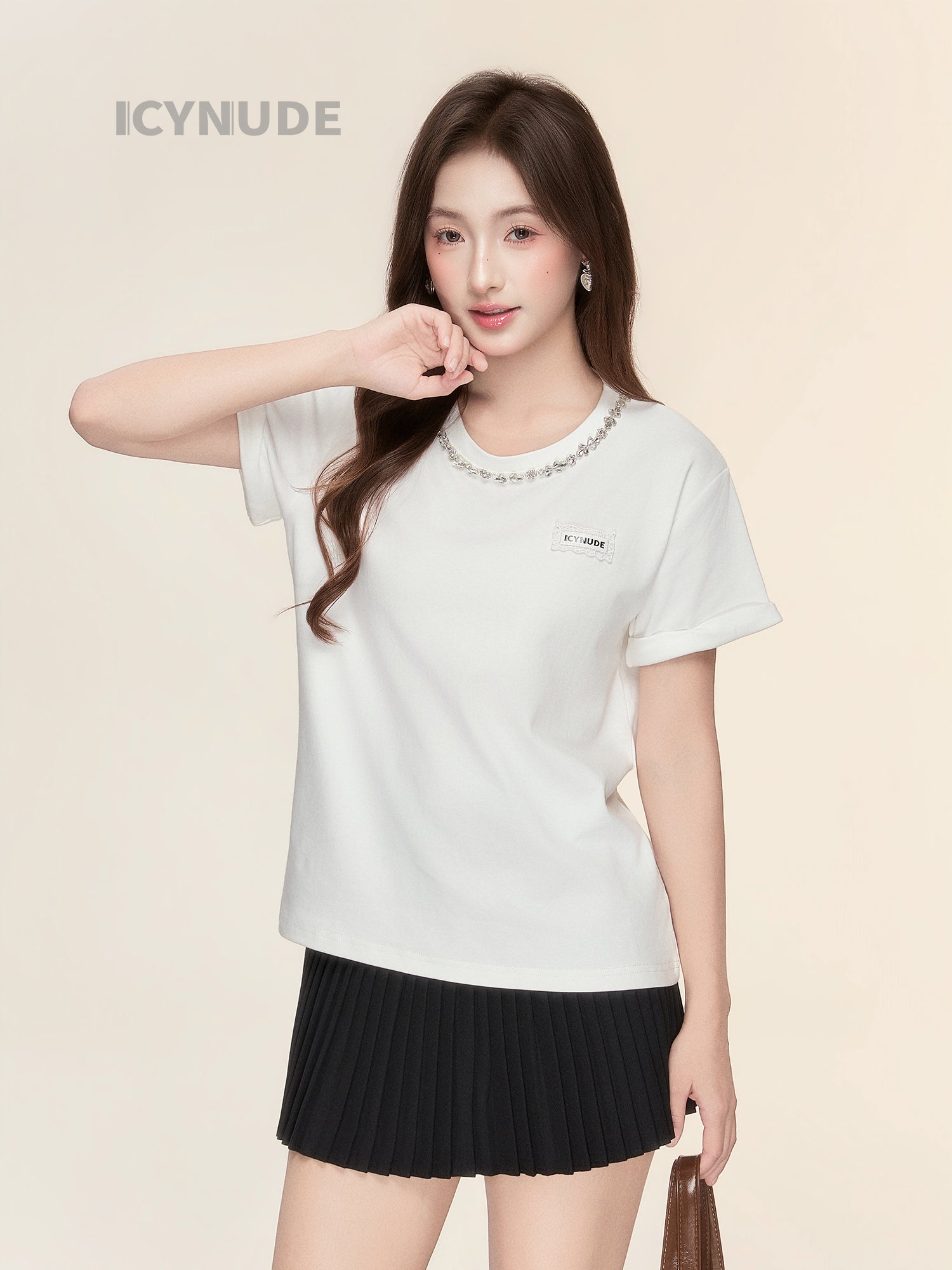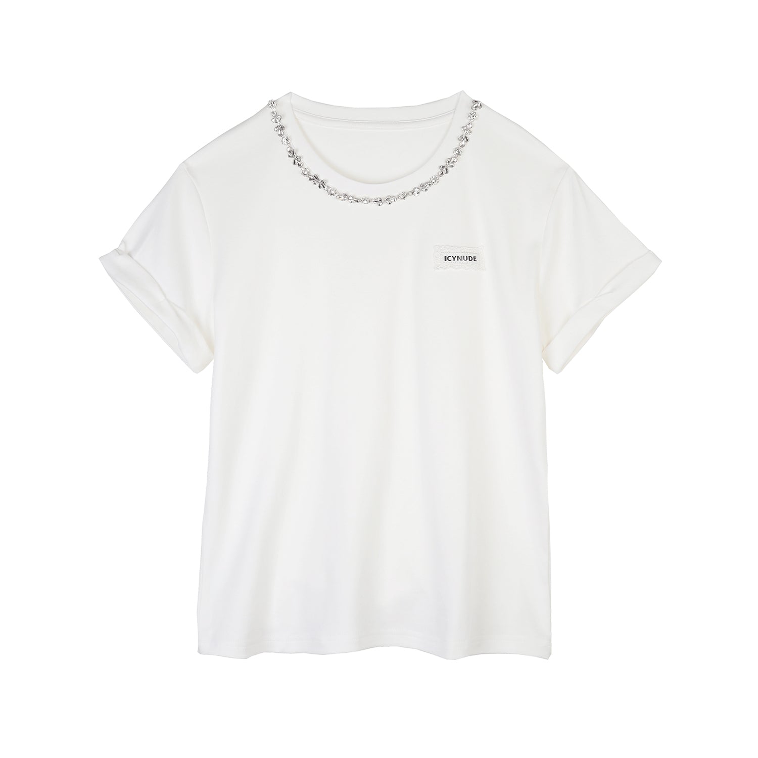 ICY NUDE Crystal-Embellished Collar T-Shirt
