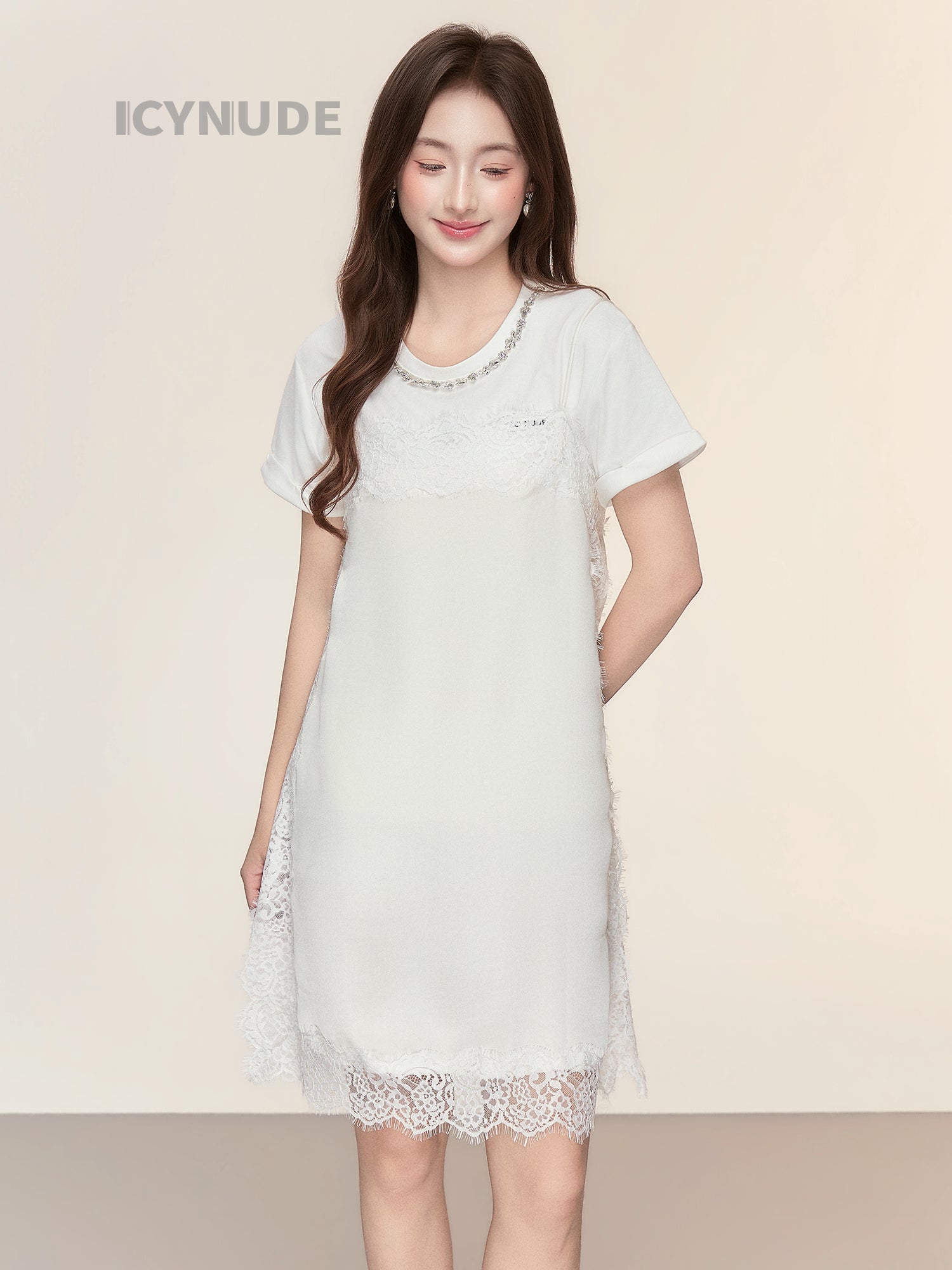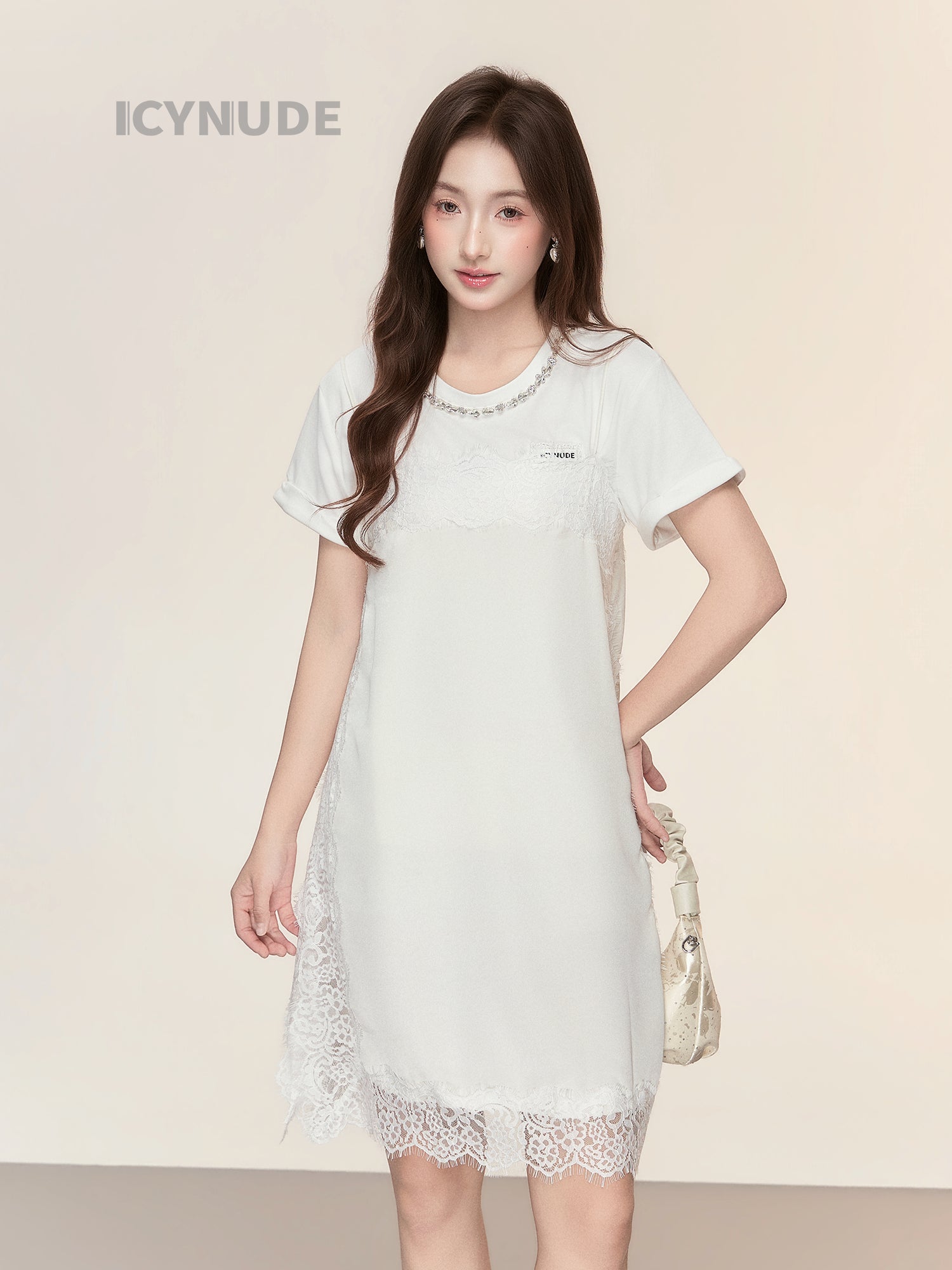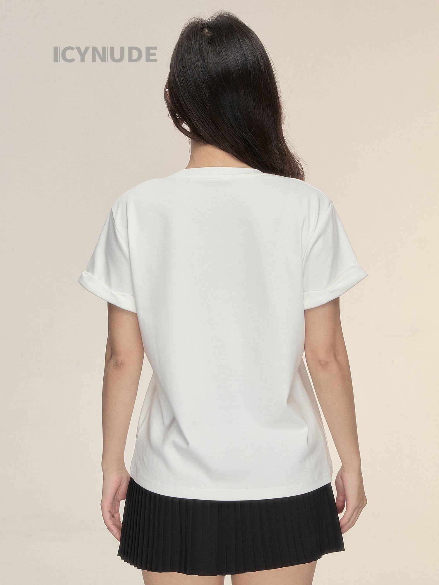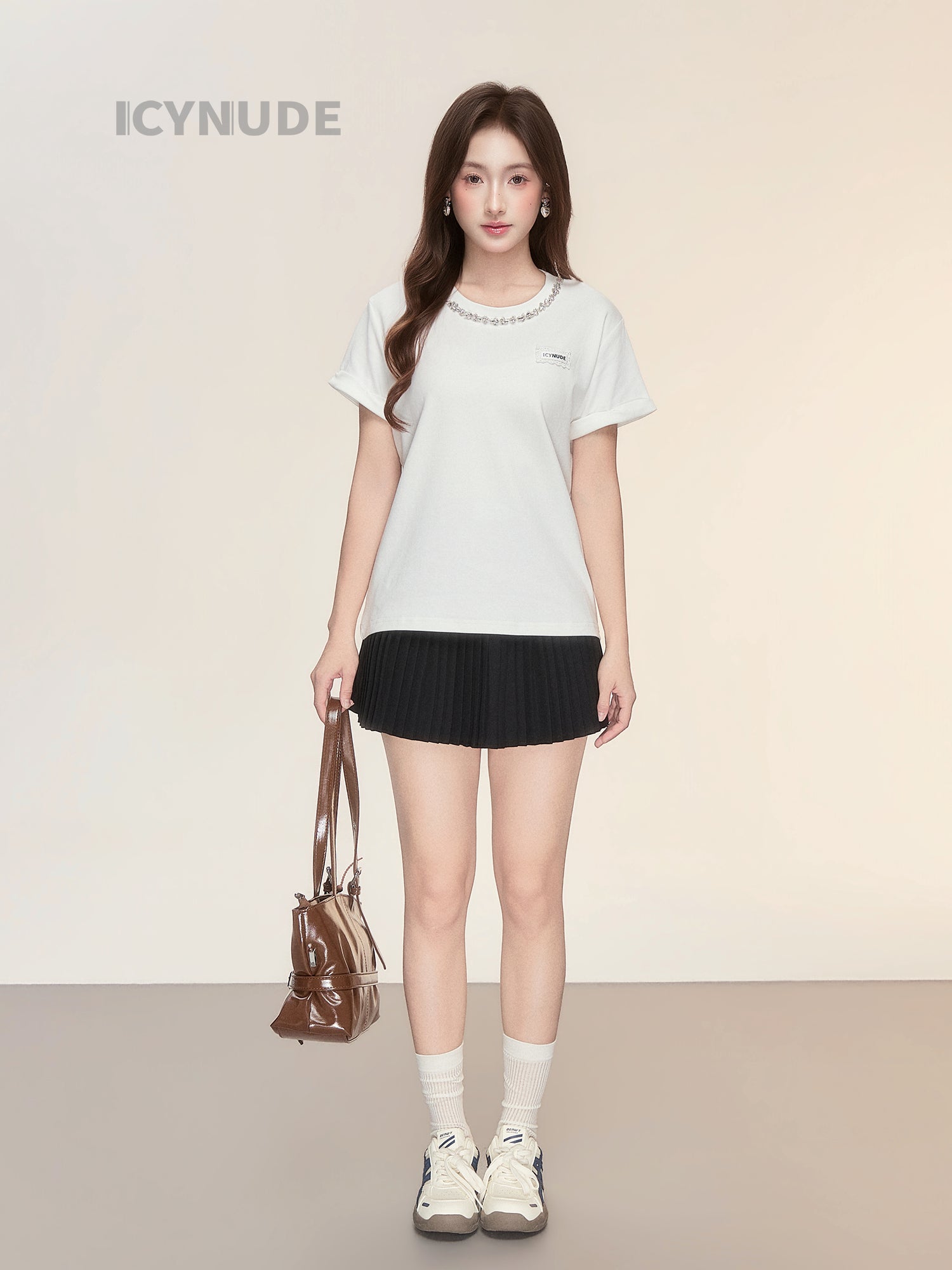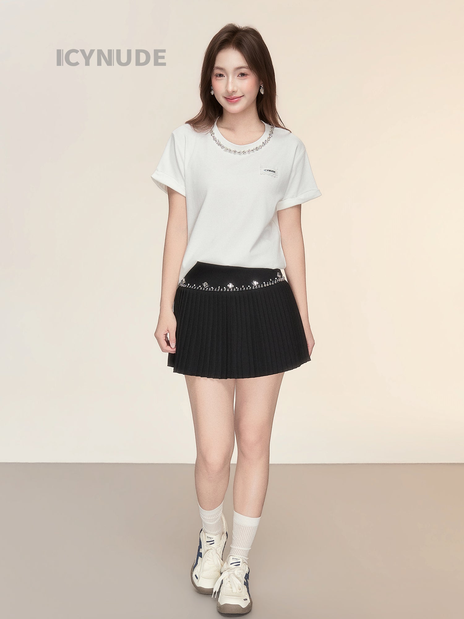 ICY NUDE Crystal-Embellished Collar T-Shirt