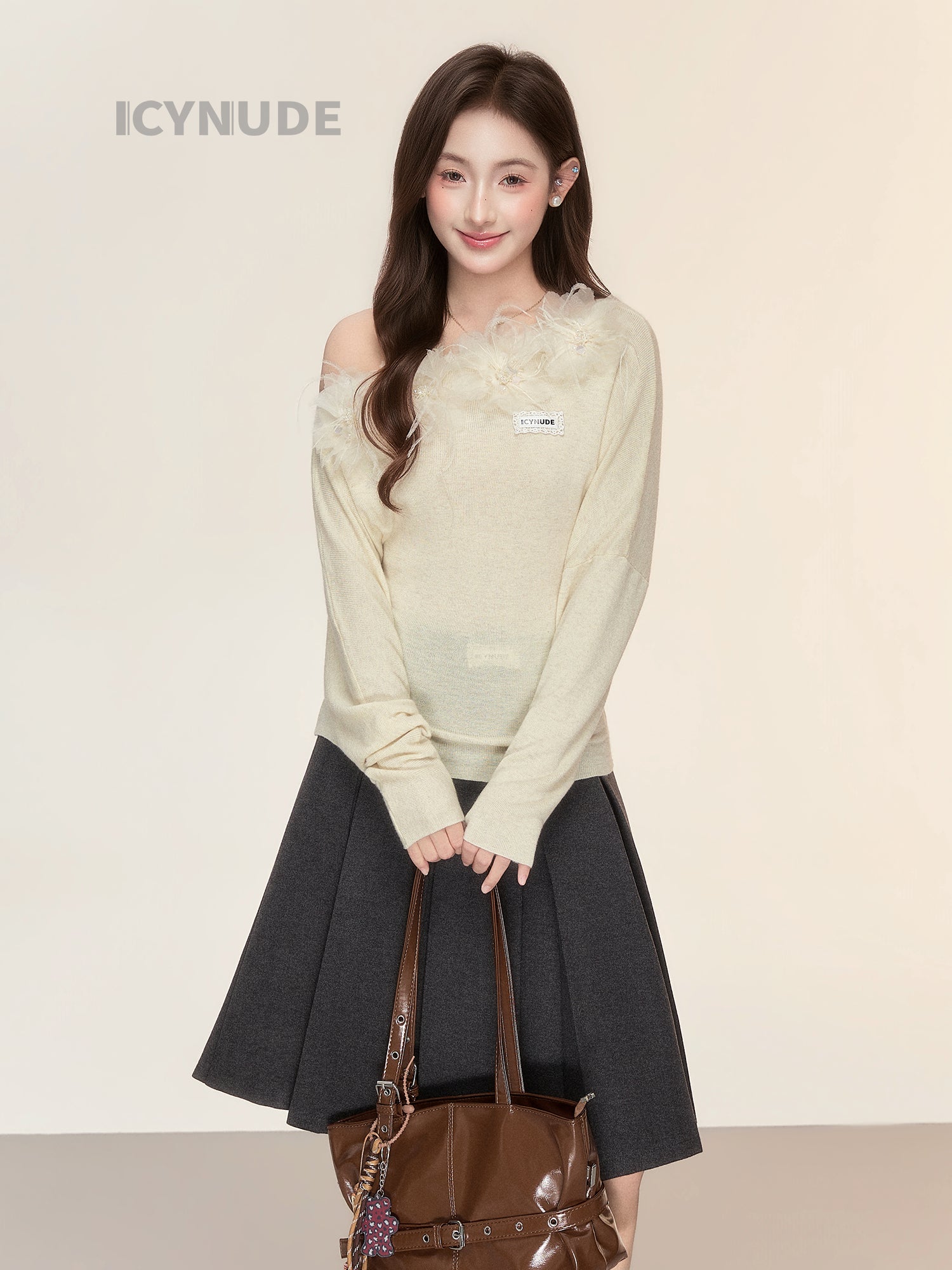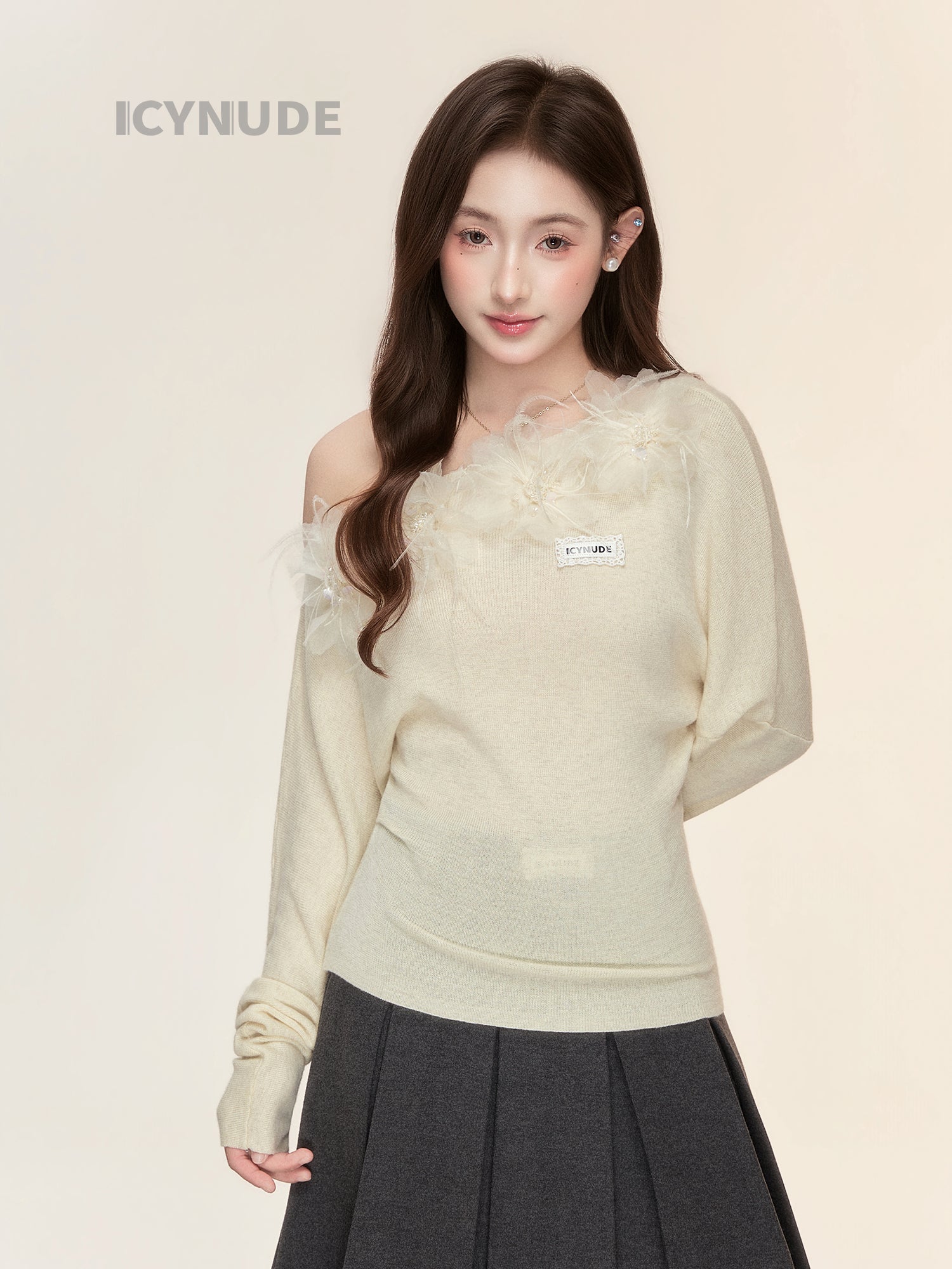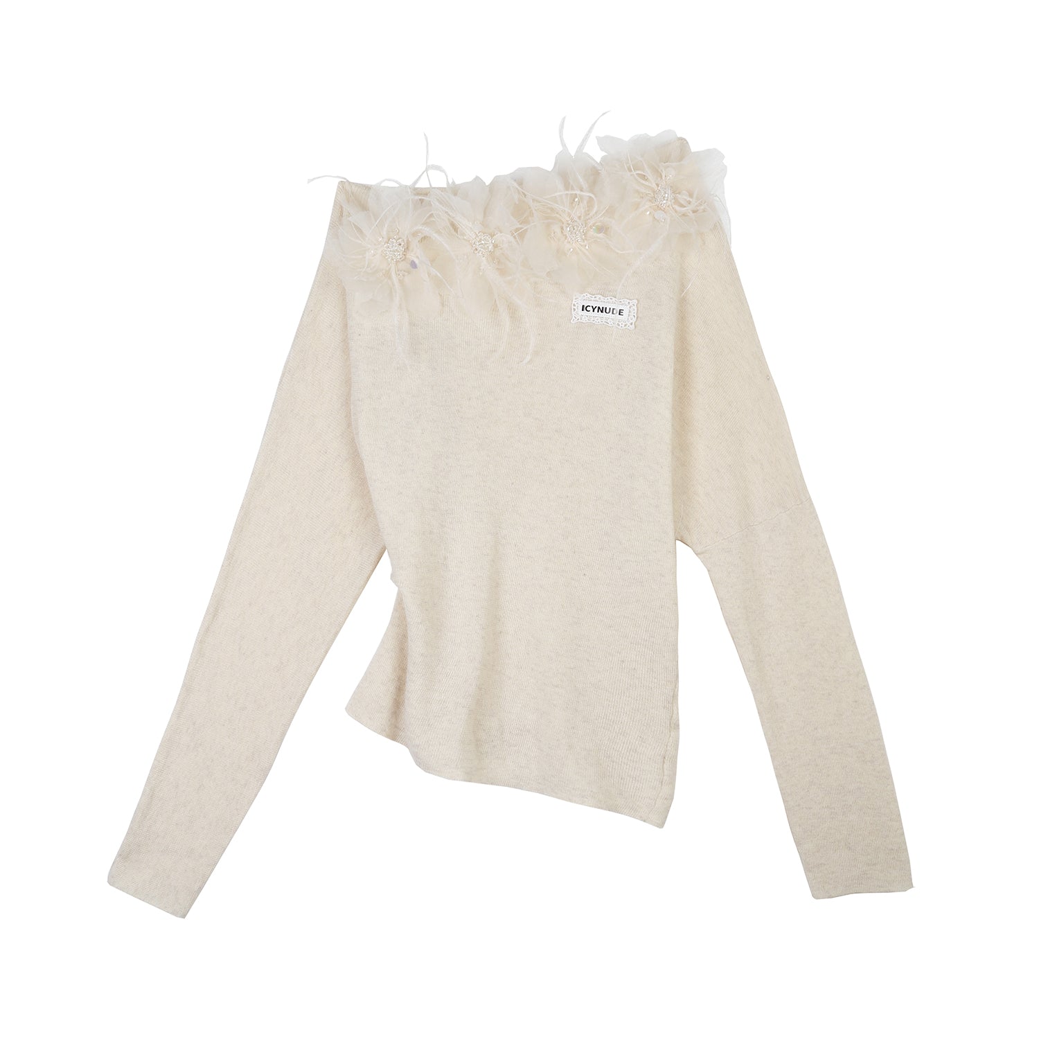 ICY NUDE Floral Off-Shoulder Knit Top