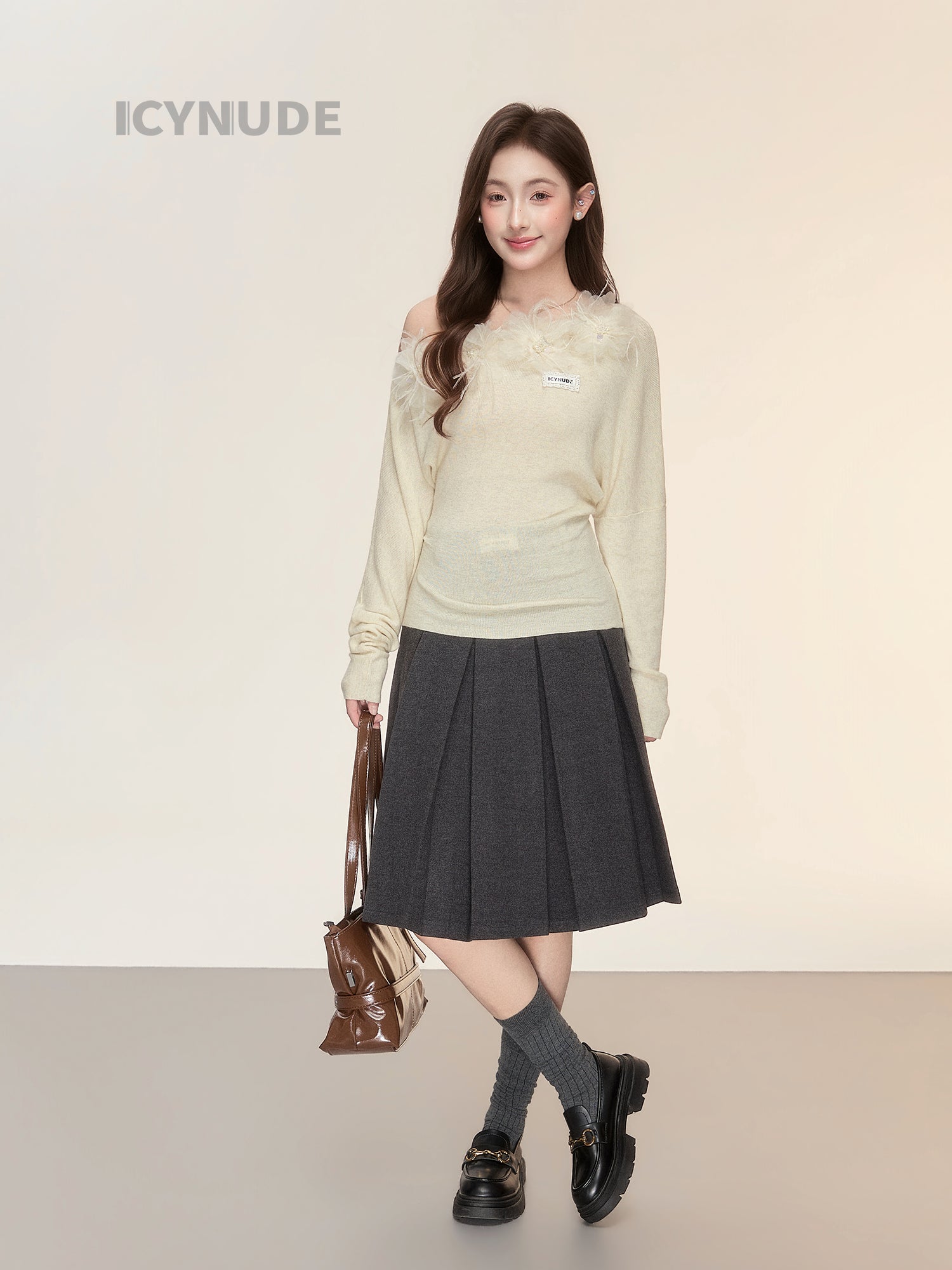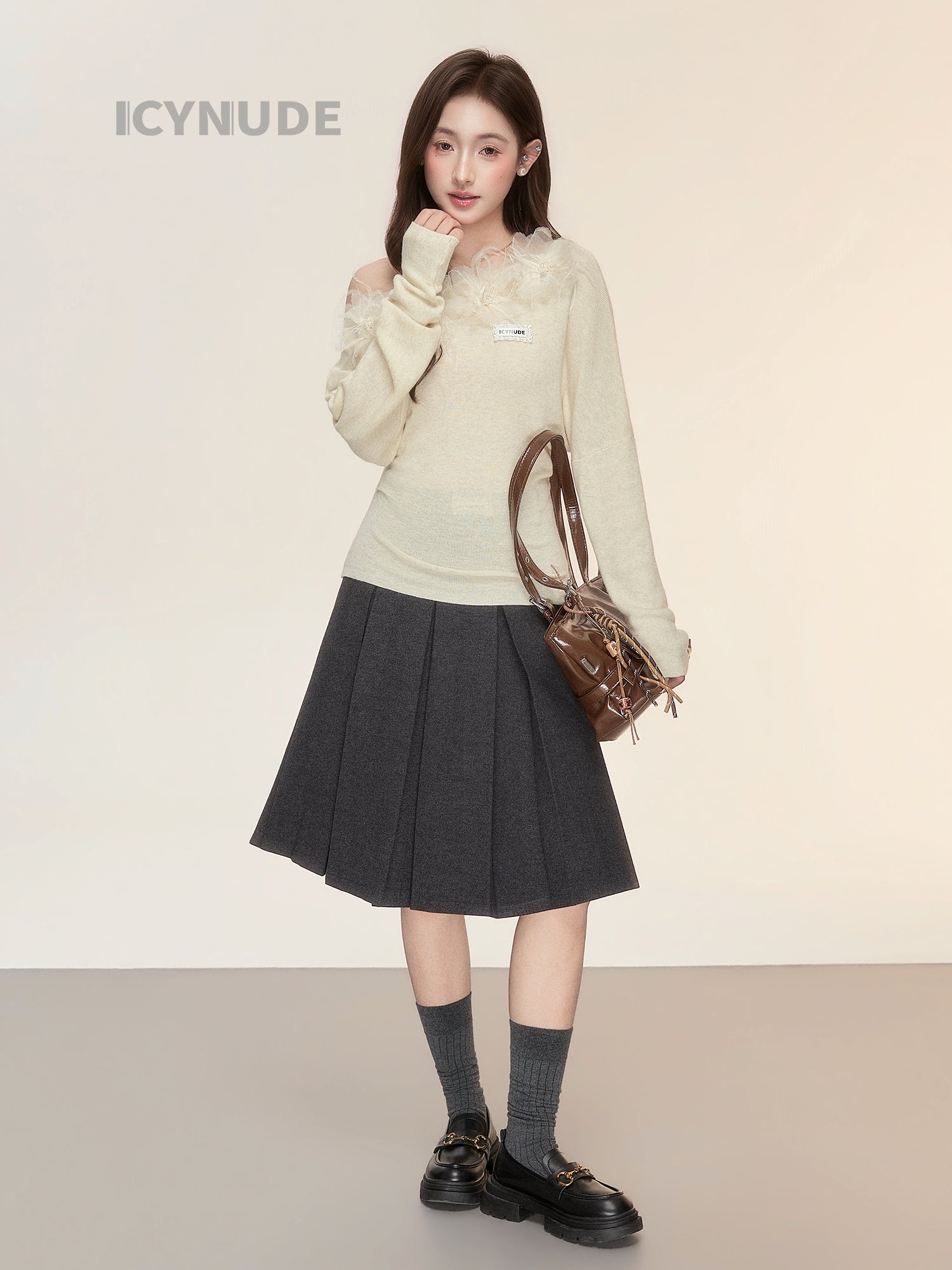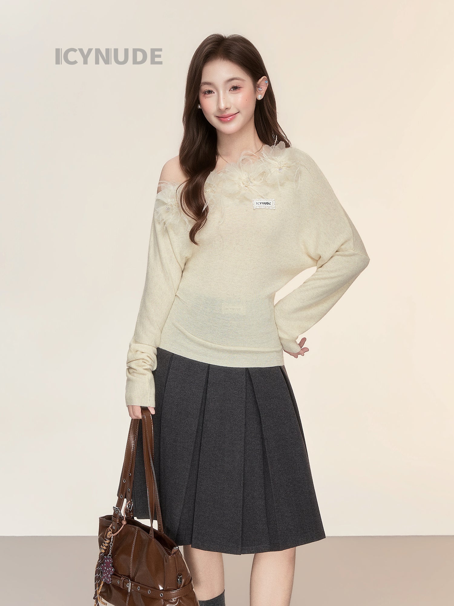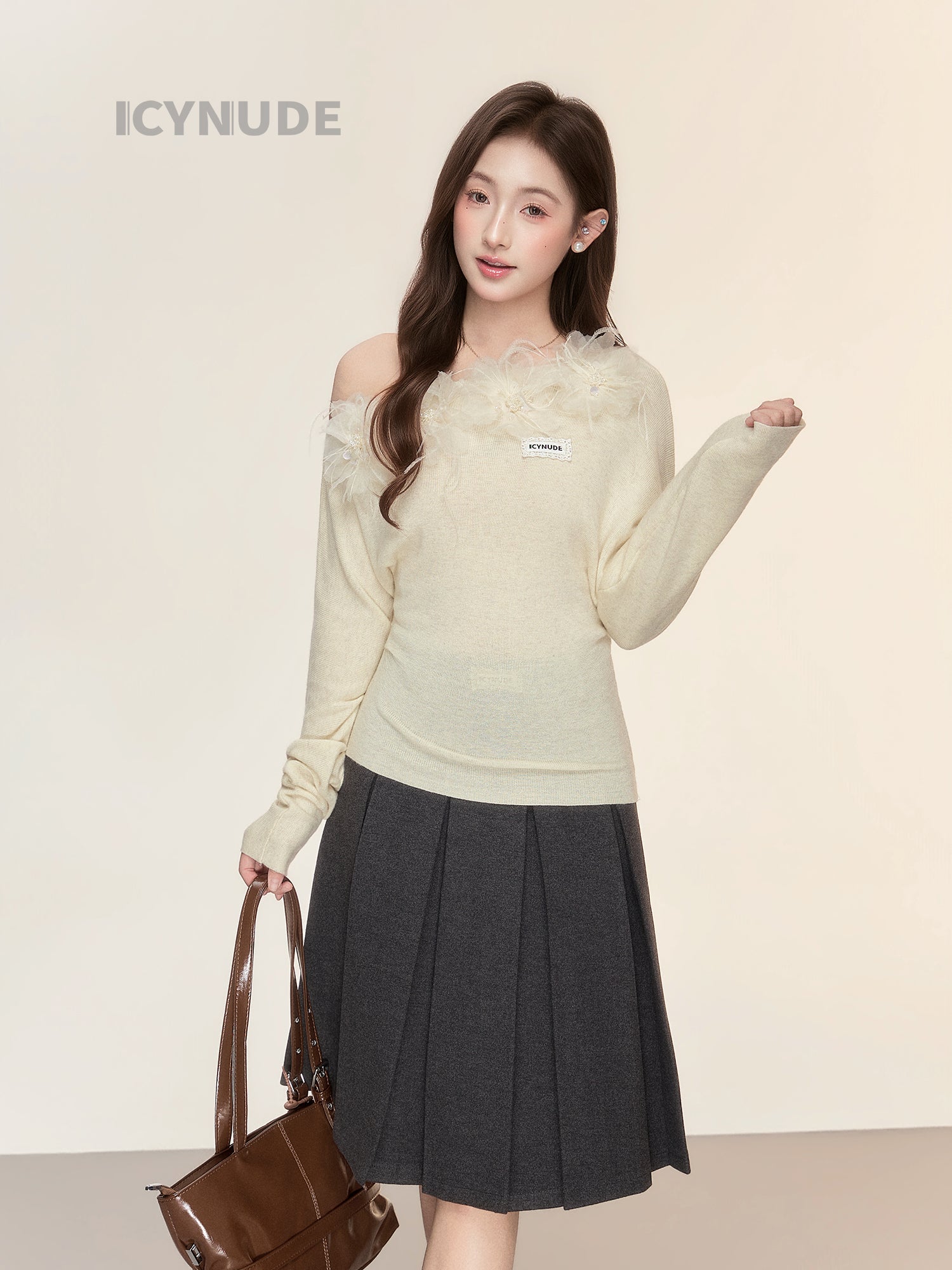 ICY NUDE Floral Off-Shoulder Knit Top