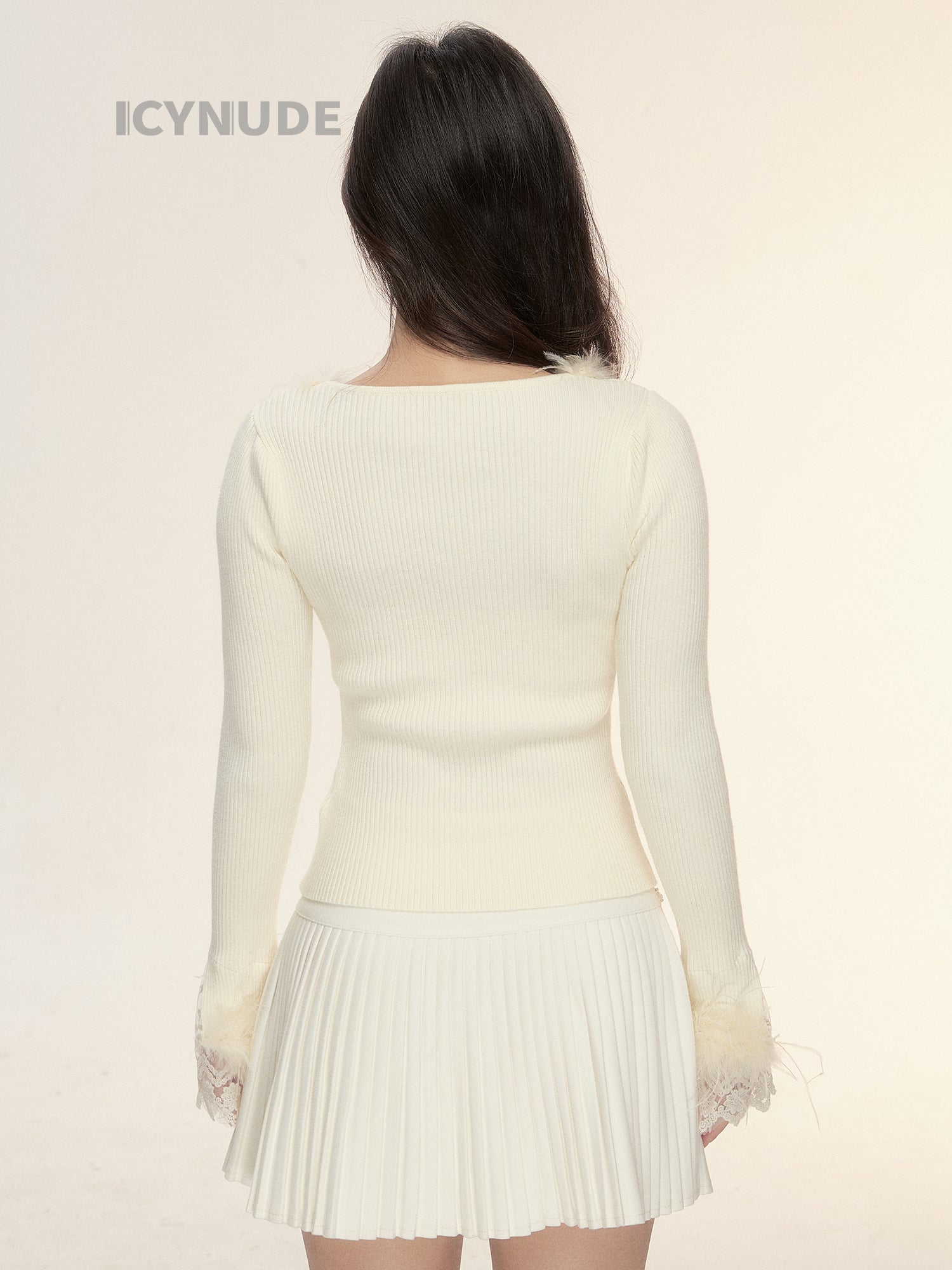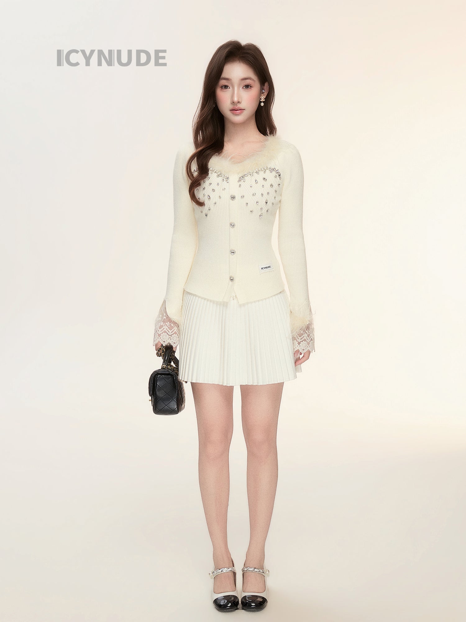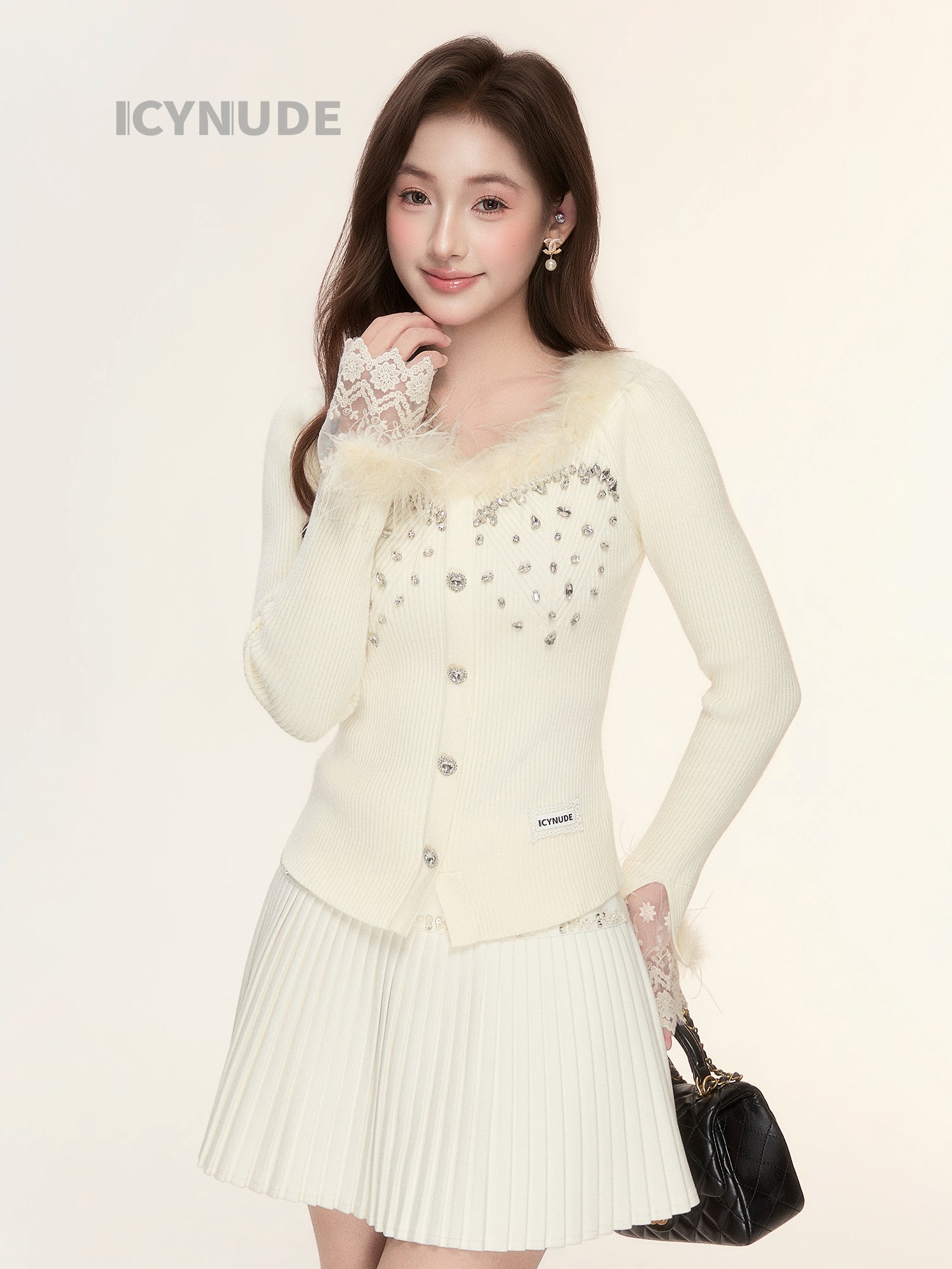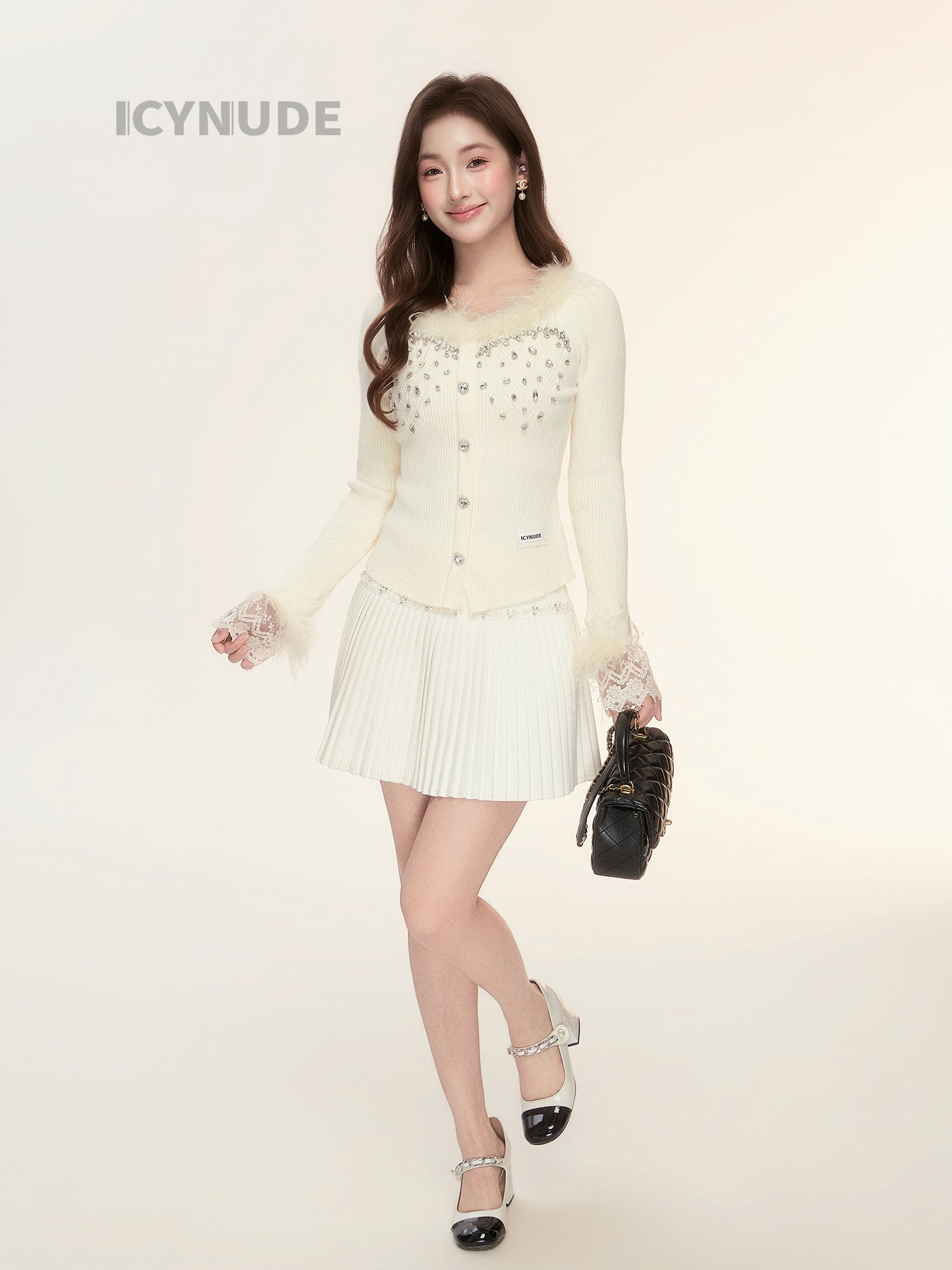 ICY NUDE Fur Collar Crystal-Embellished Knit Top