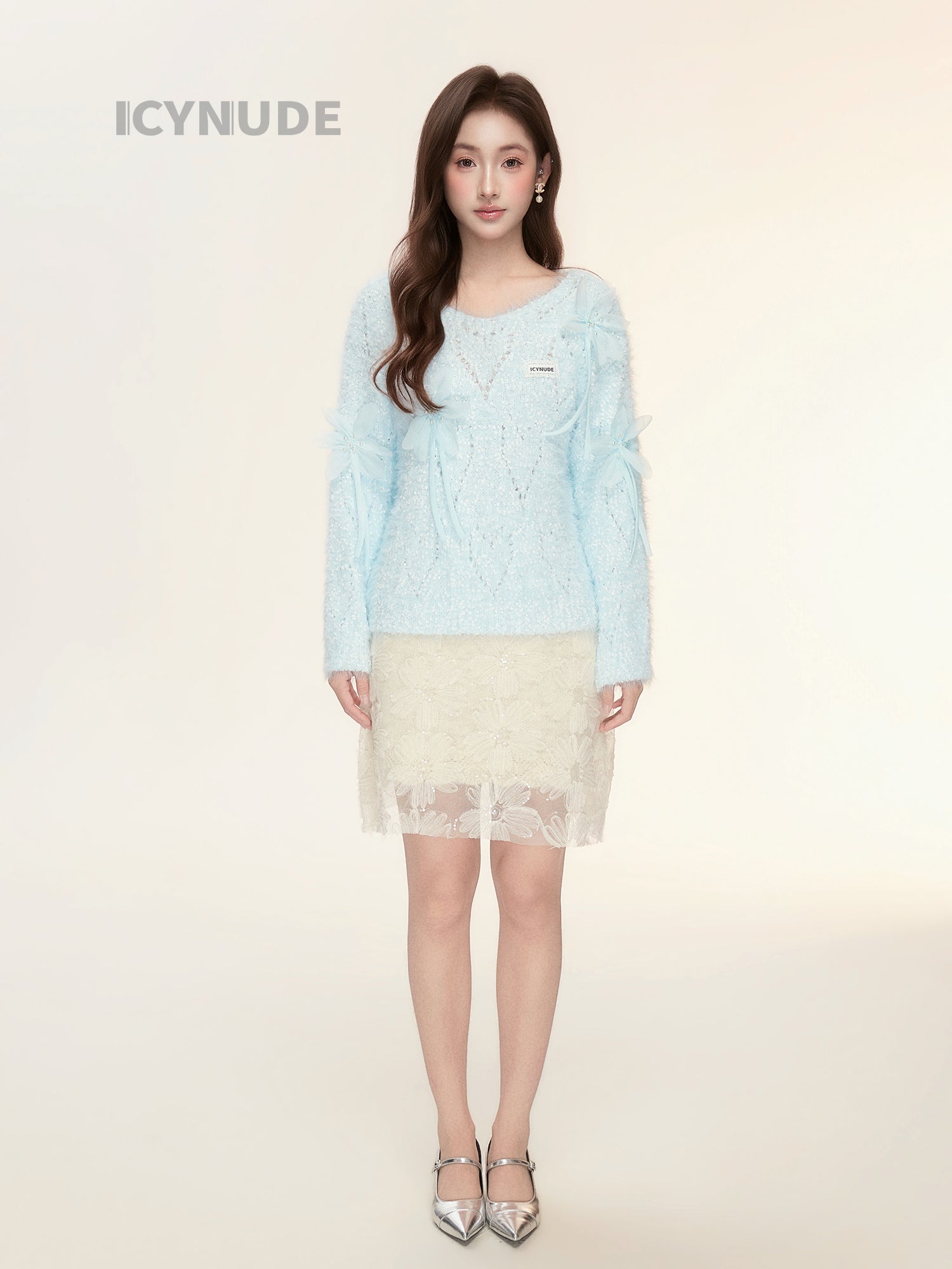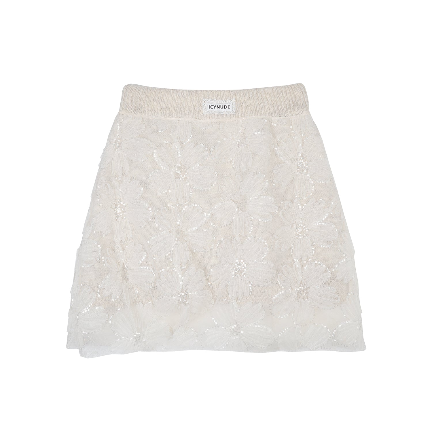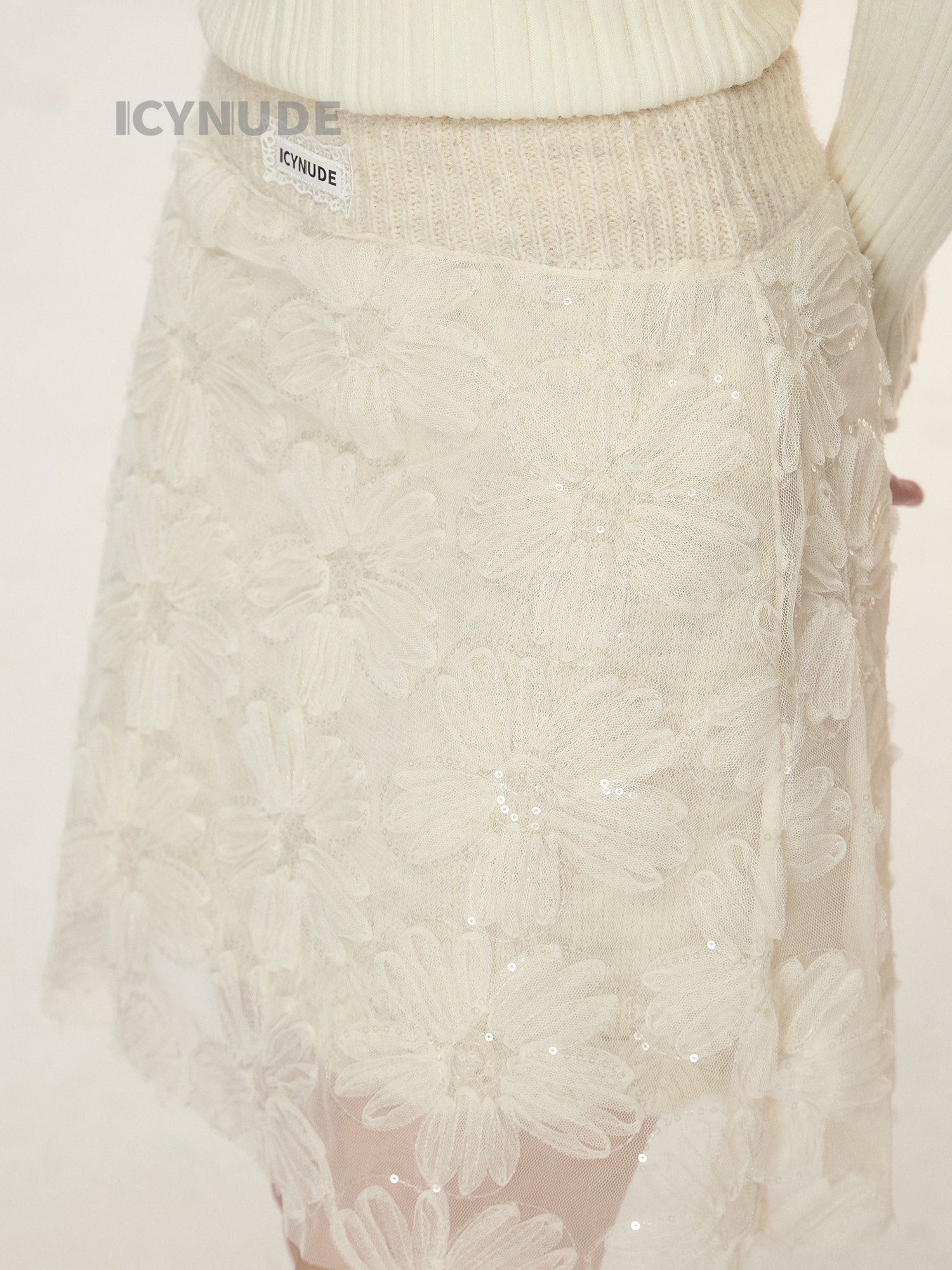 ICY NUDE Lace Mesh Panel Knit Skirt