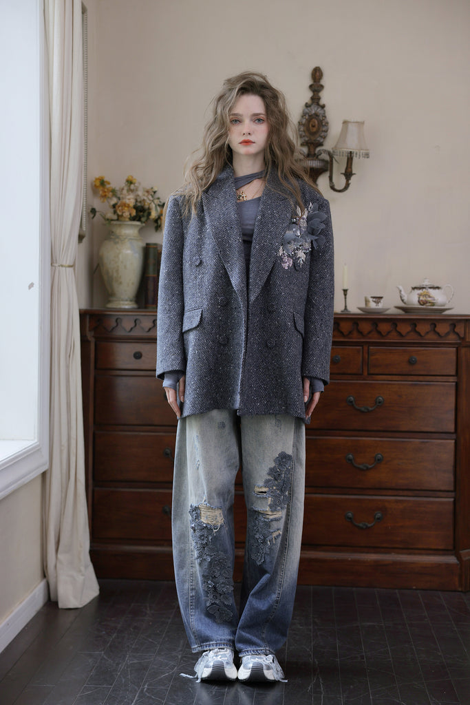 AKEMO Sequined Casual Wool Blazer (GREY)