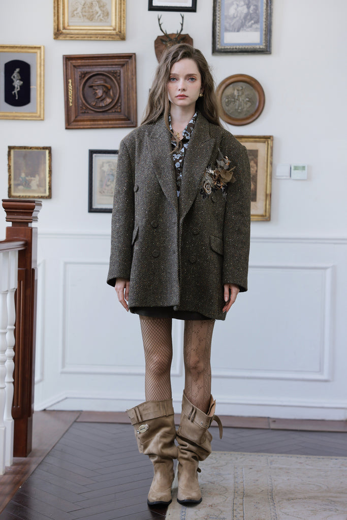 AKEMO Sequined Casual Wool Blazer (BROWN)