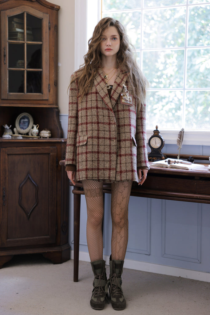 AKEMO Preppy Plaid Suit Set Blazer + Skirt