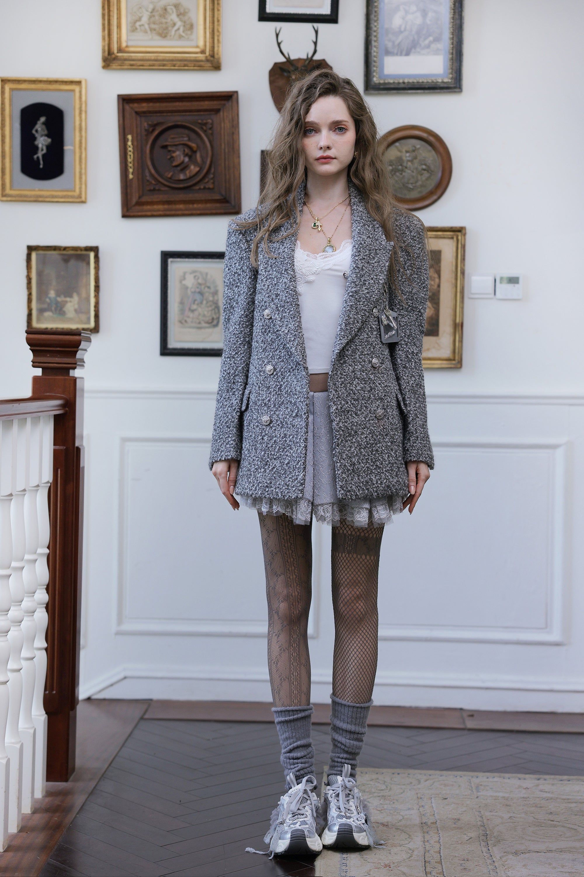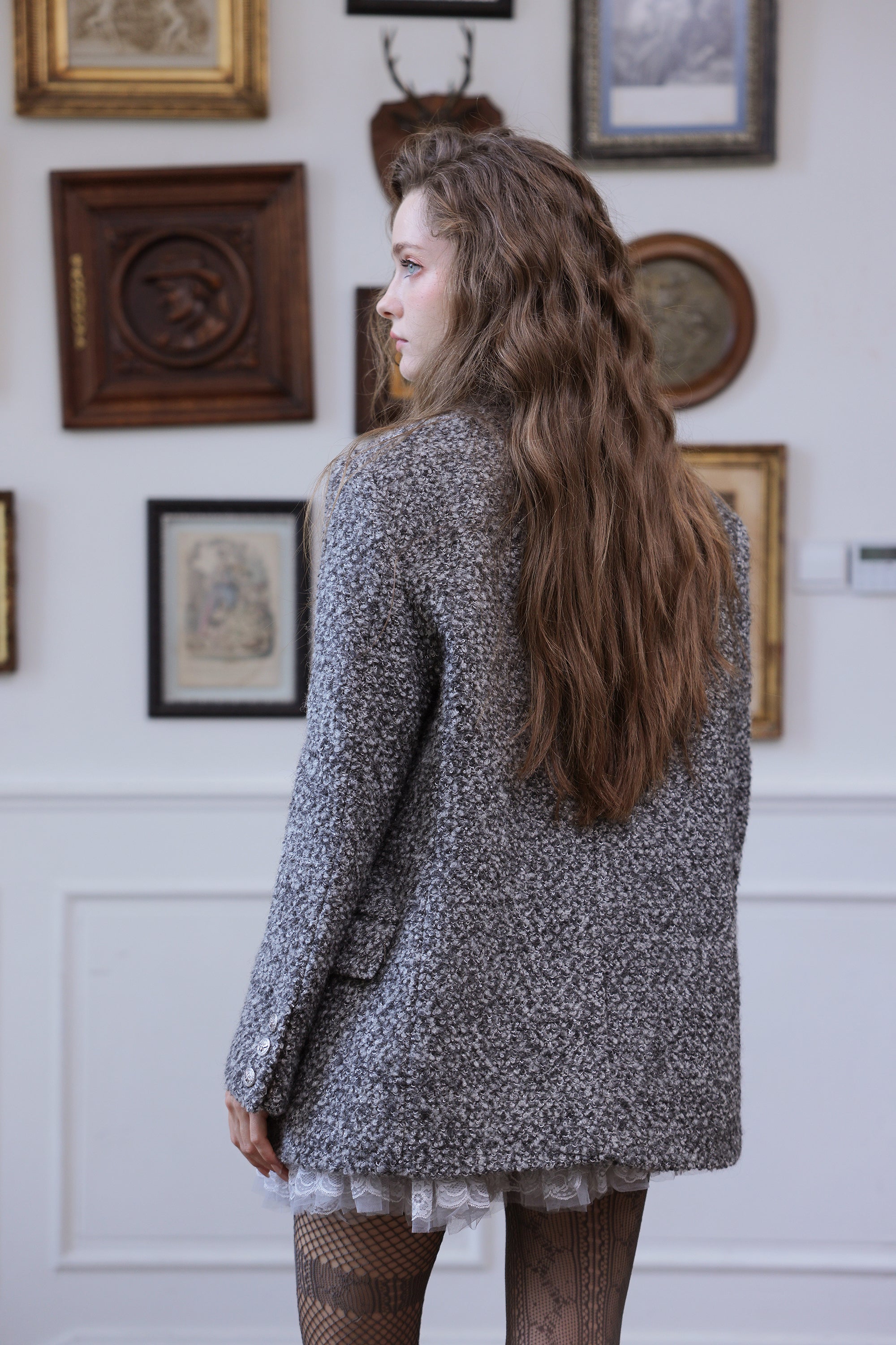 AKEMO Retro Pearl Wool Blazer (GREY)