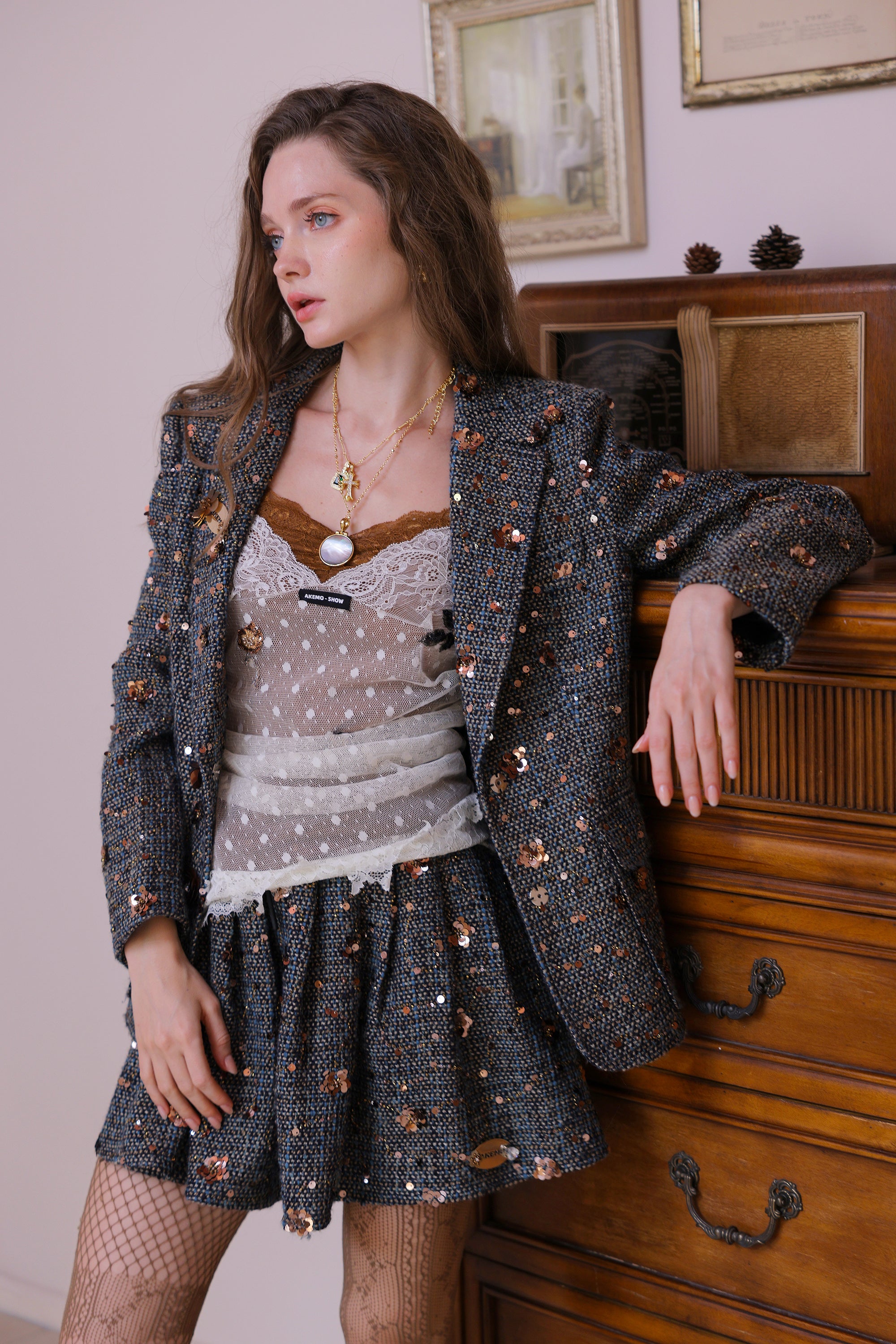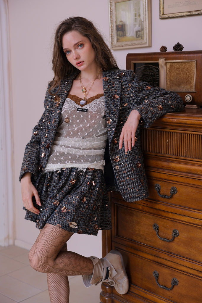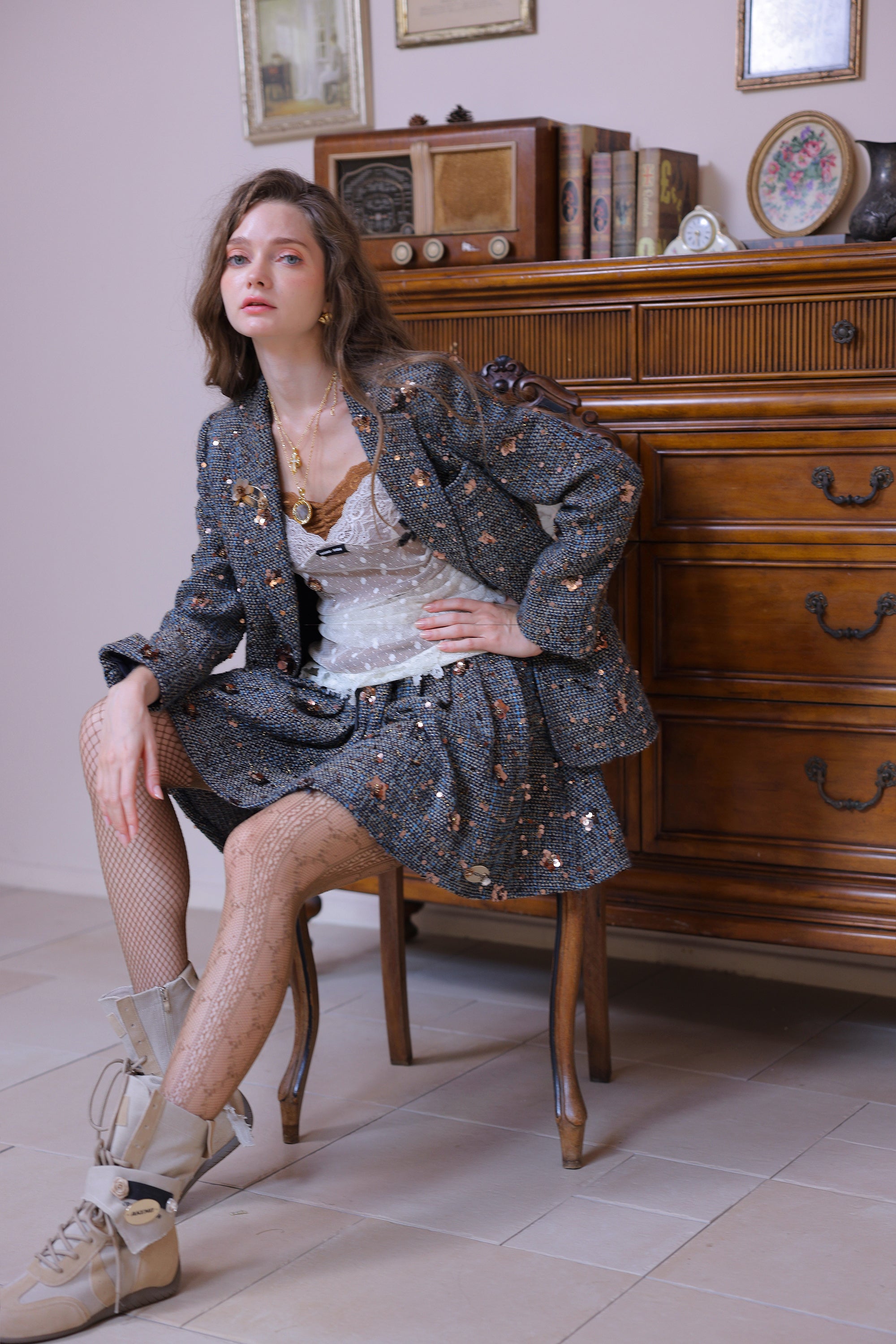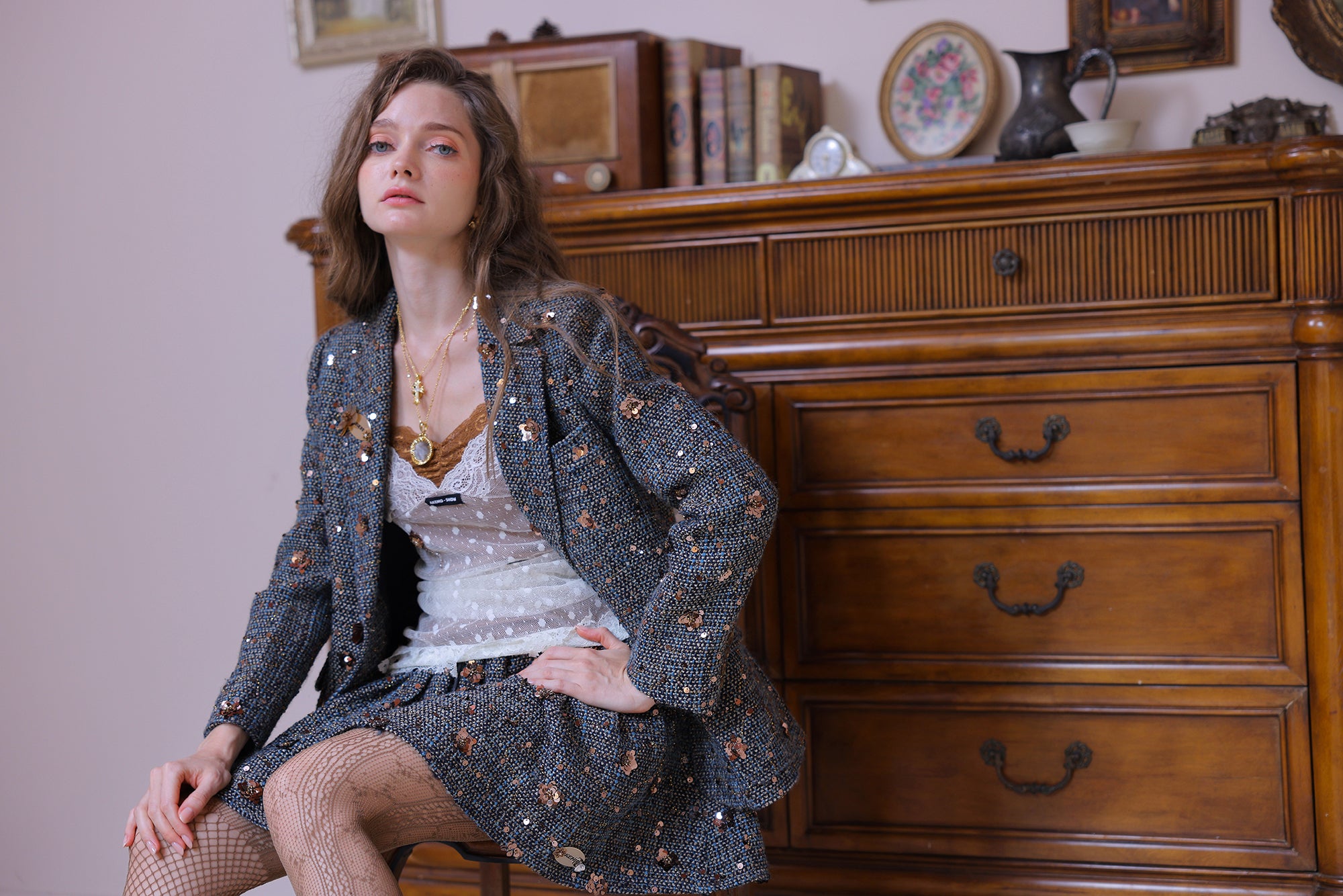 AKEMO Retro Slim-fit Suit Set Blazer + Skirt (GREY)