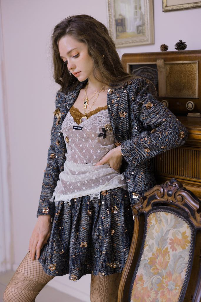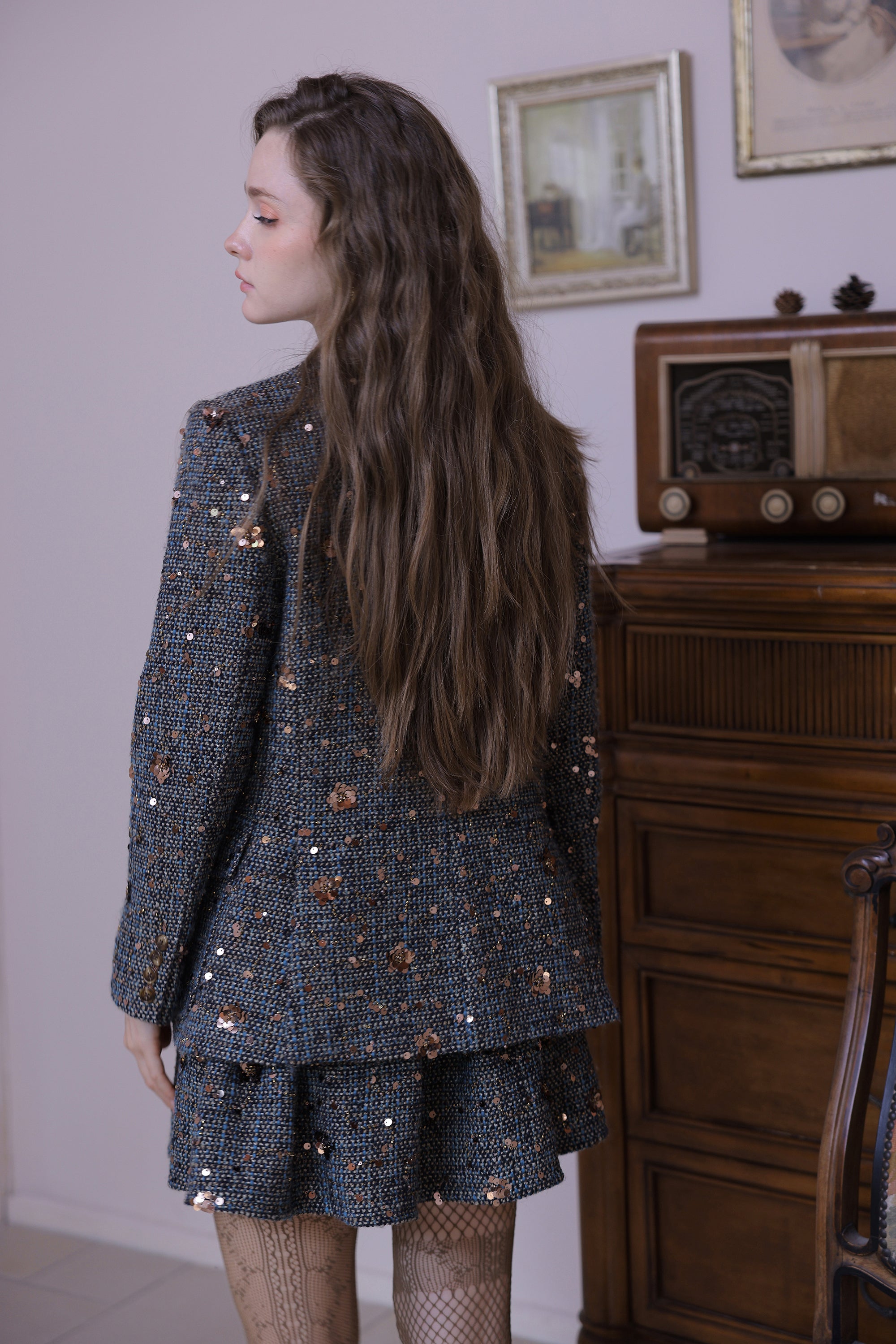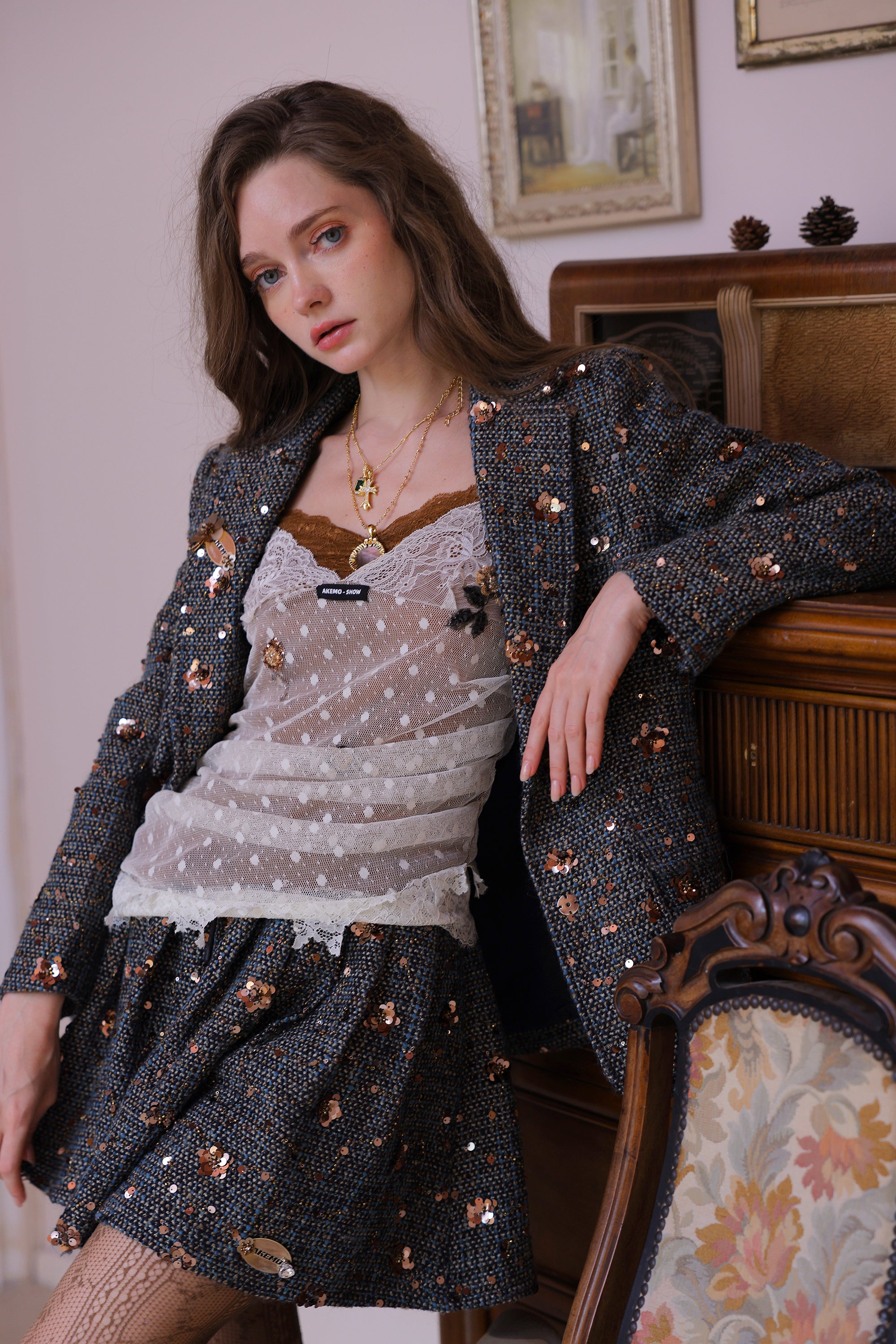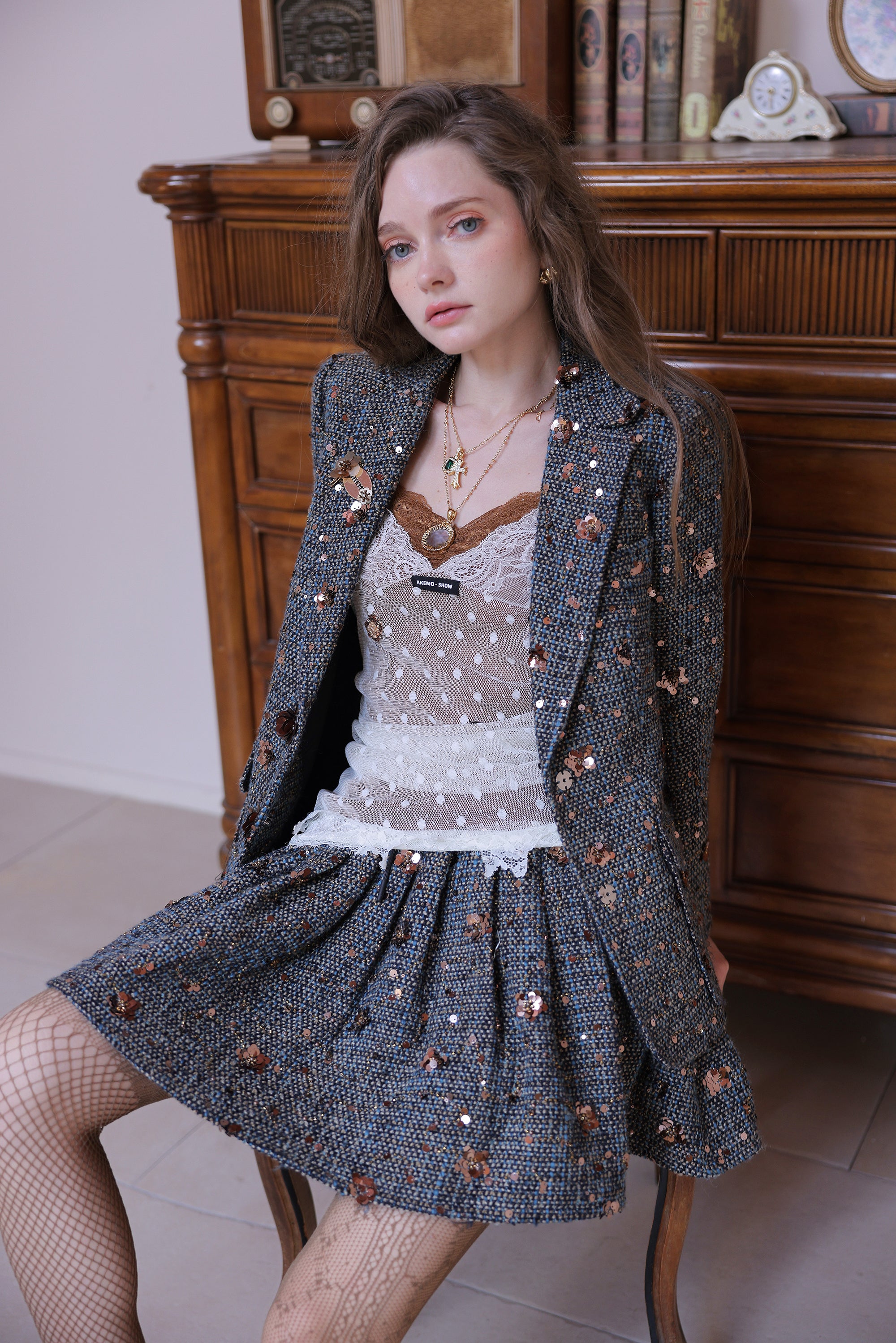 AKEMO Retro Slim-fit Suit Set Blazer + Skirt (GREY)