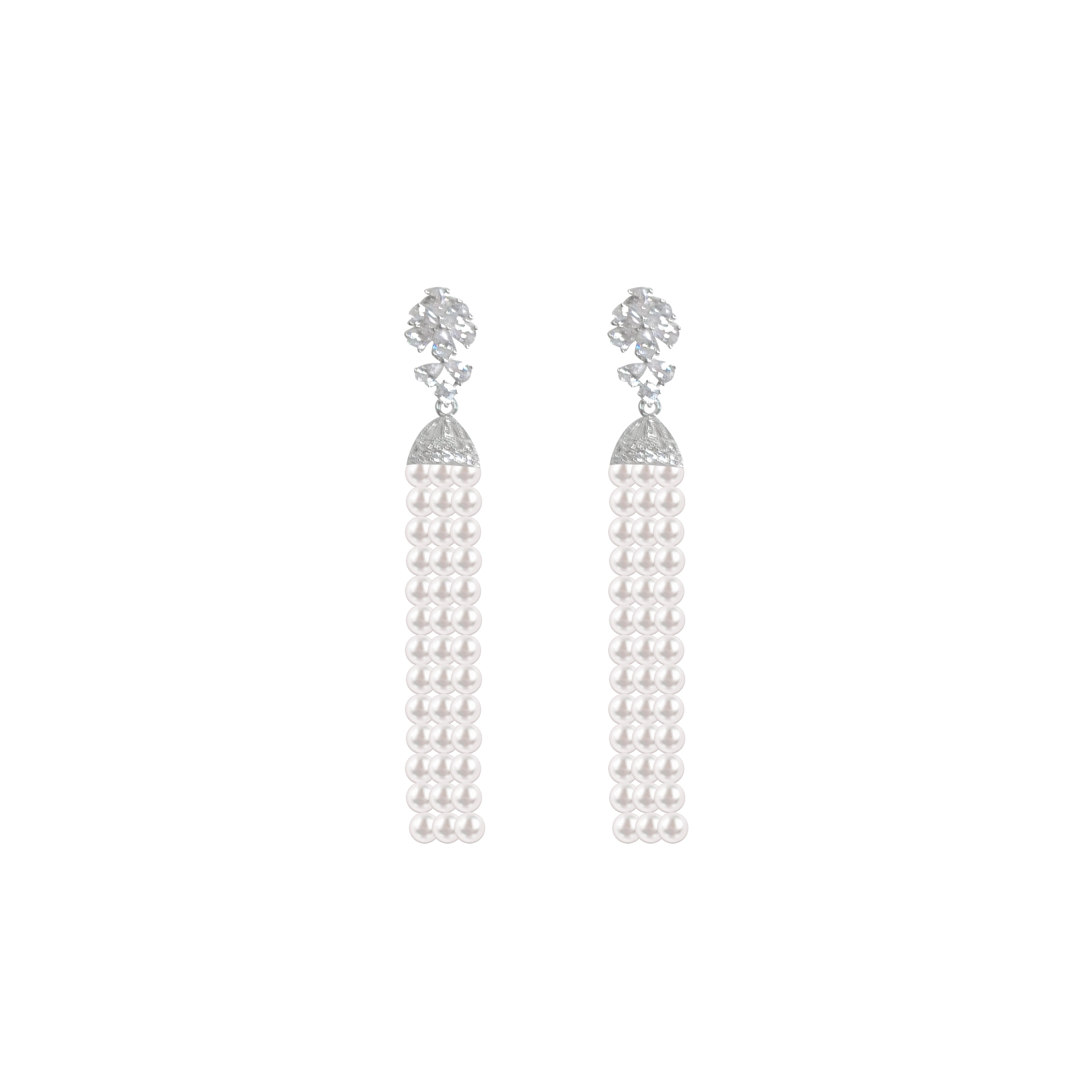 MIMI PLANGE “Moon Aria” Crystal Waterfall Tassel Pearl Earrings