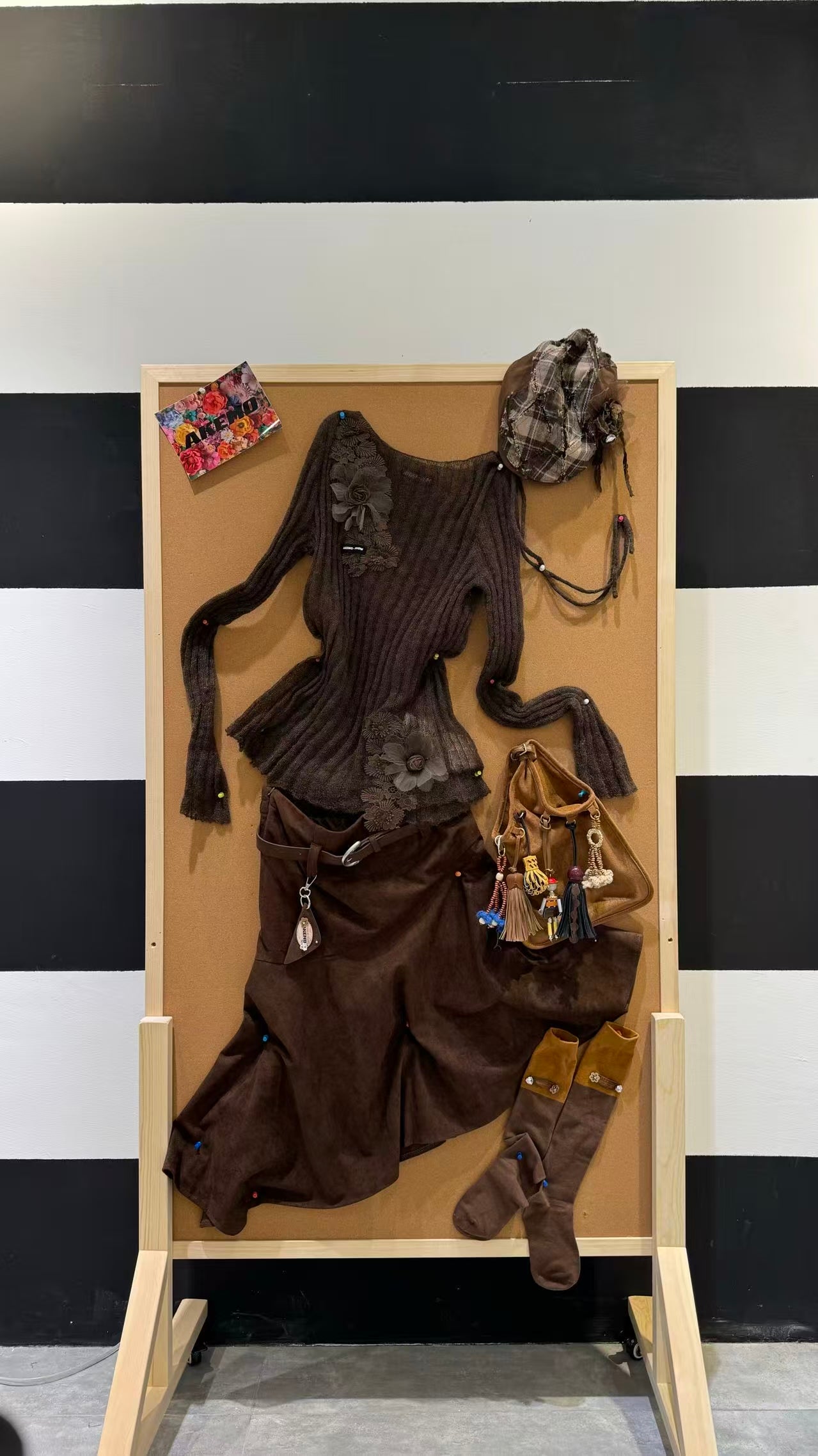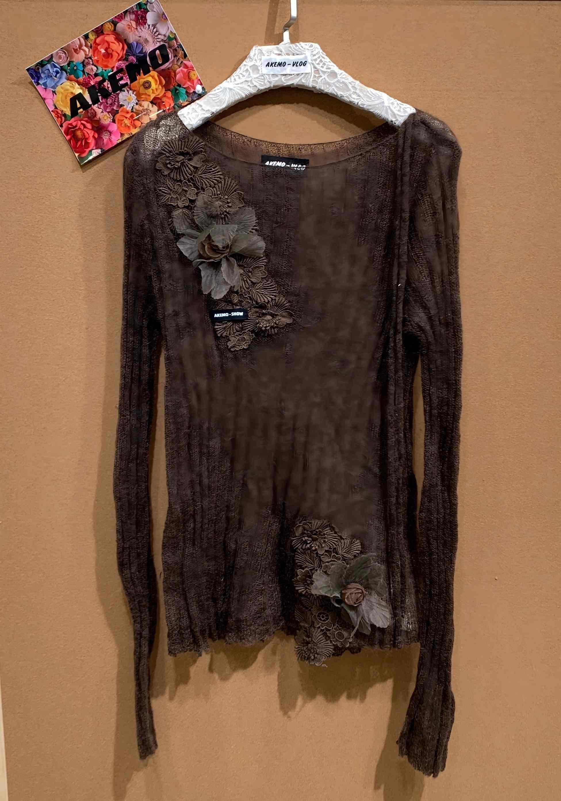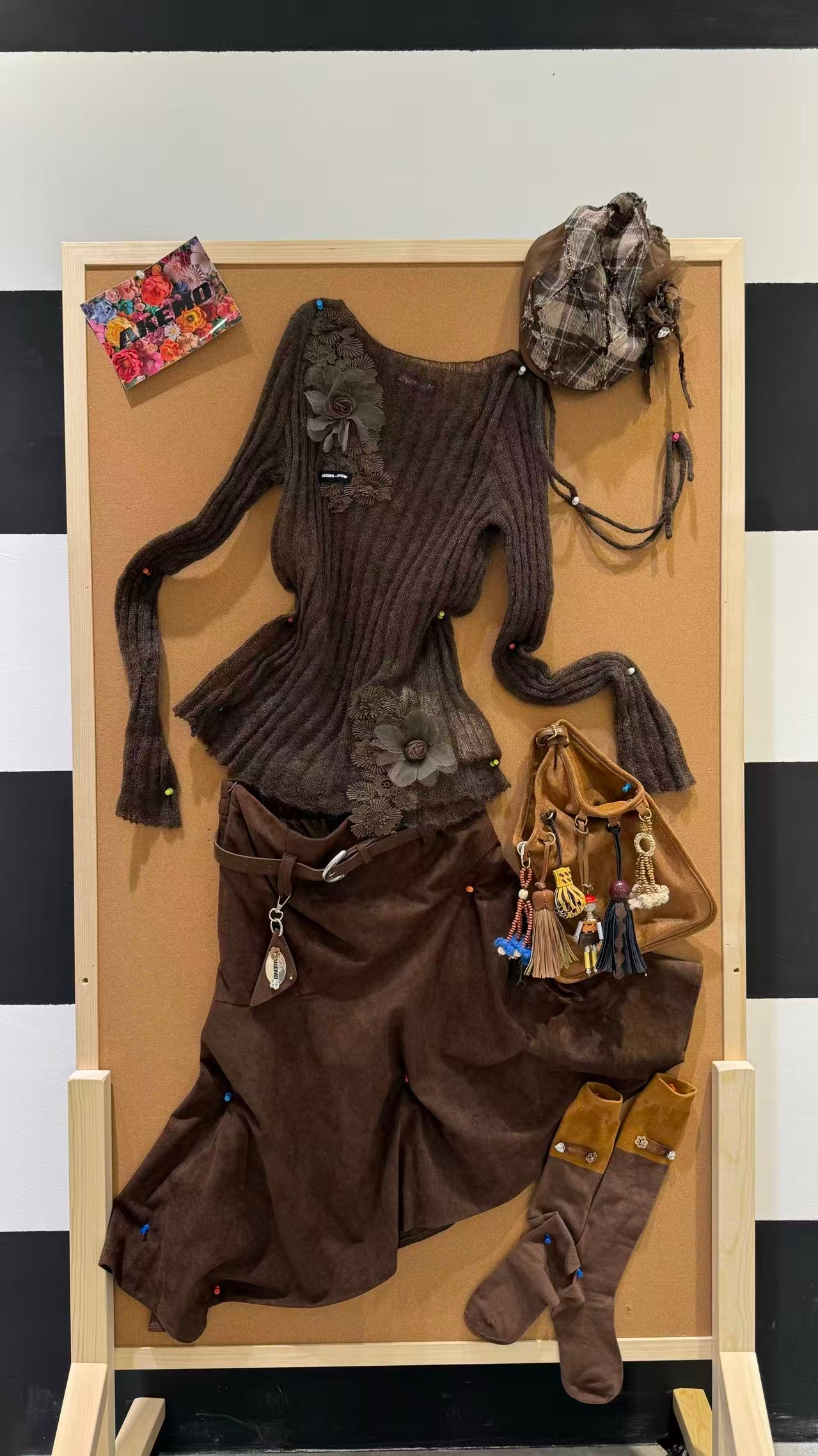 AKEMO 3D Feather Floral Sweater(BROWN)+ Suede Skirt