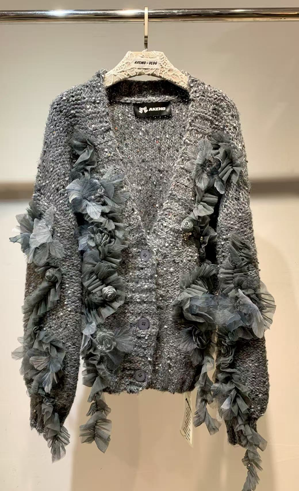 AKEMO Ethereal Floral Wool Cardigan (Purple) and (Grey)