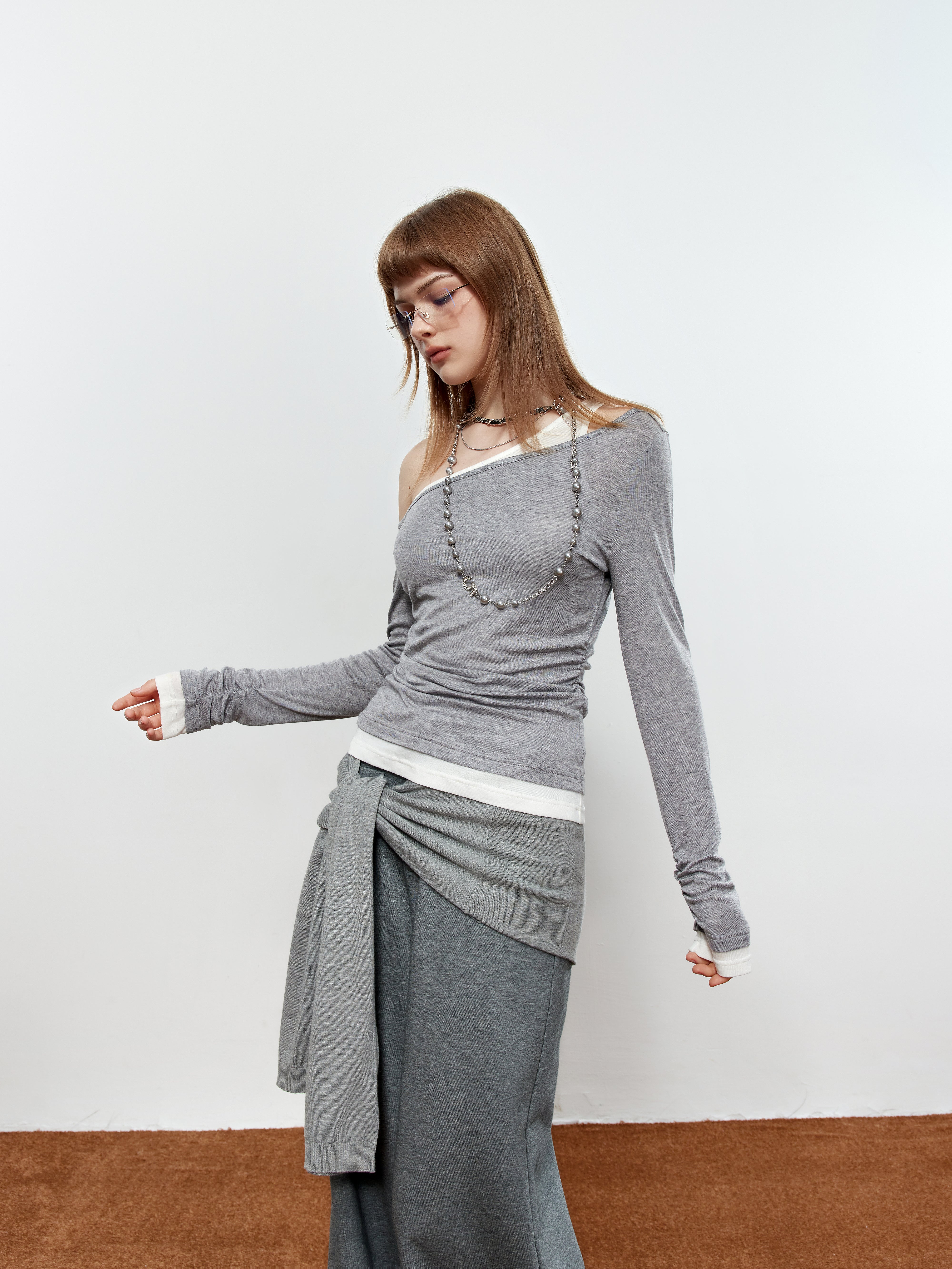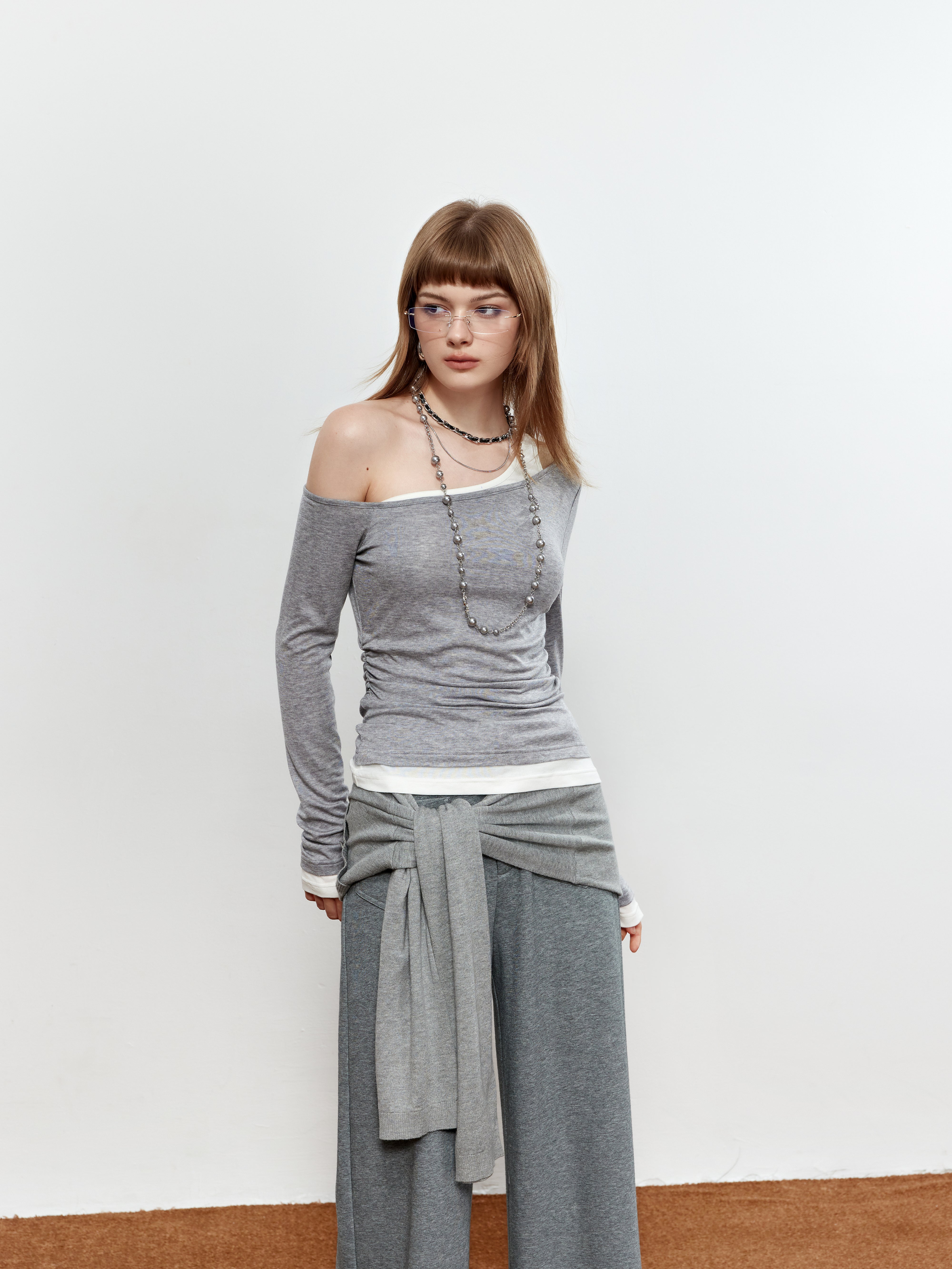 ROCHA ROMA Off-Shoulder Color-Block Knit Top