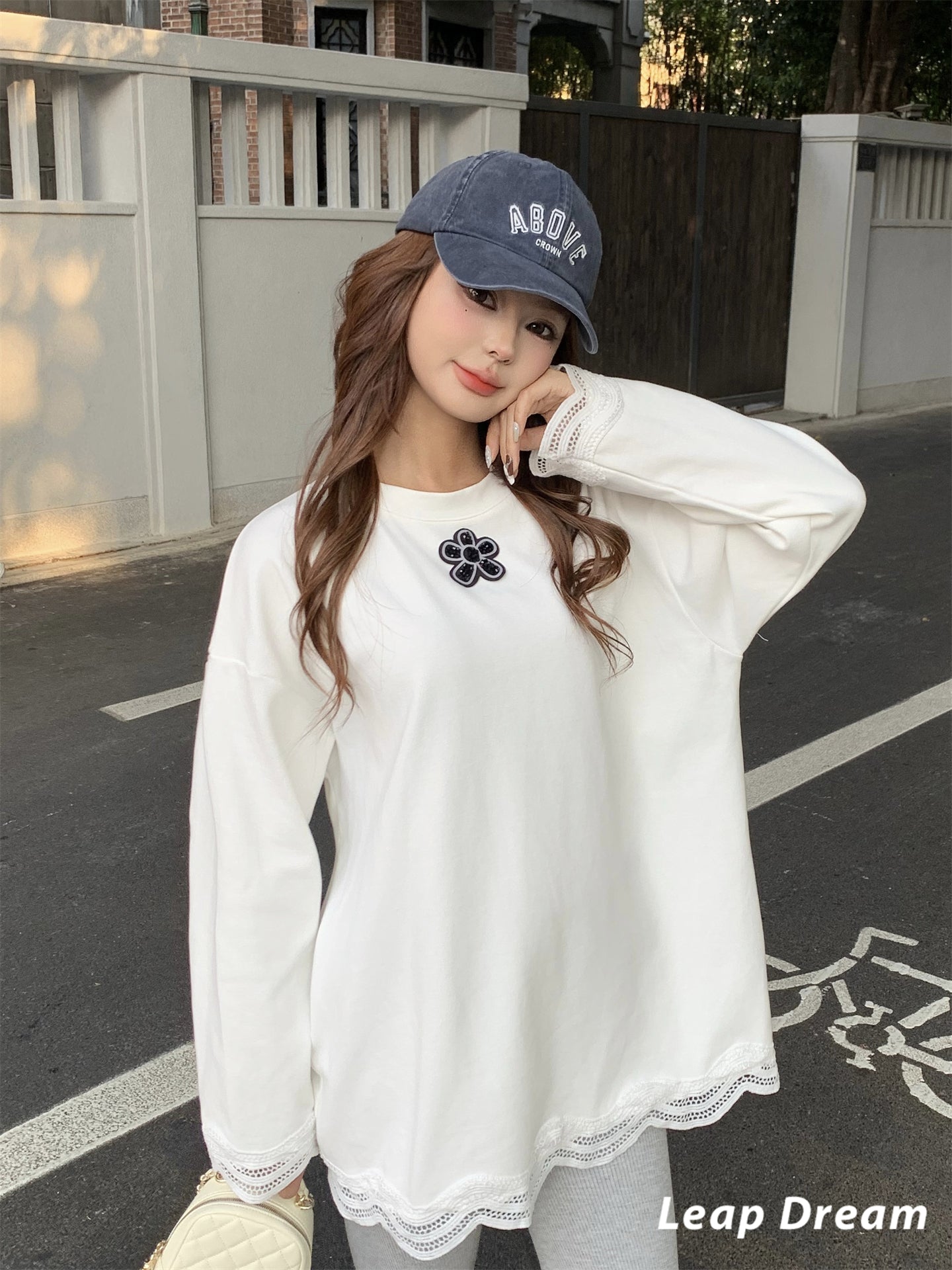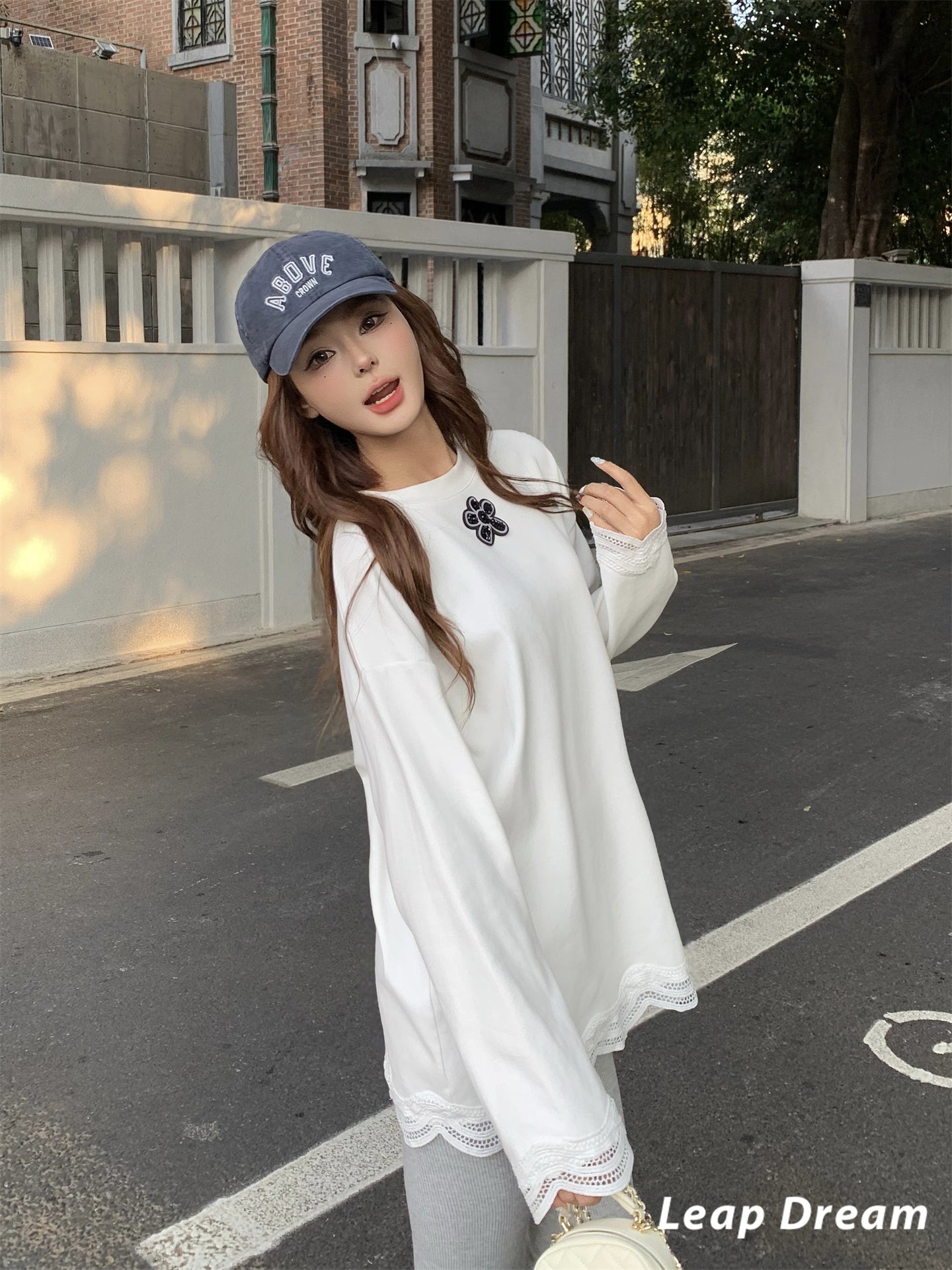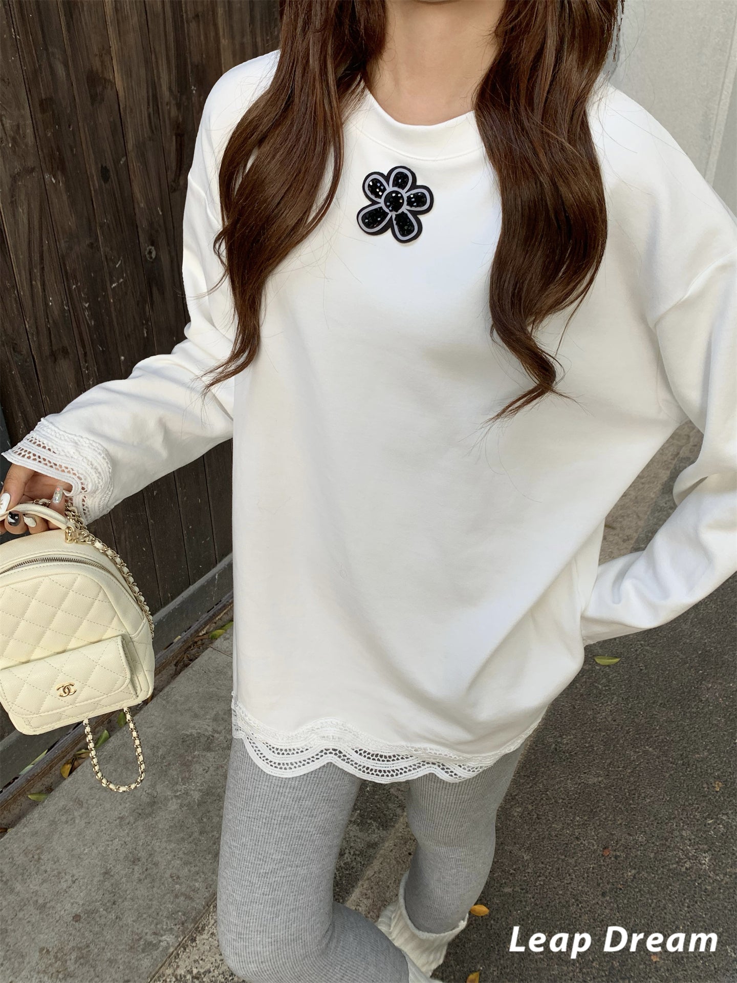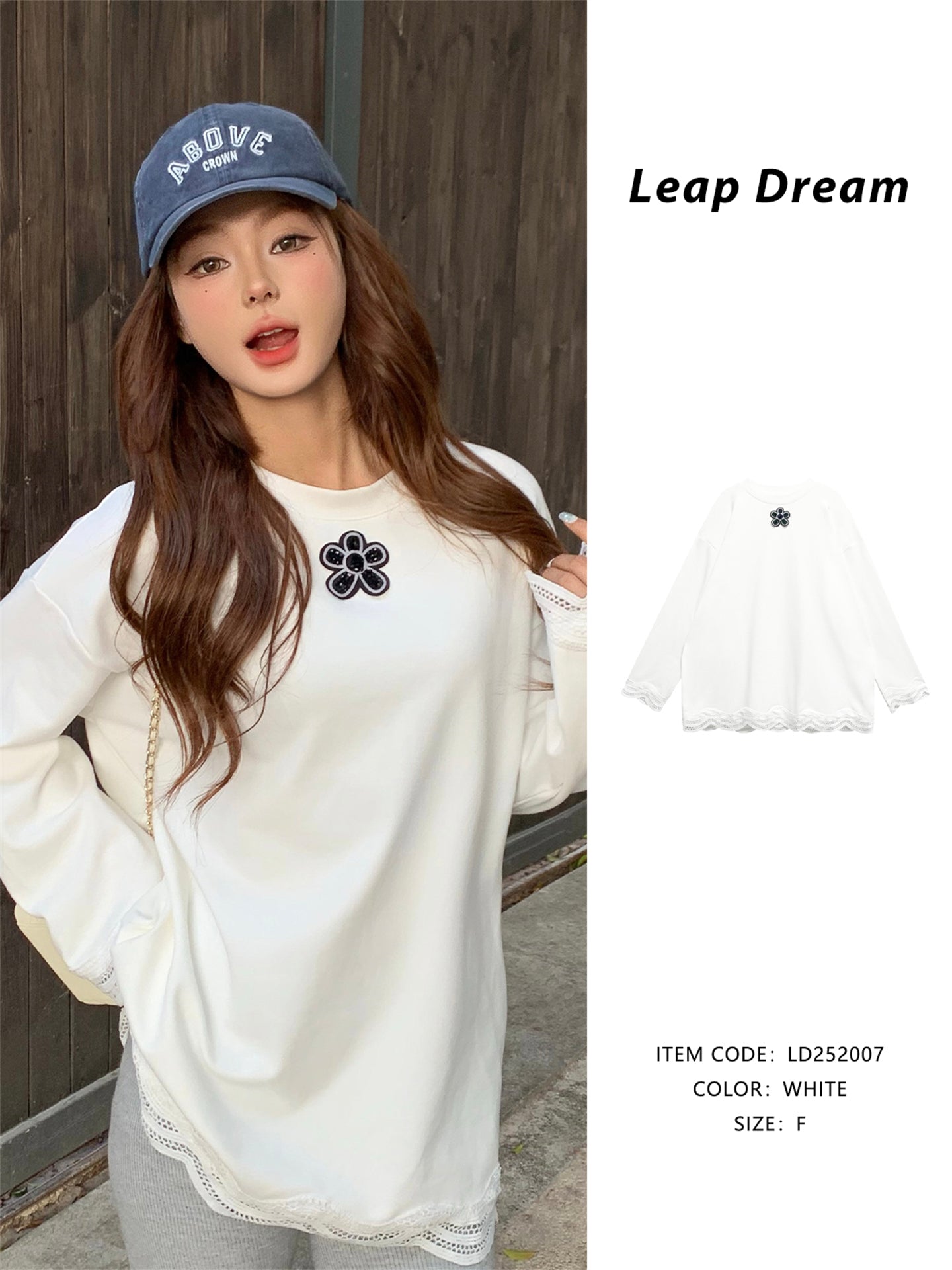 LEAPDREAM Crochet Lace Panel Long-Sleeve Top