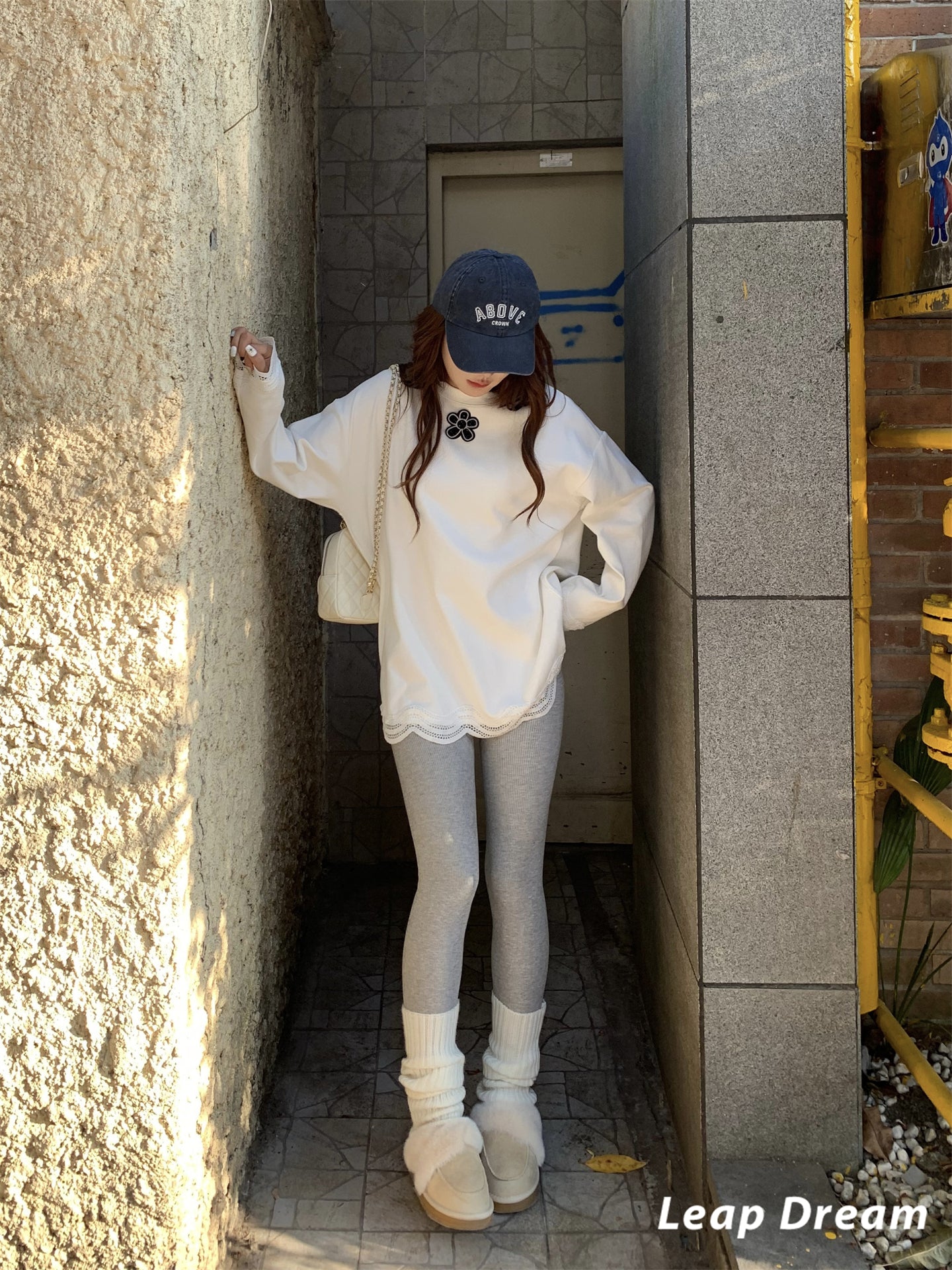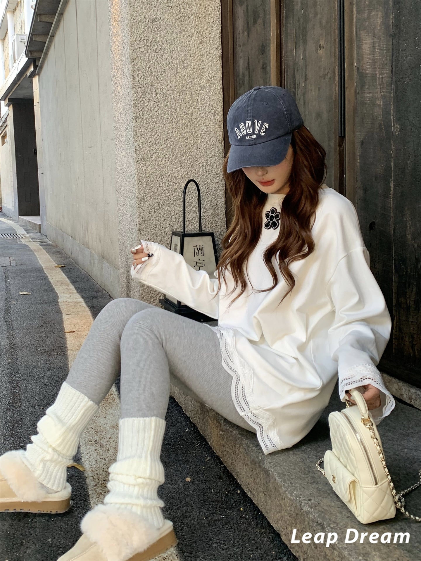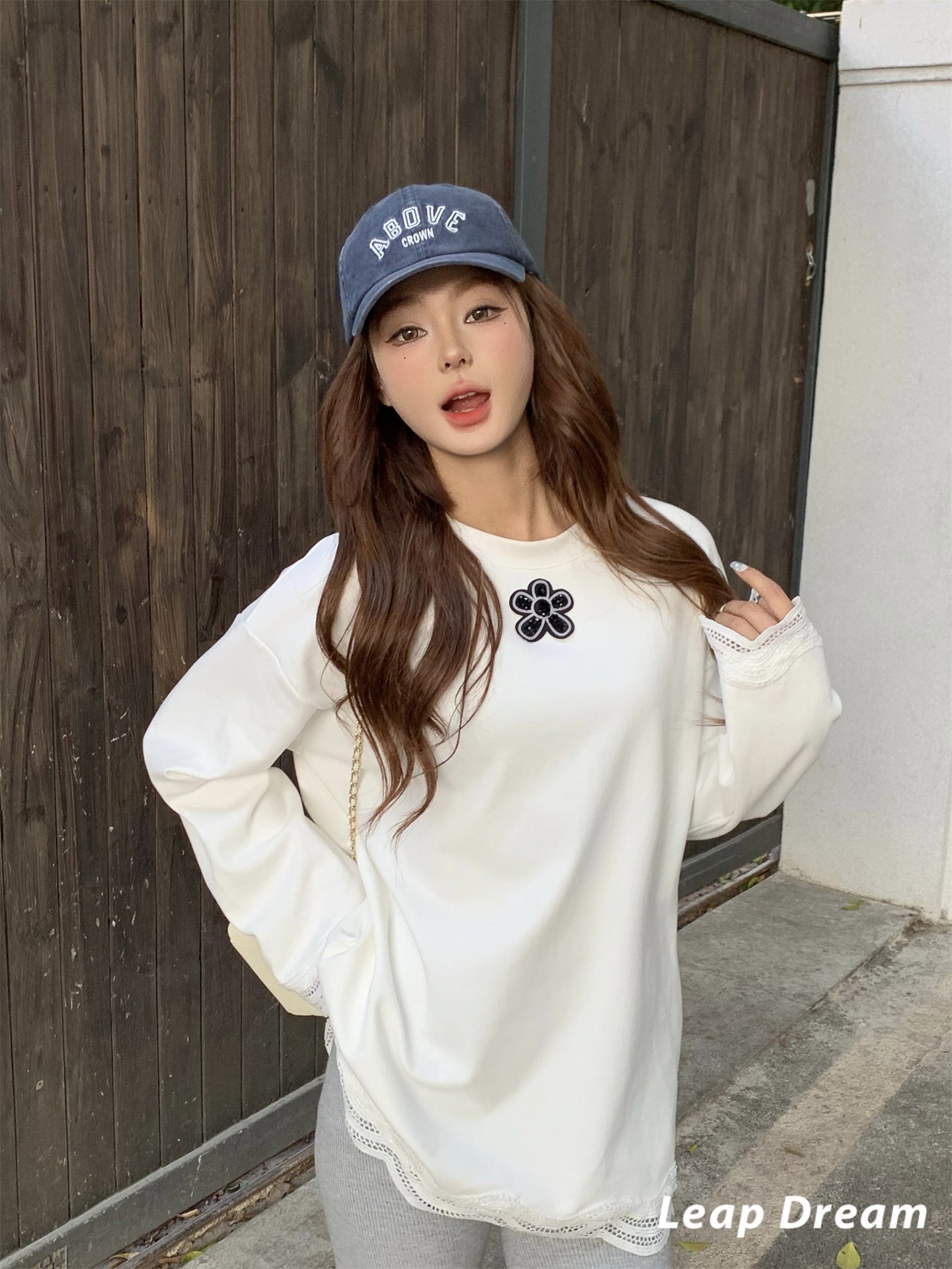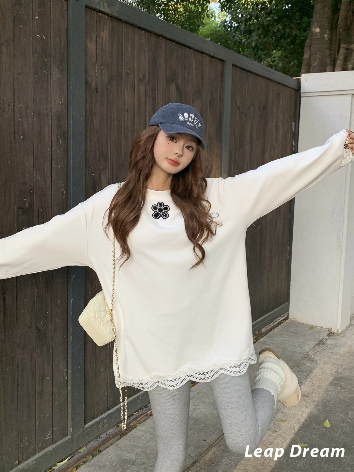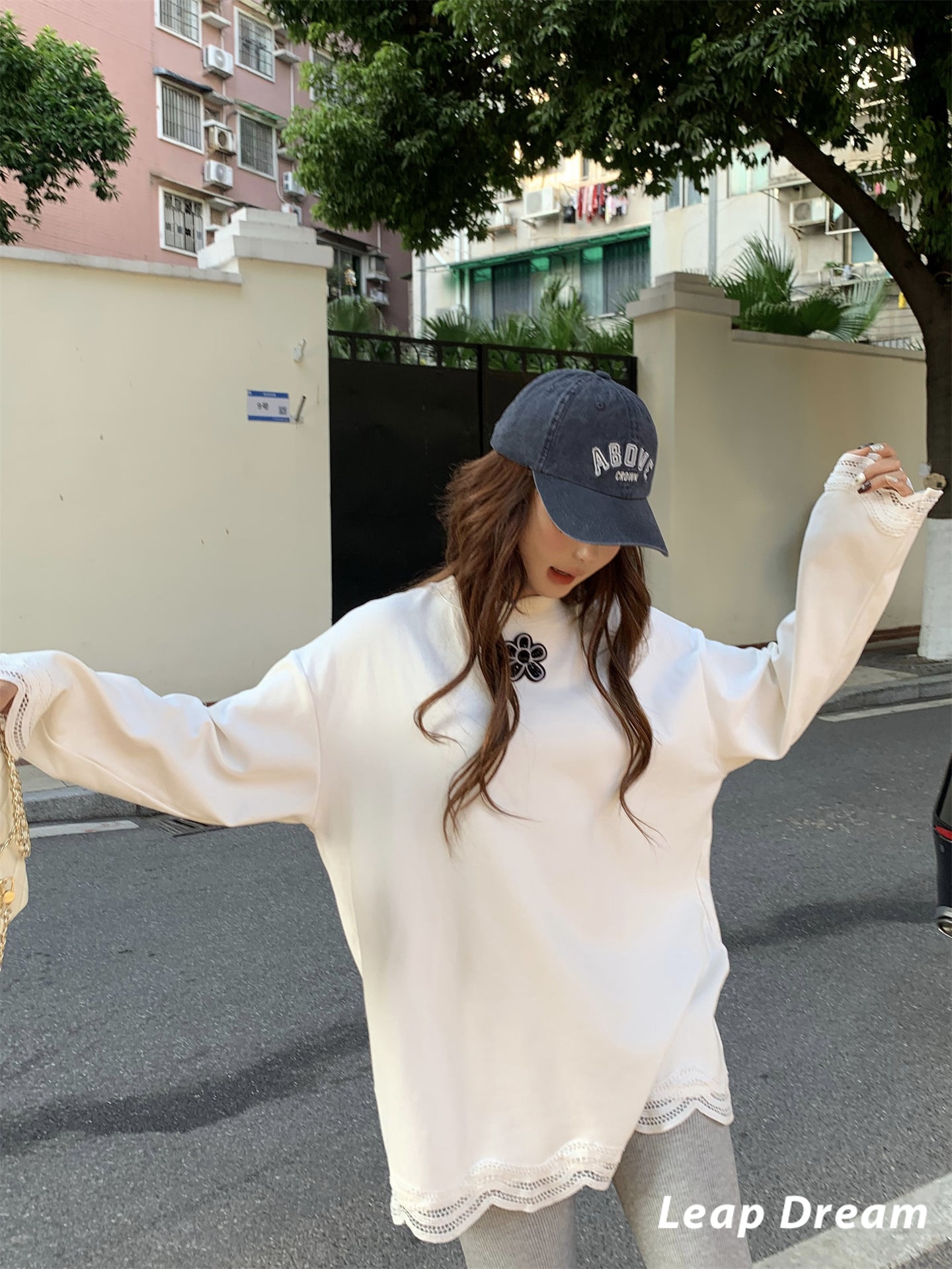 LEAPDREAM Crochet Lace Panel Long-Sleeve Top