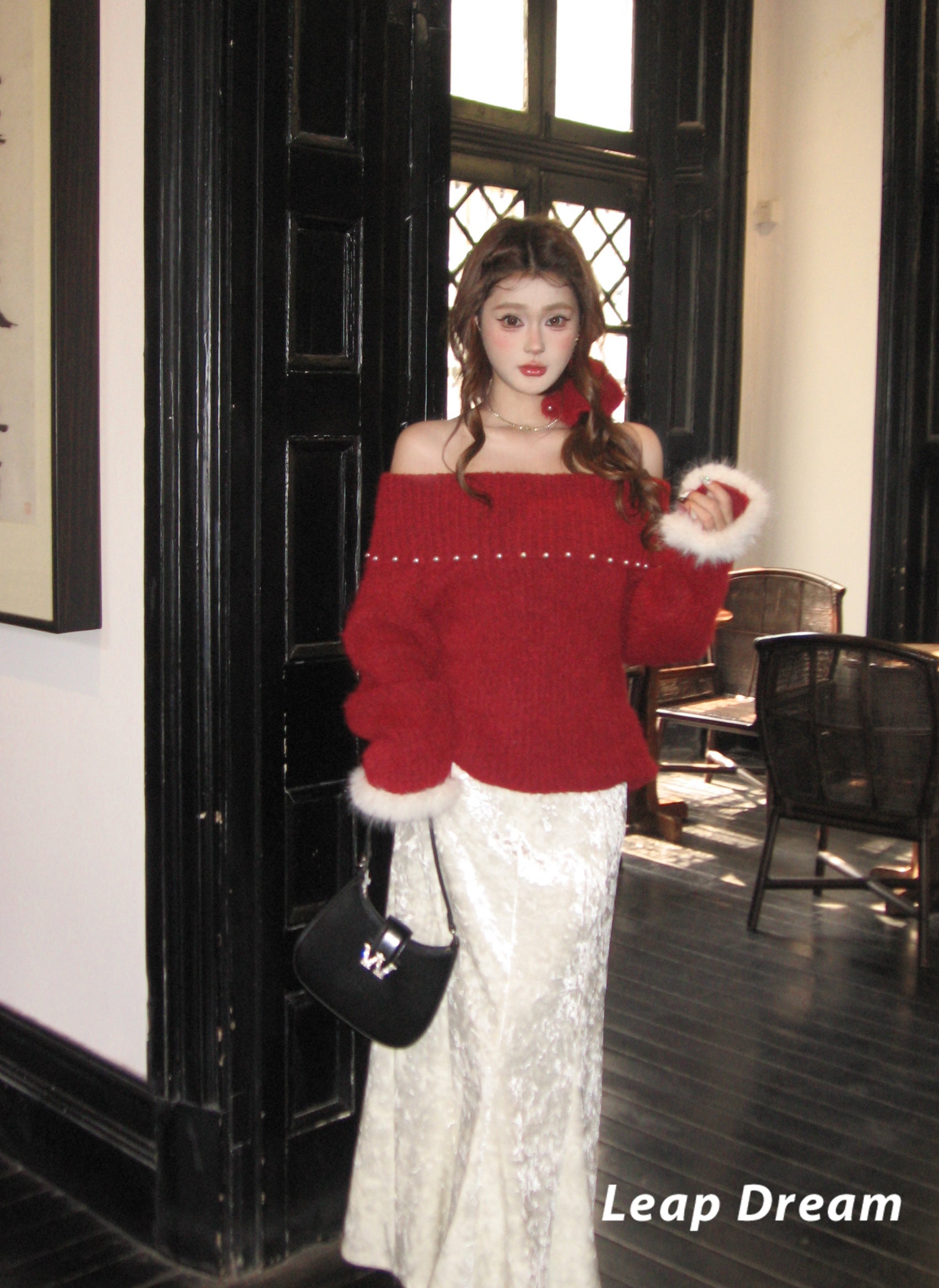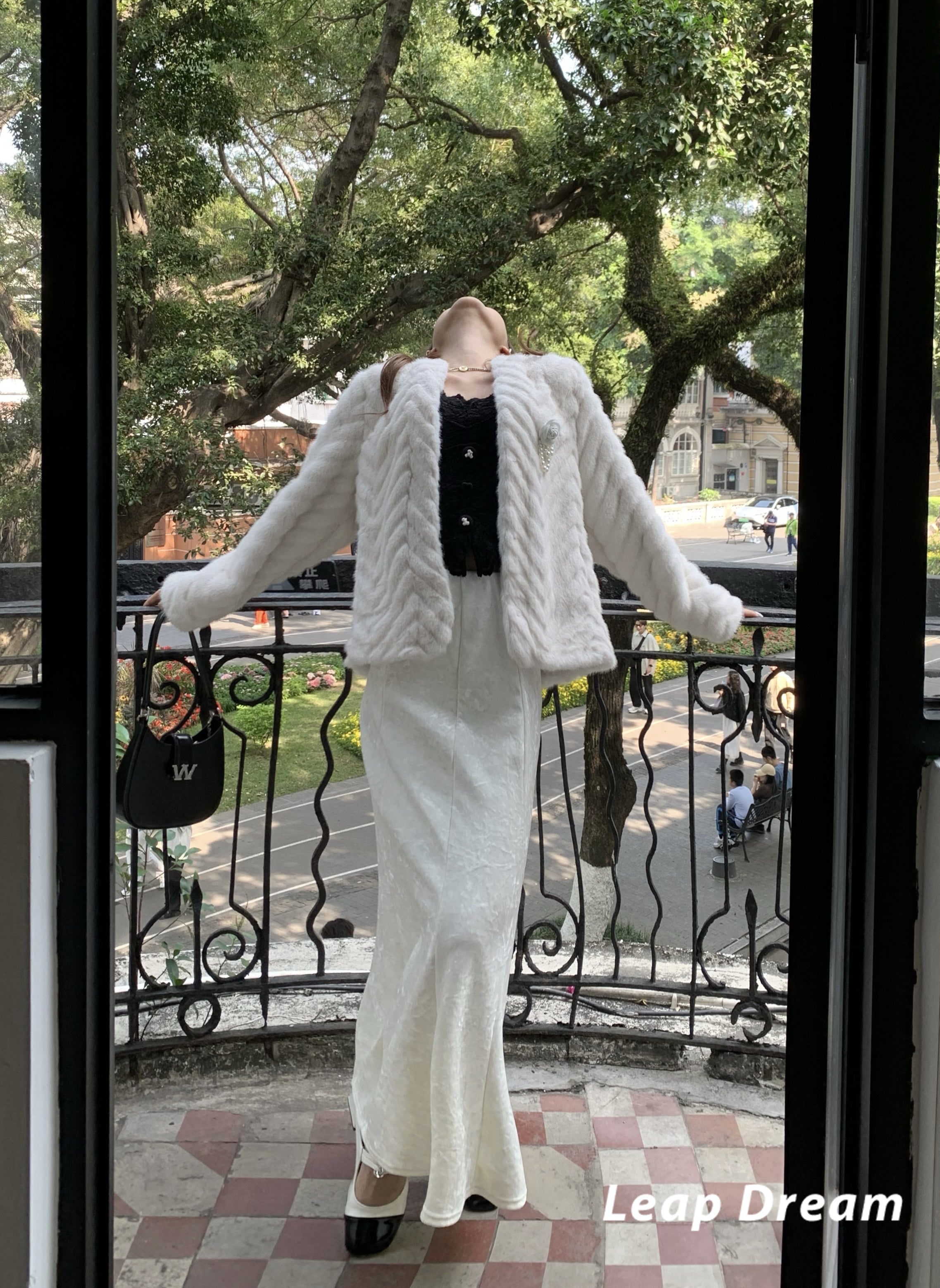 LEAPDREAM Pearlescent Jacquard Velvet Mermaid Skirt