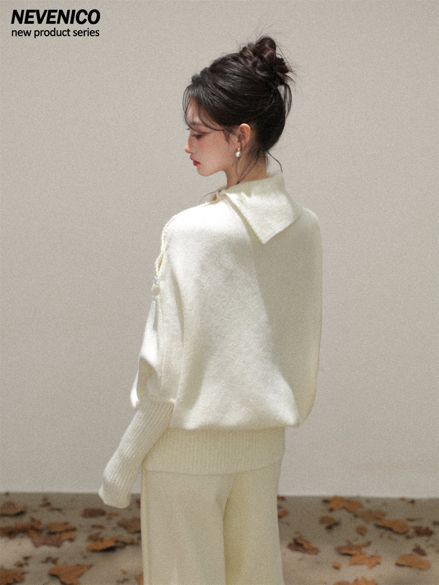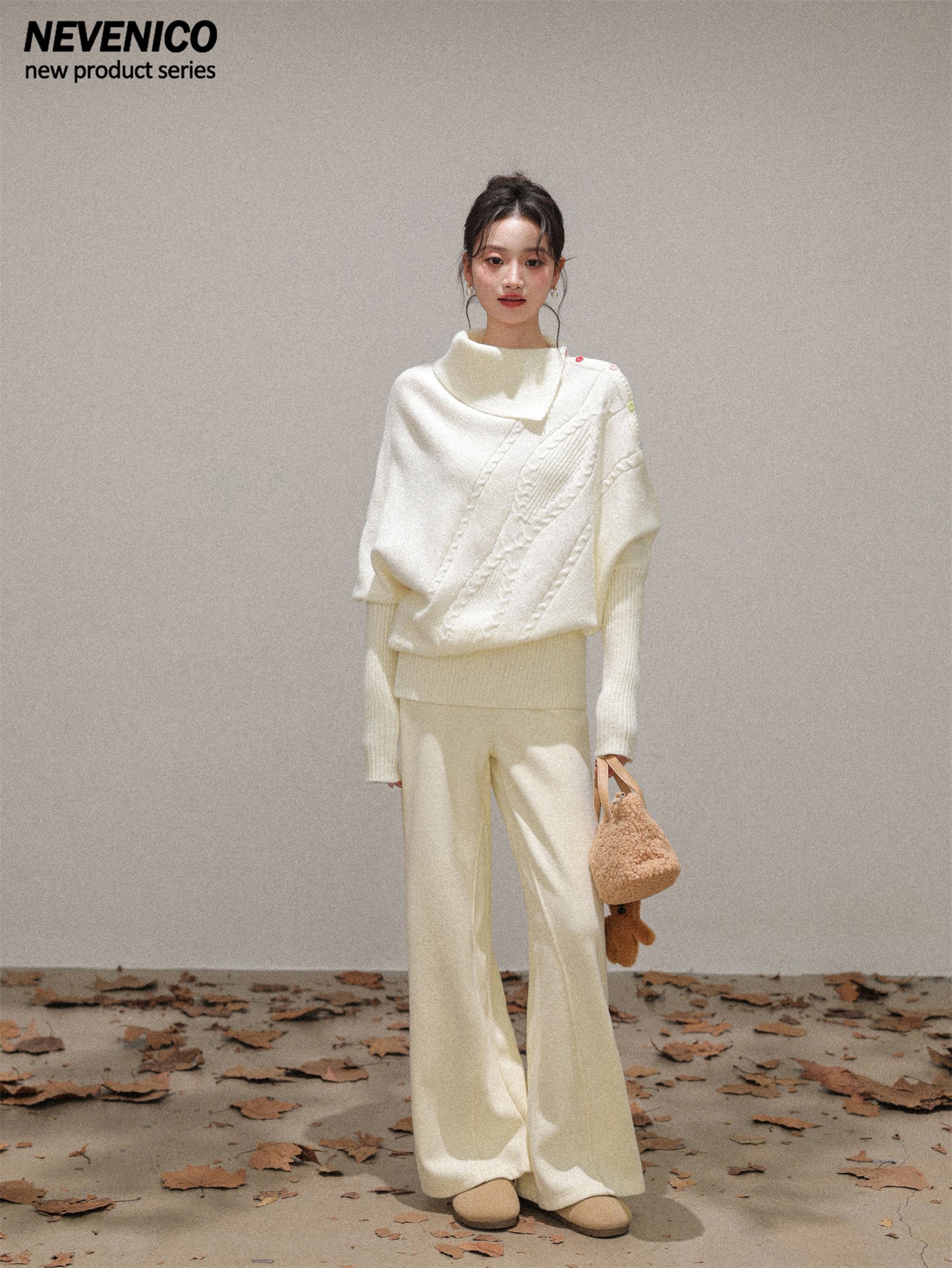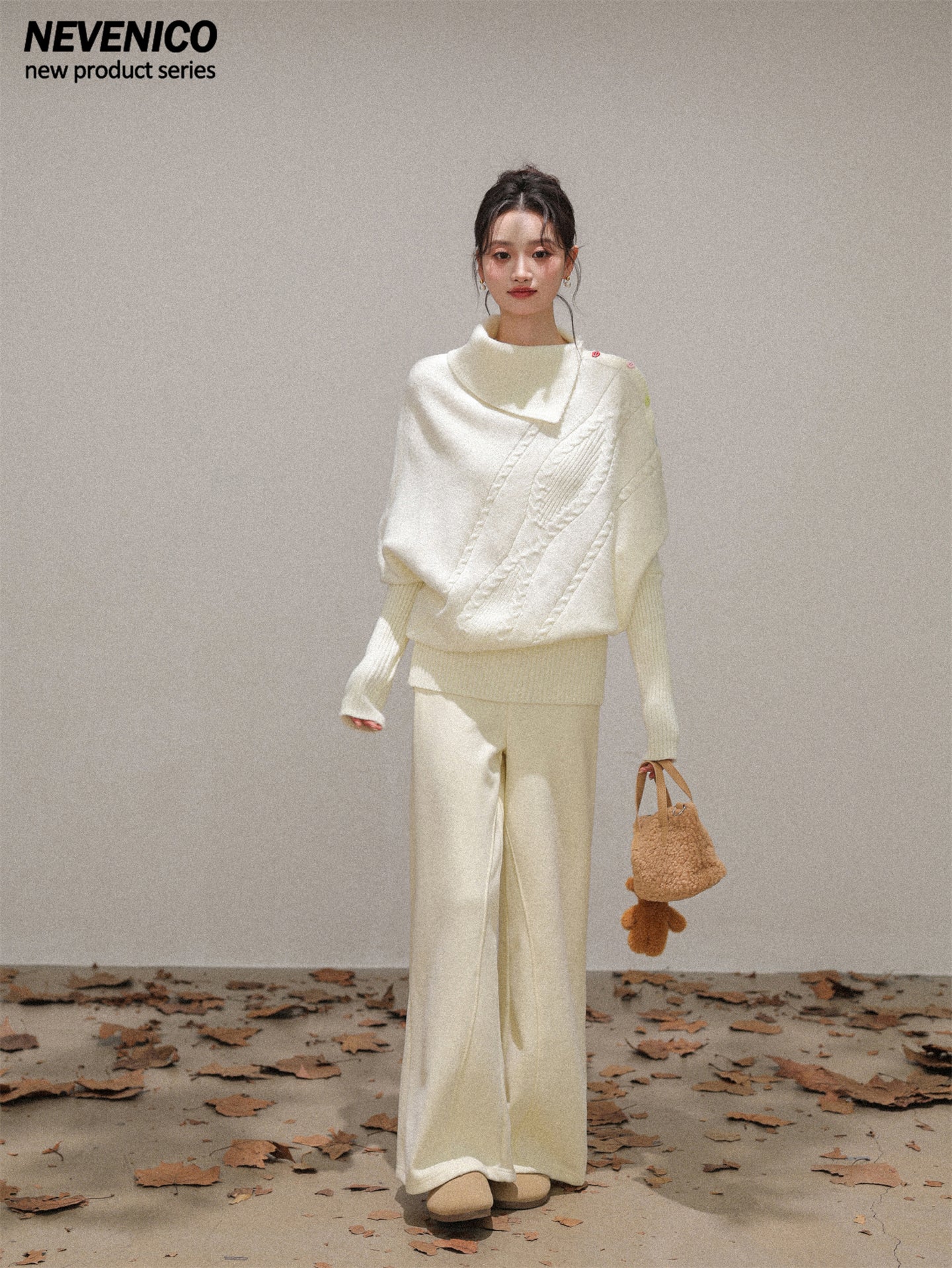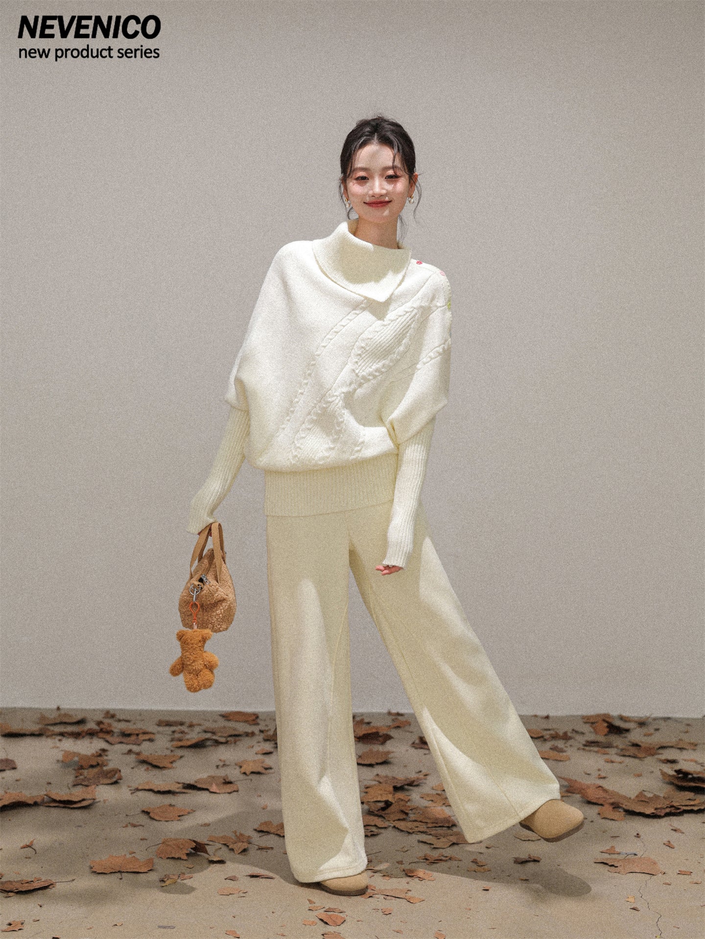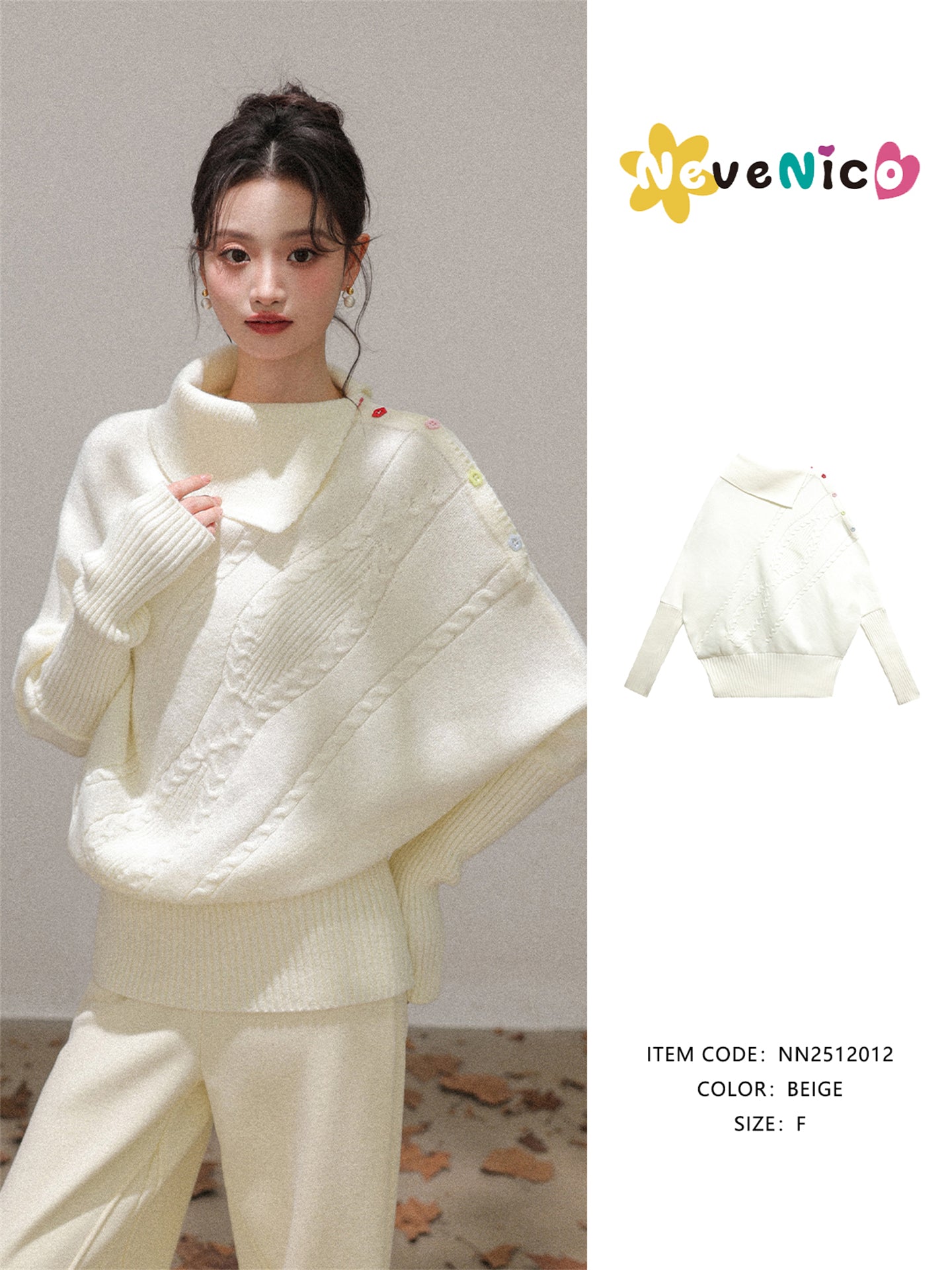 NEVENICO Cable-Knit Turtleneck Cape Sweater