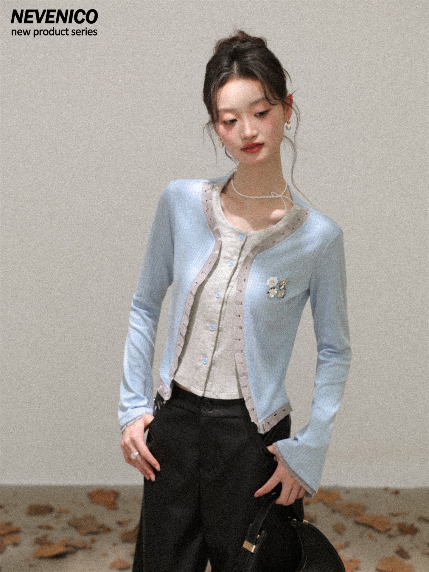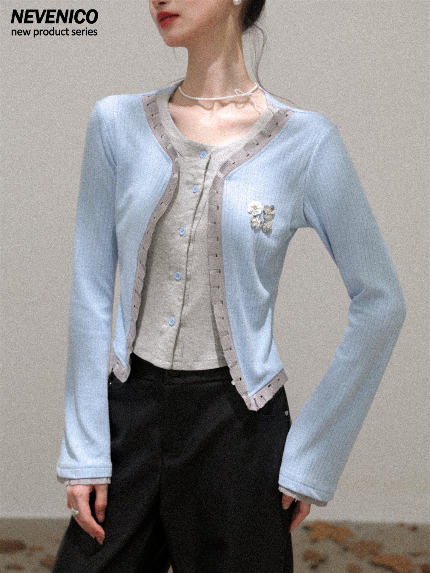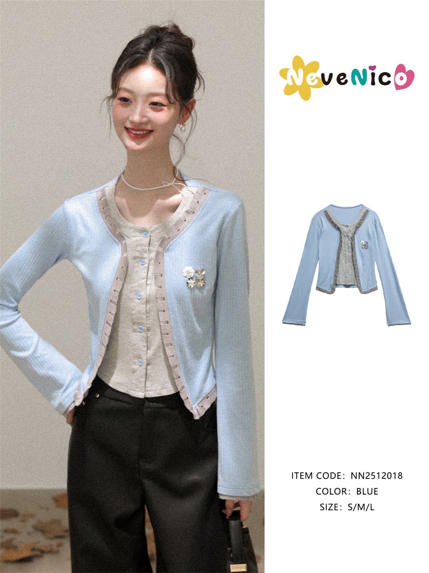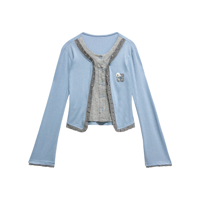 NEVENICO Distressed Color-Block Faux Two-Piece Knit Top
