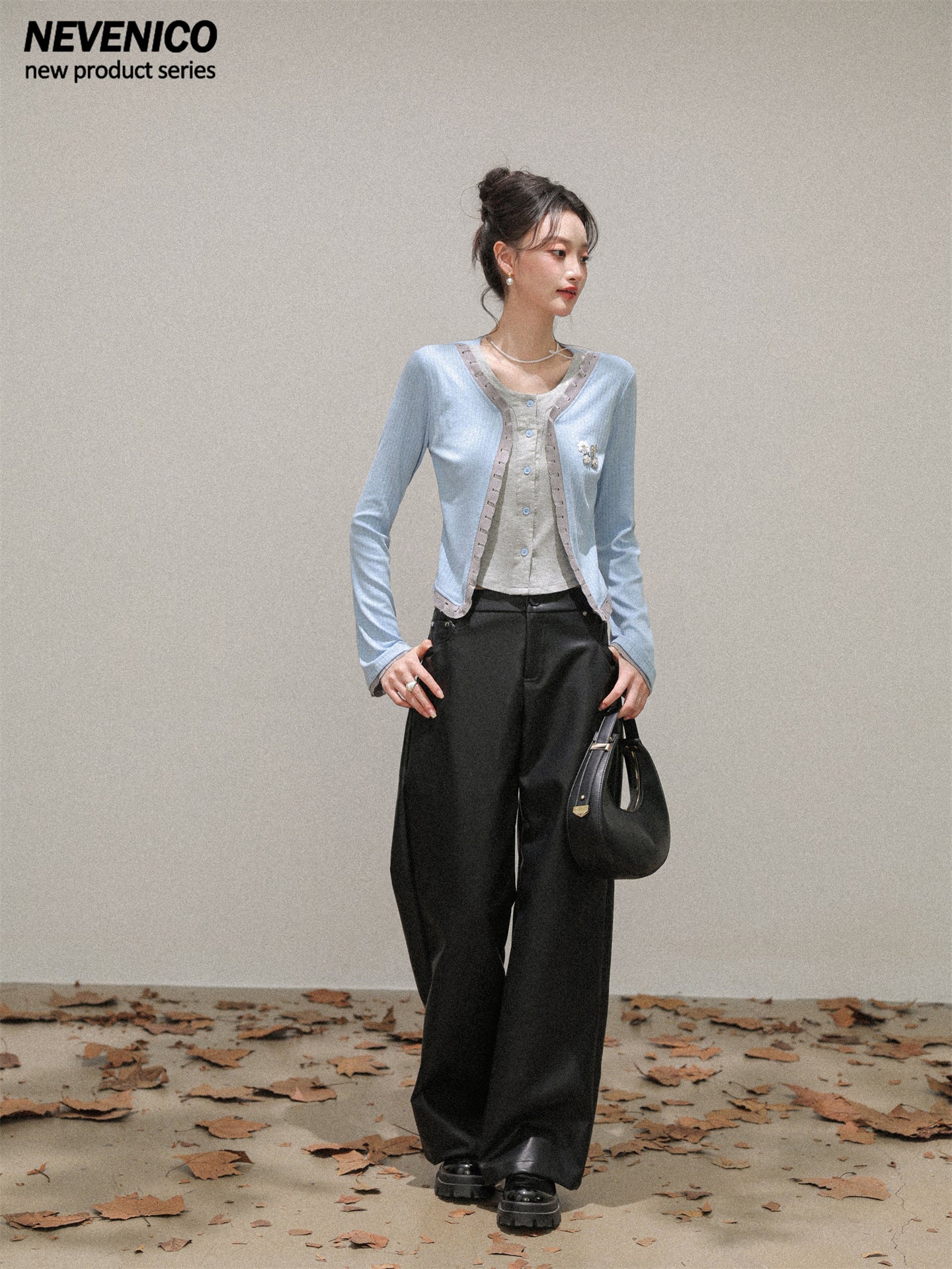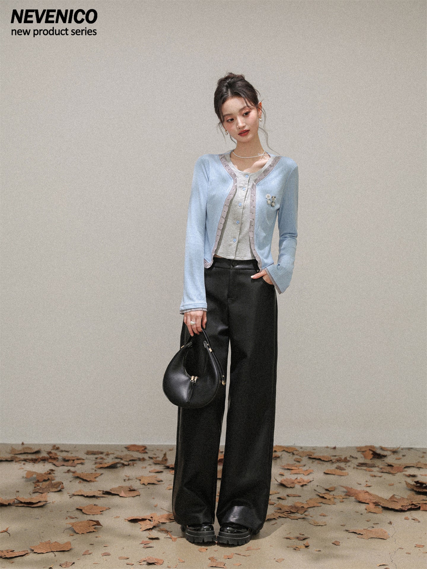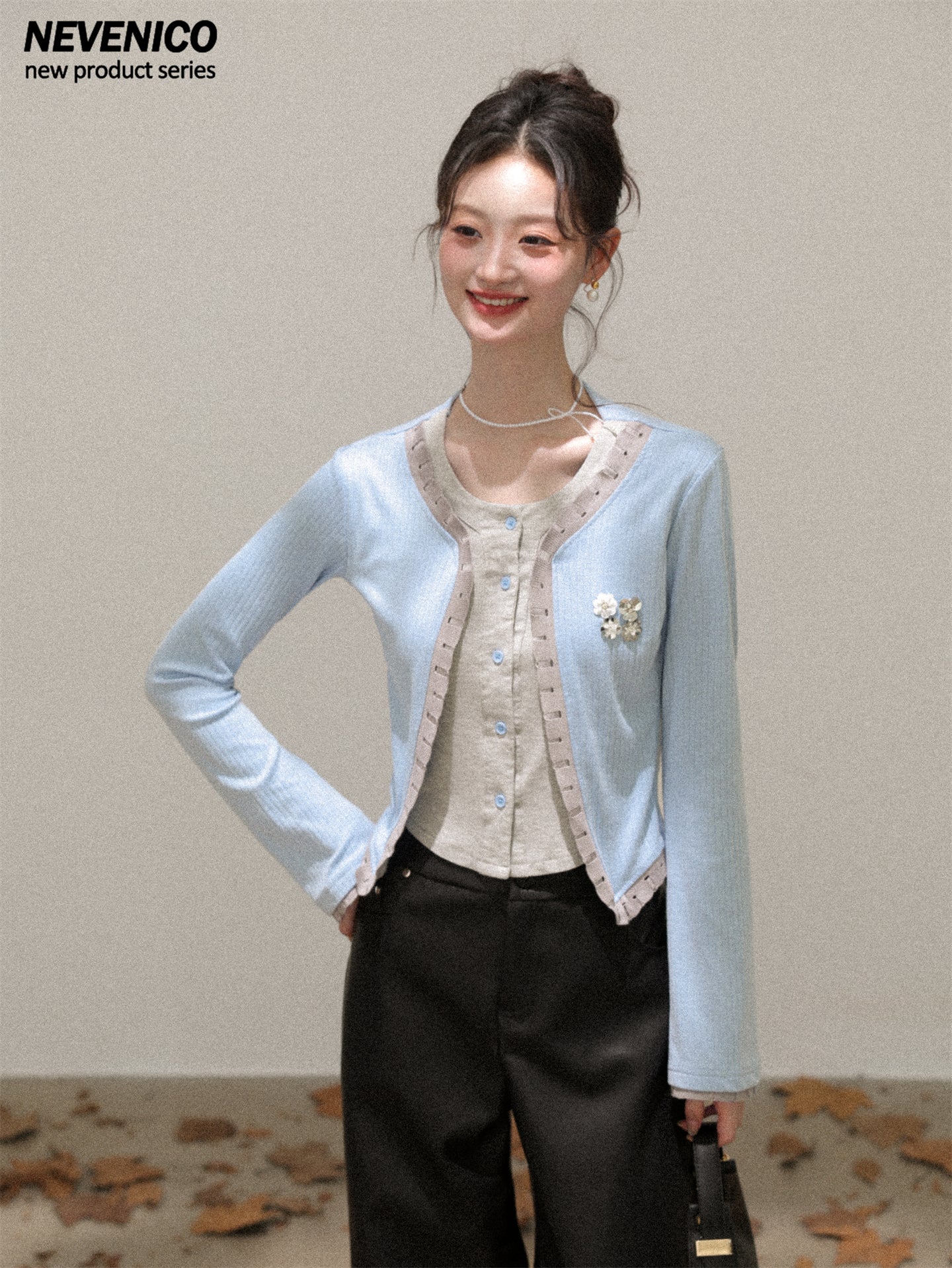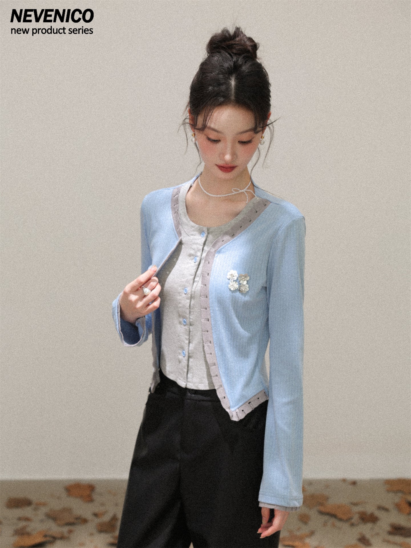 NEVENICO Distressed Color-Block Faux Two-Piece Knit Top
