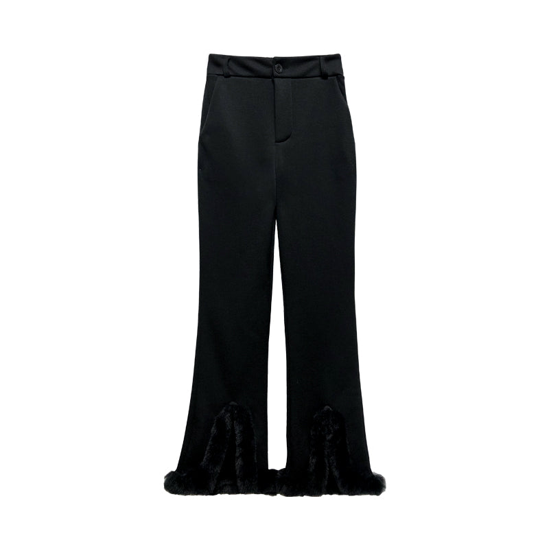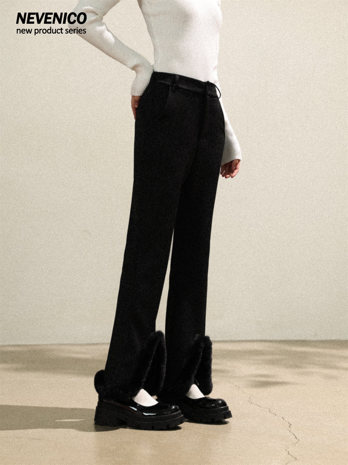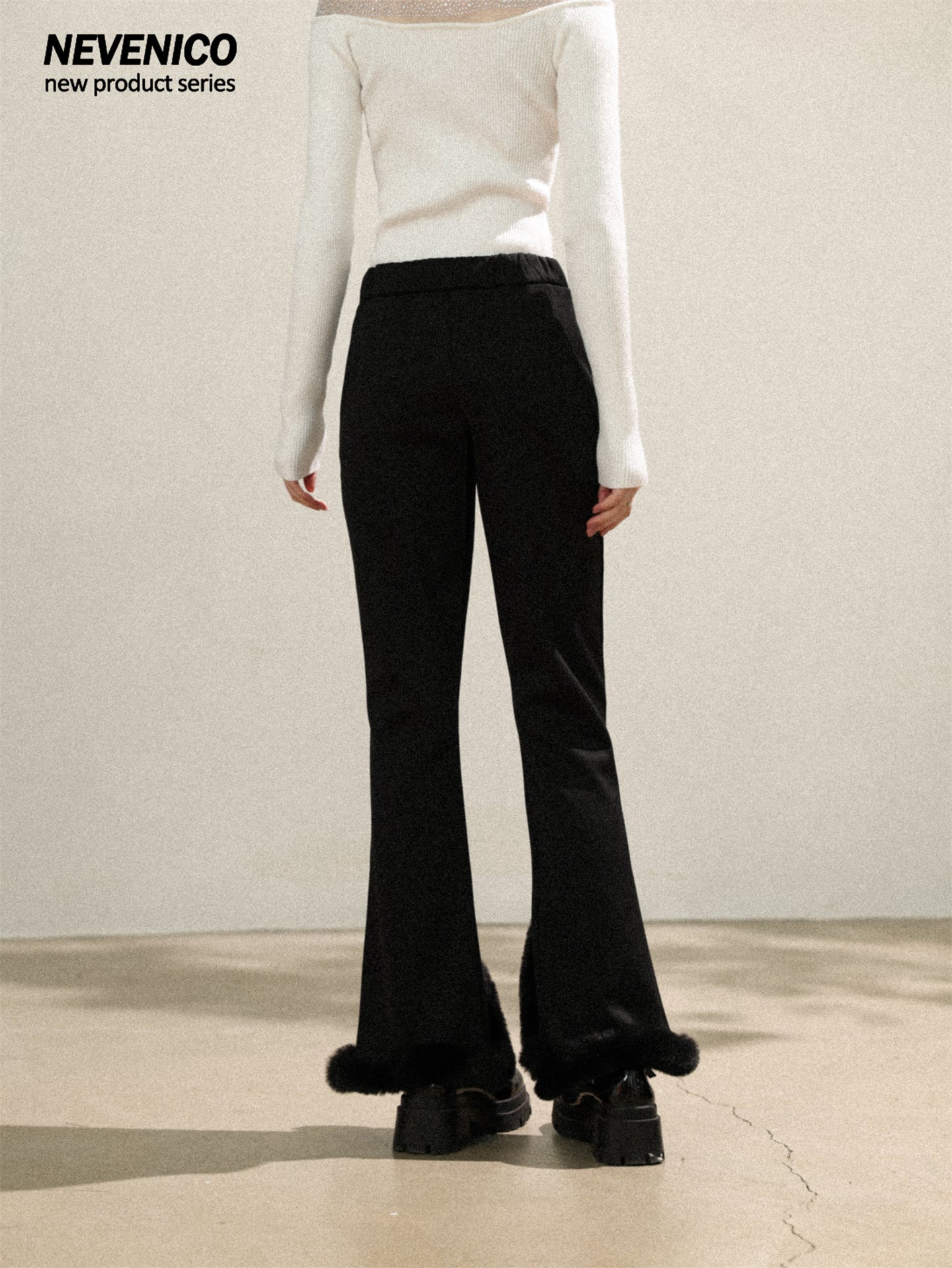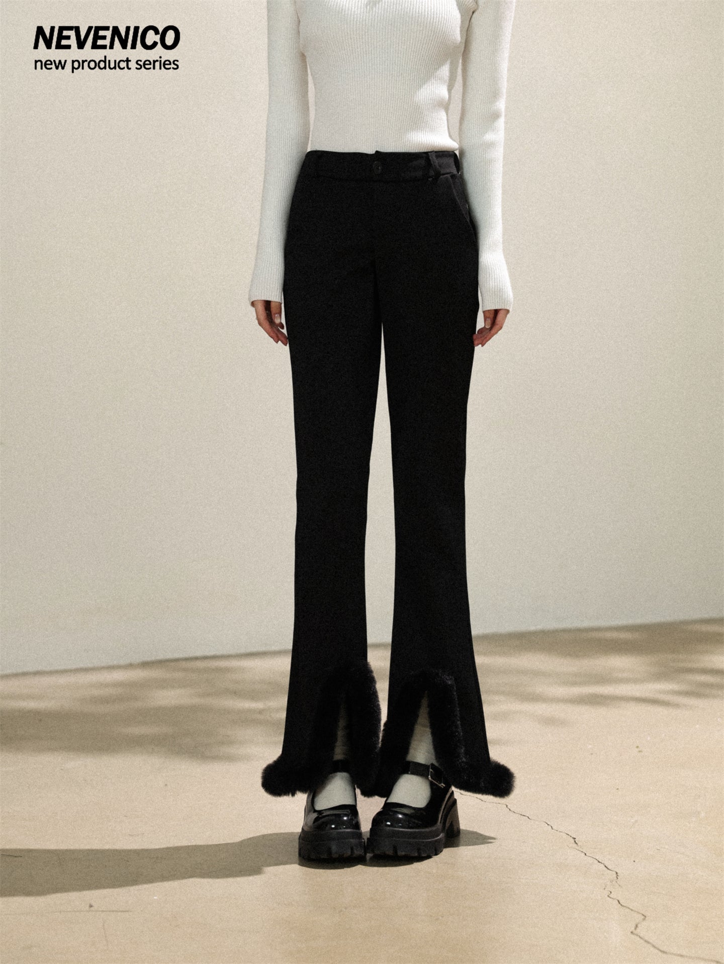 NEVENICO Fleece Lined Furry Panel Slit Pants