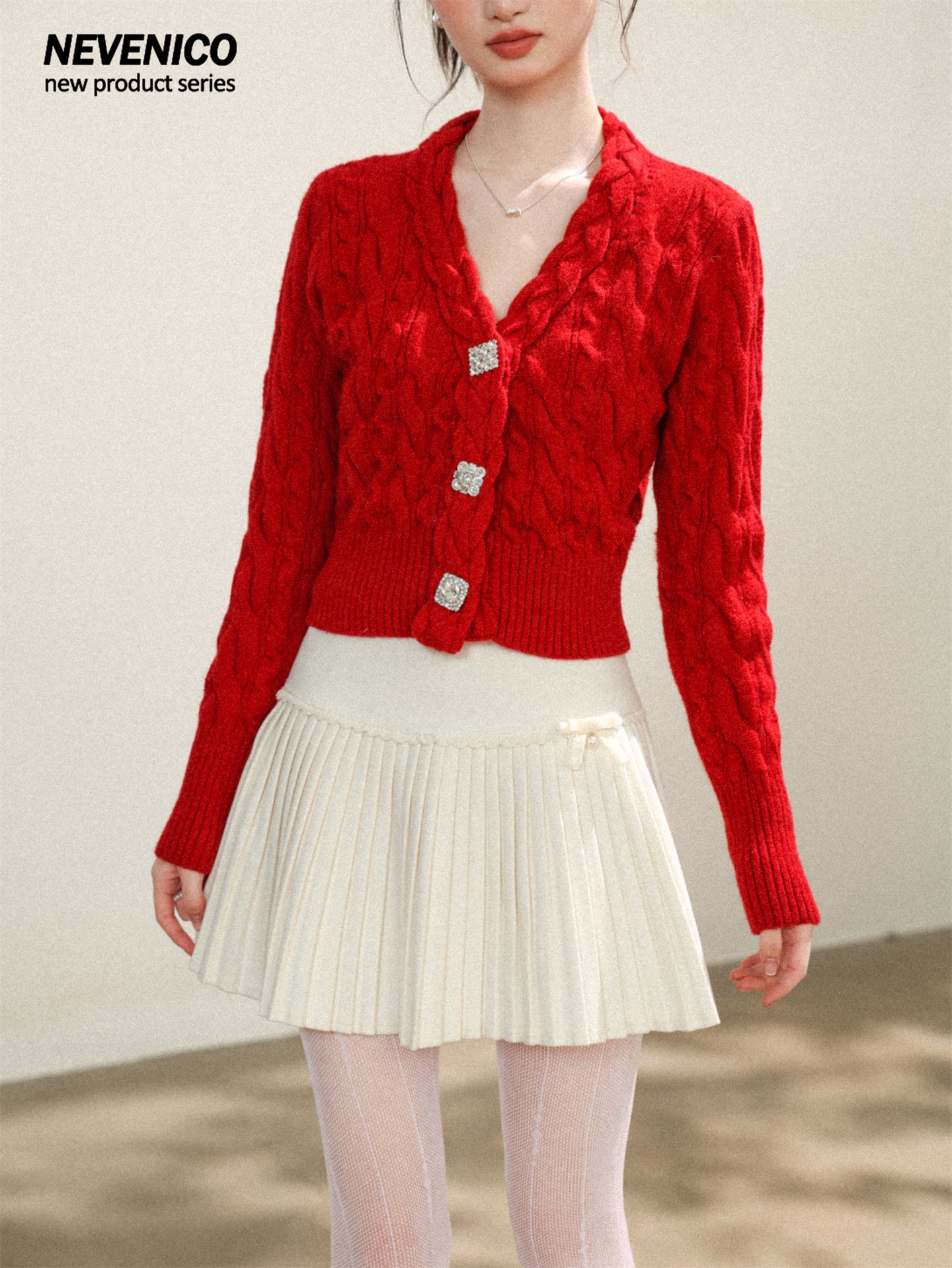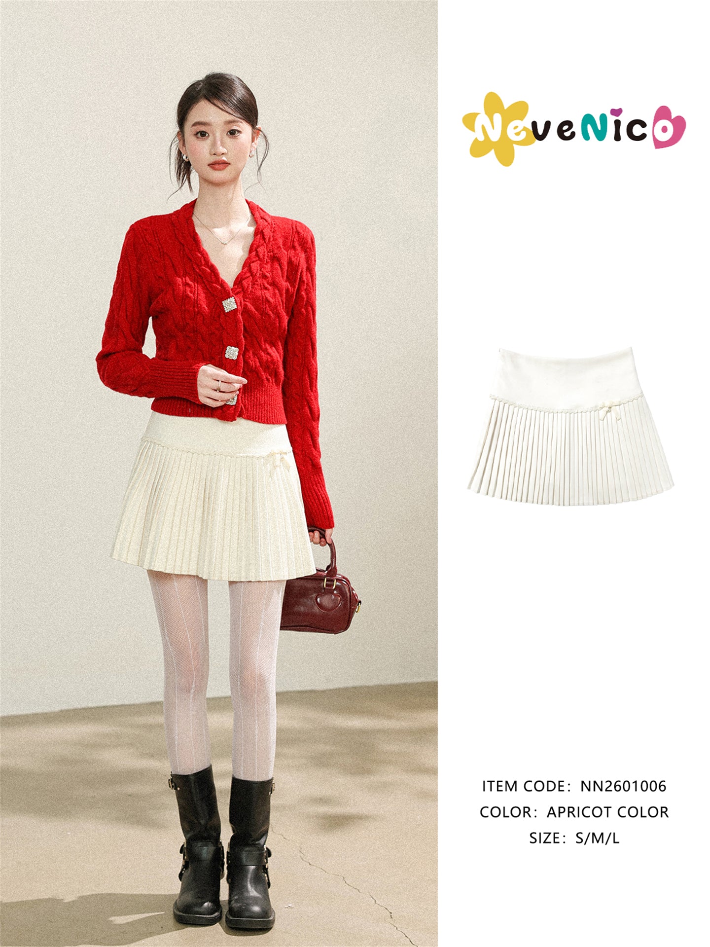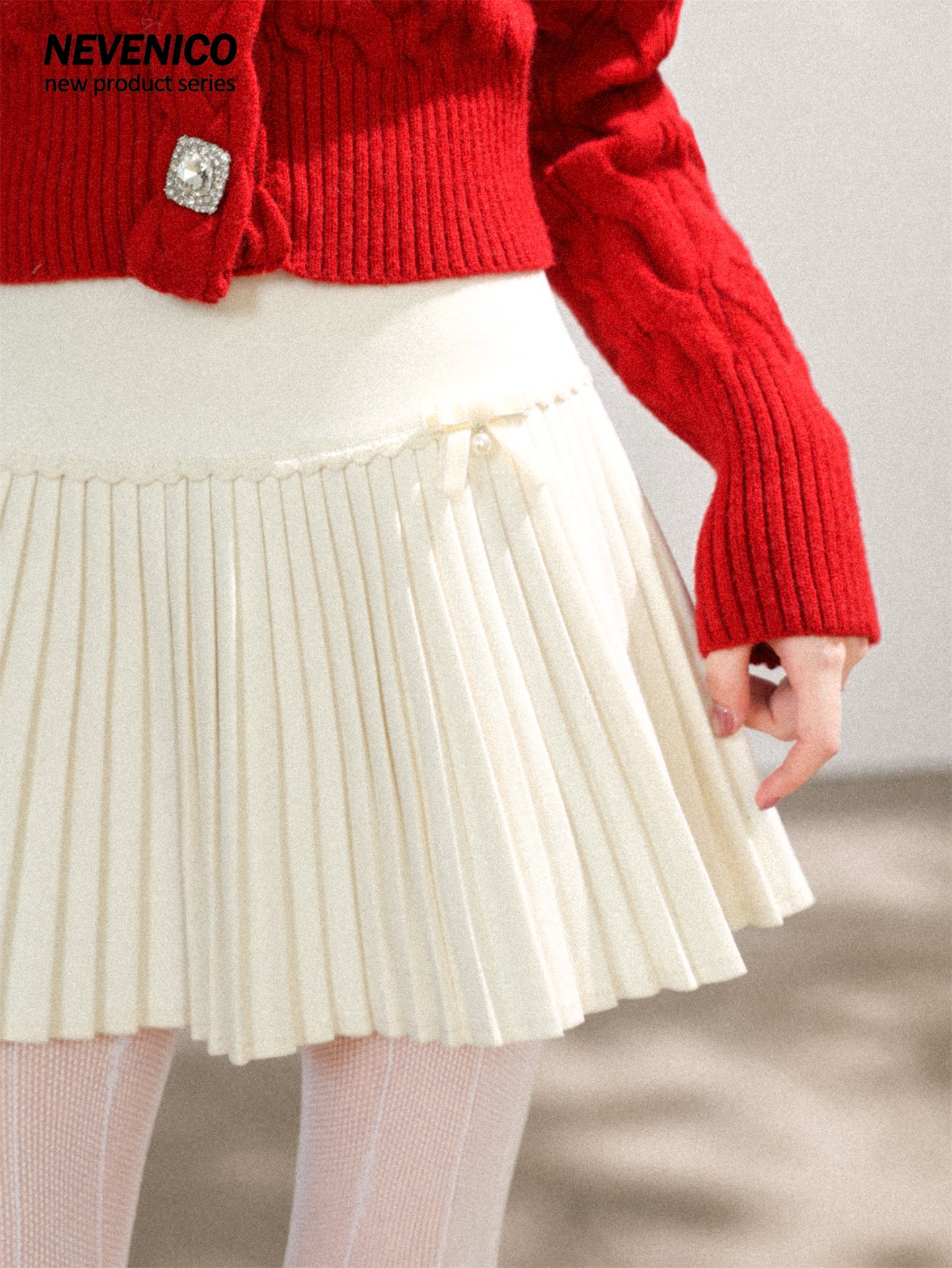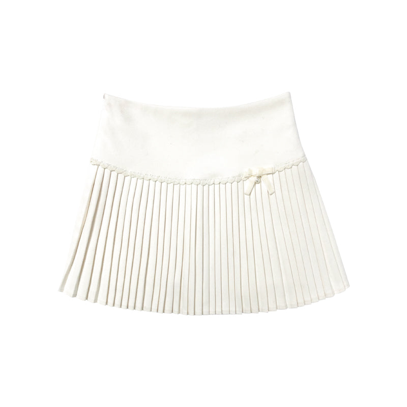 NEVENICO Lace Panel Pleated Skirt