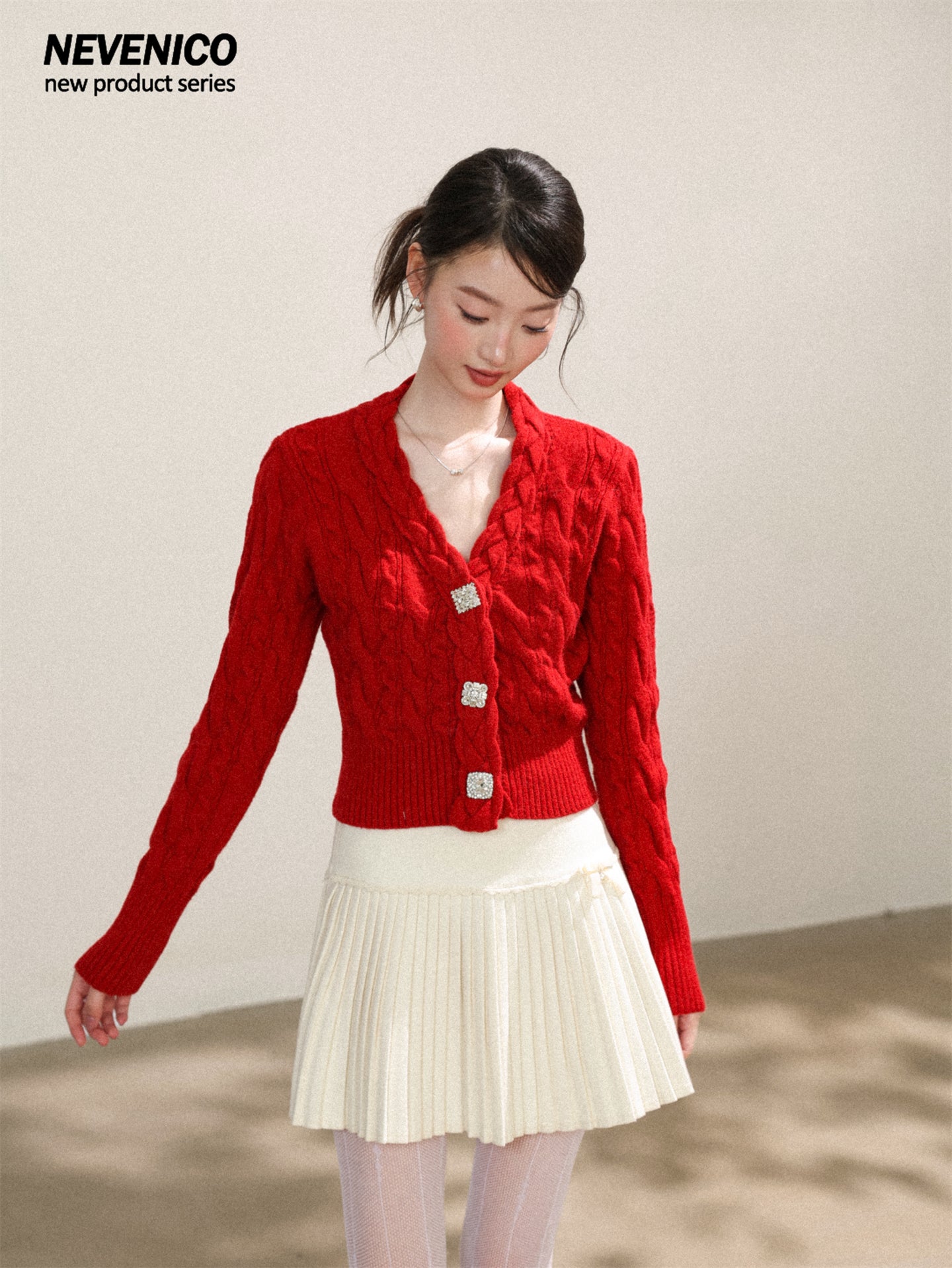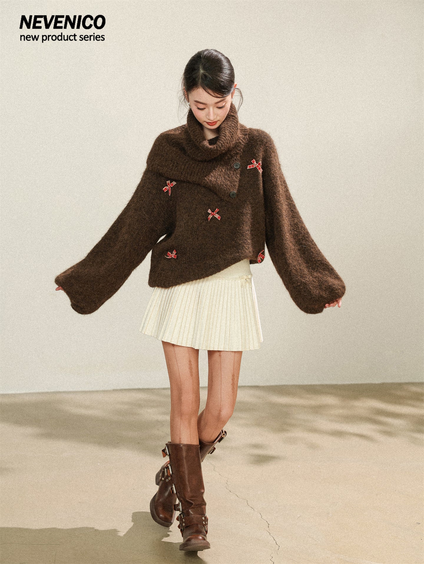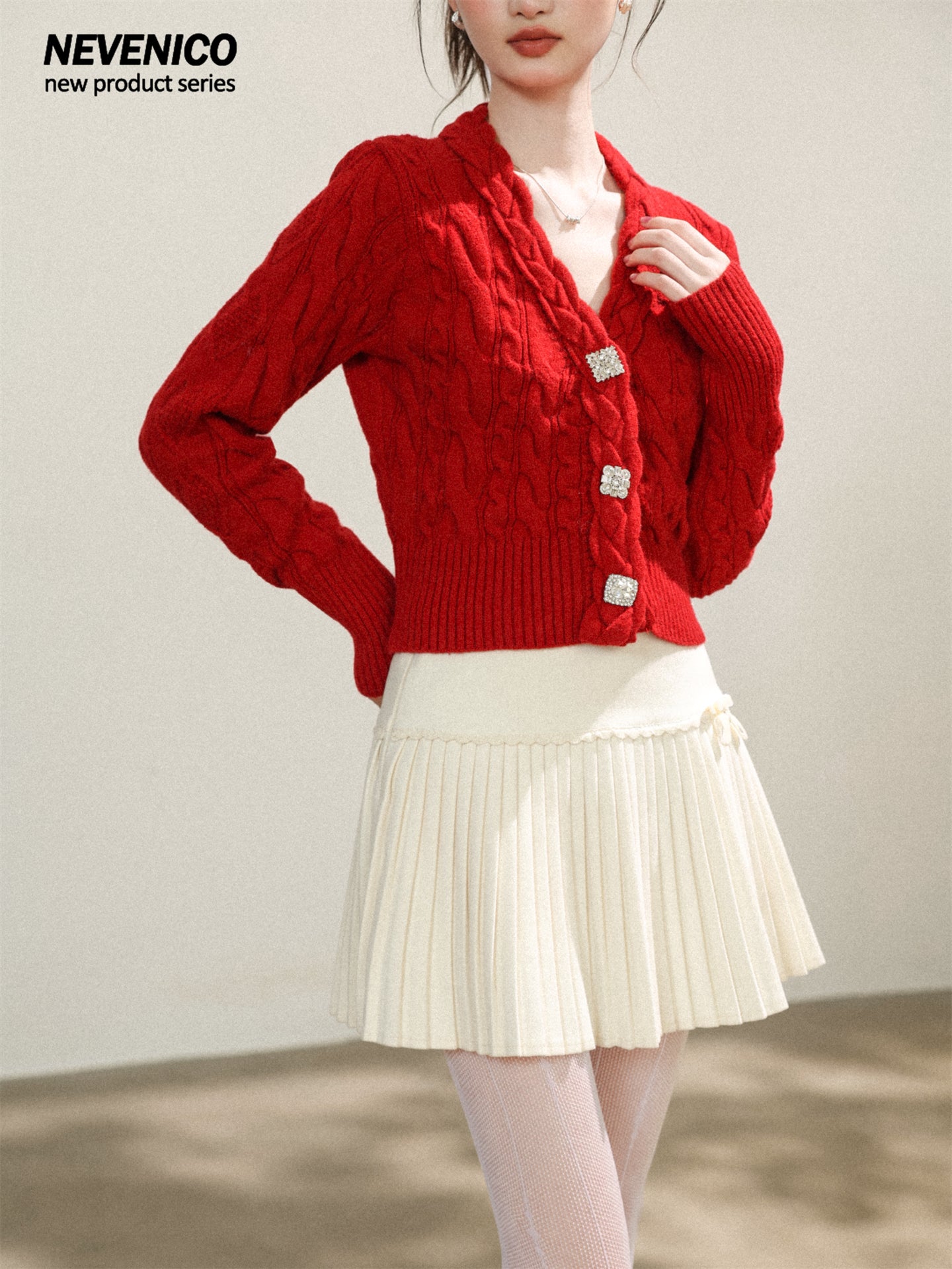 NEVENICO Lace Panel Pleated Skirt