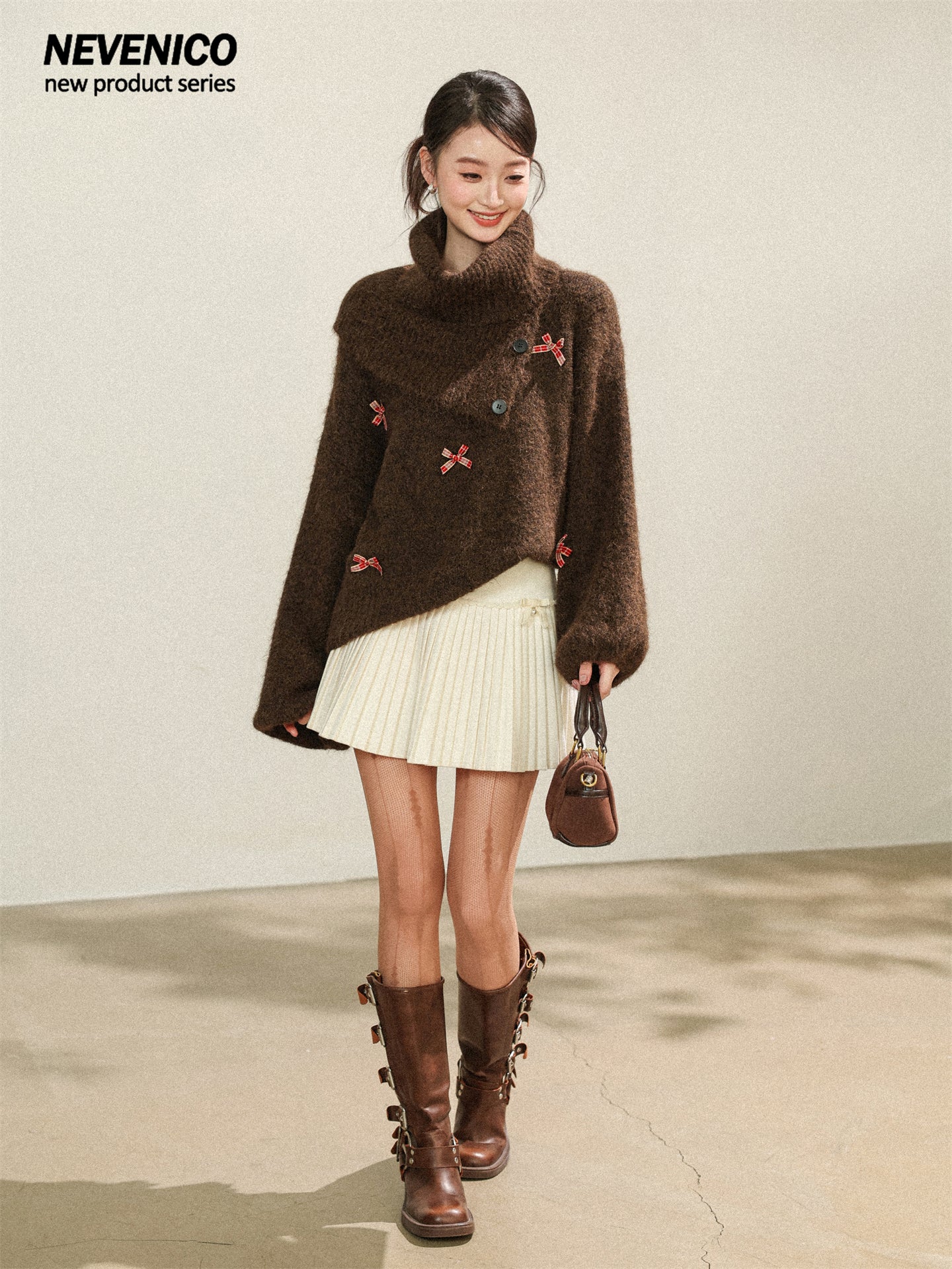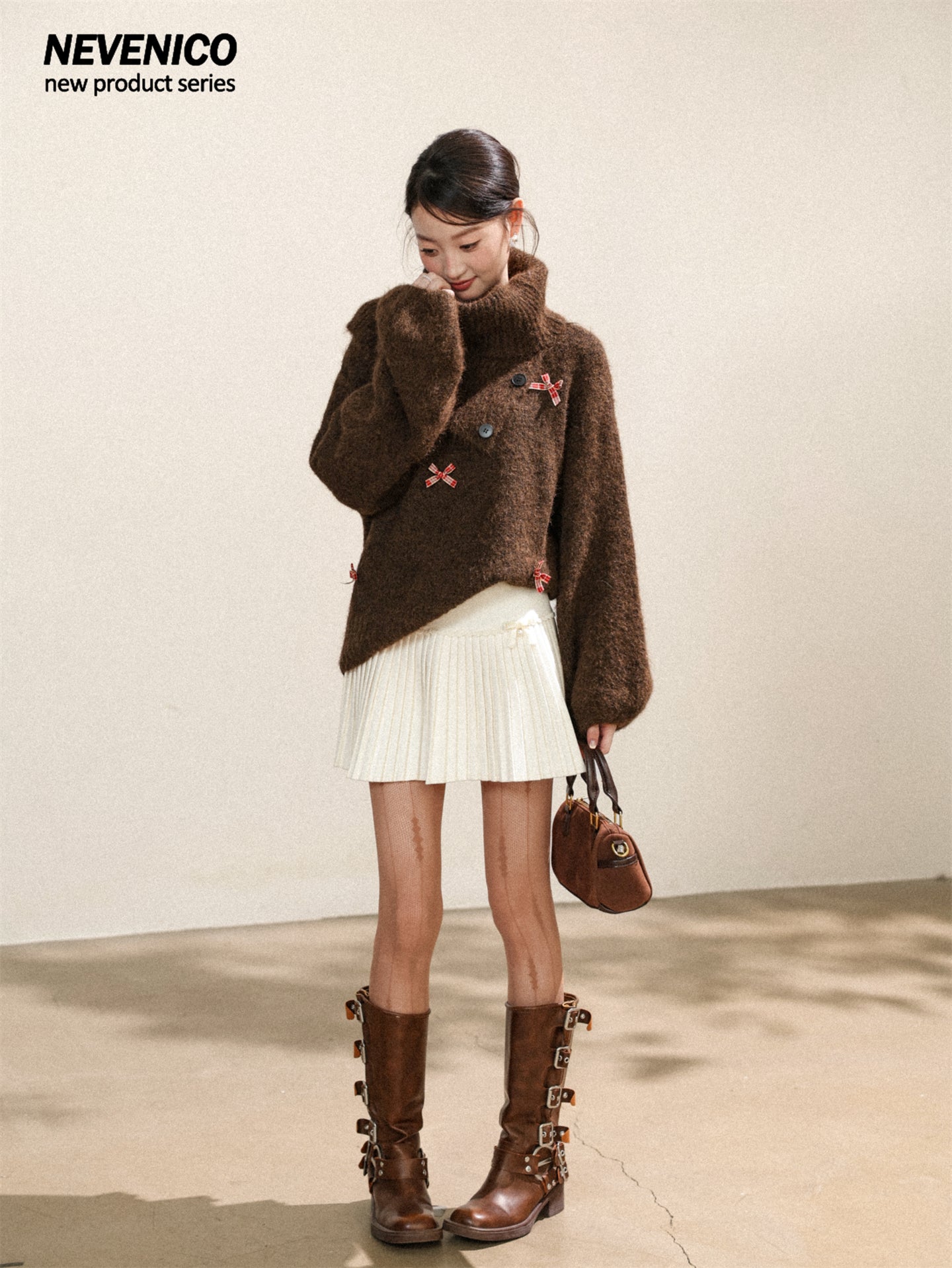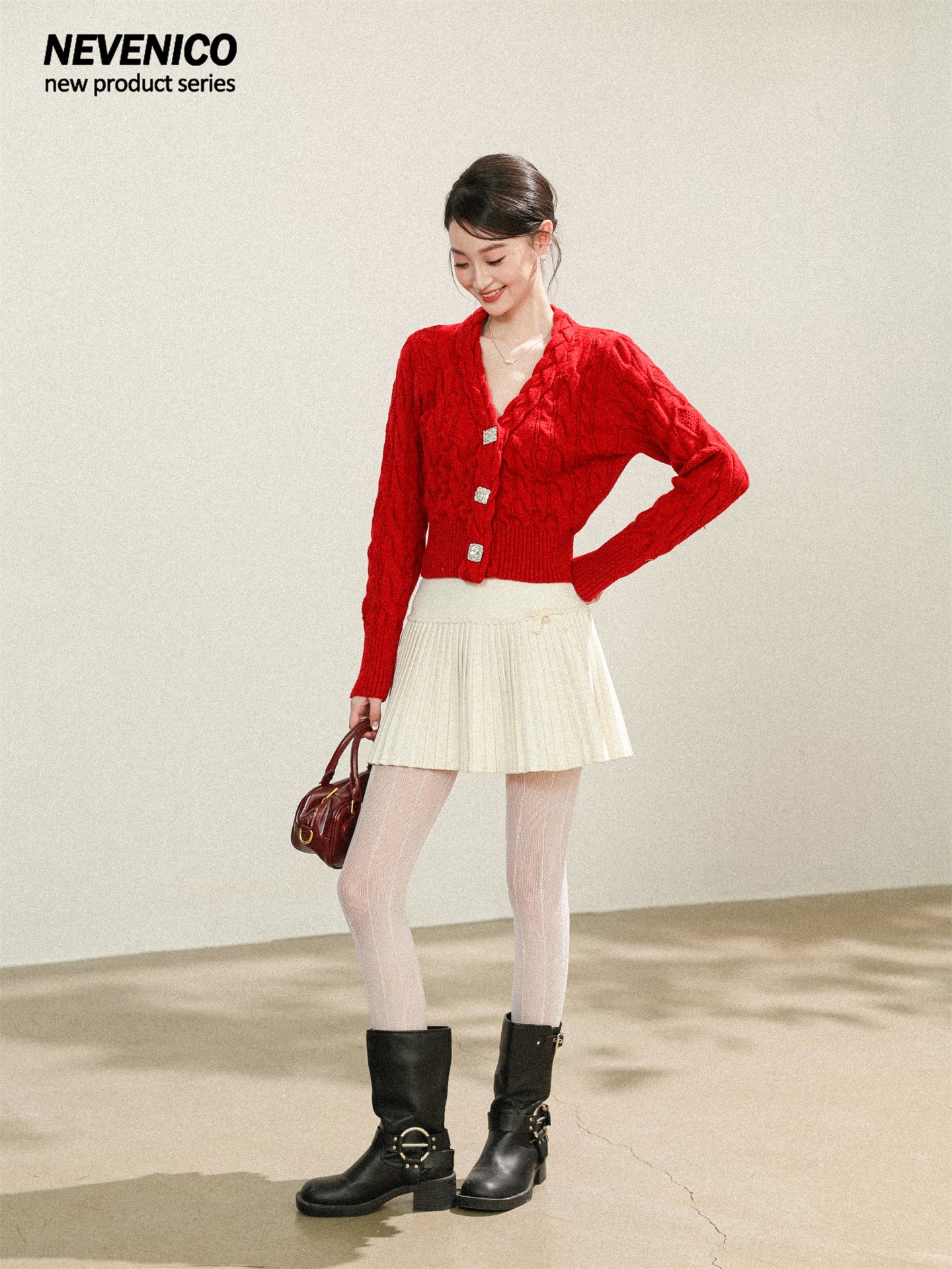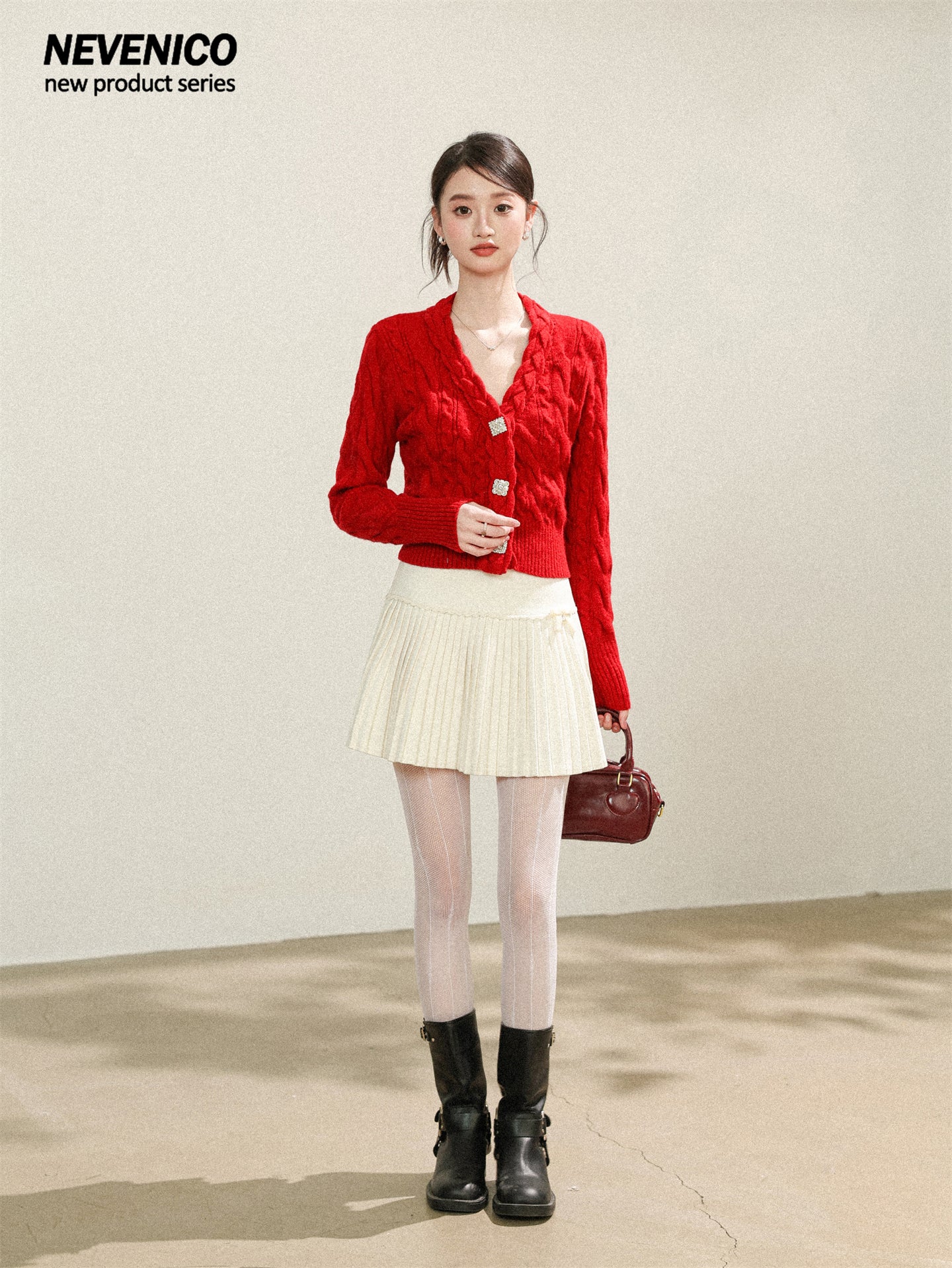 NEVENICO Lace Panel Pleated Skirt
