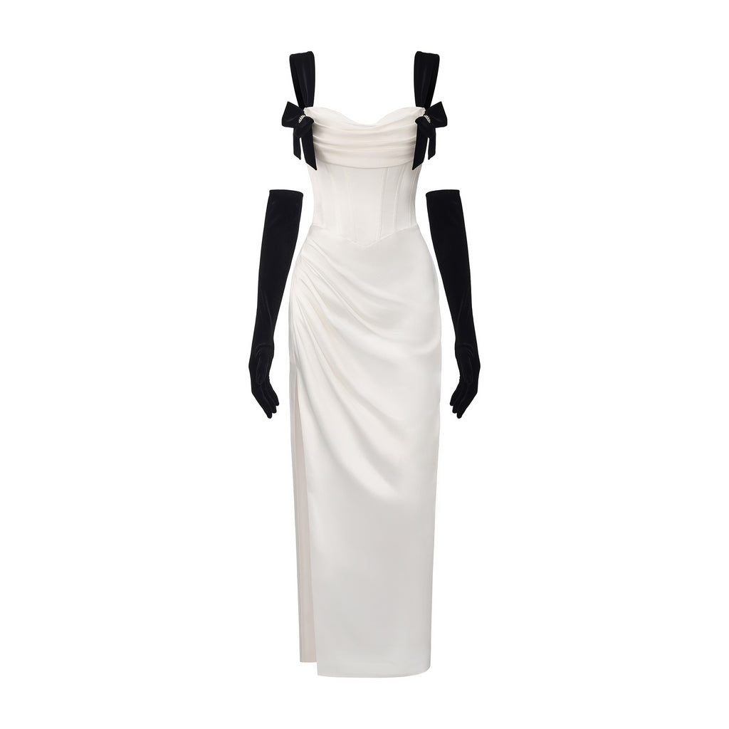 NANA JACQUELINE Grace Bow Maxi Dress (White)