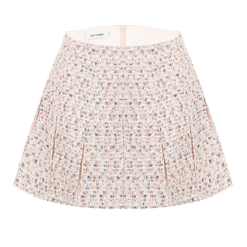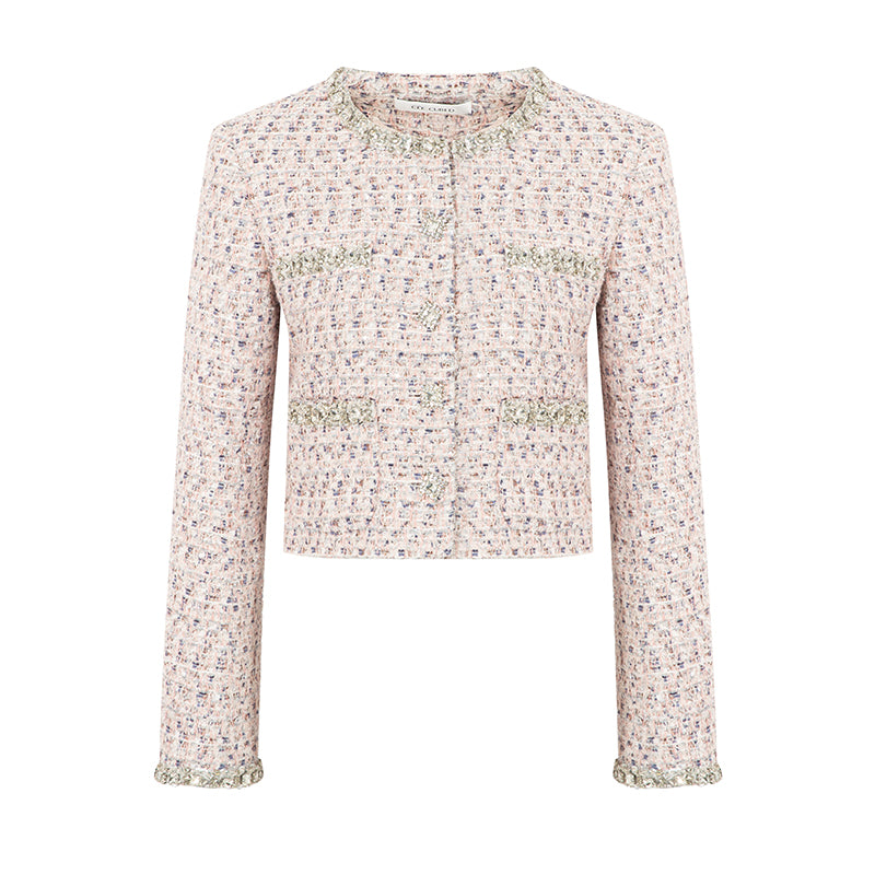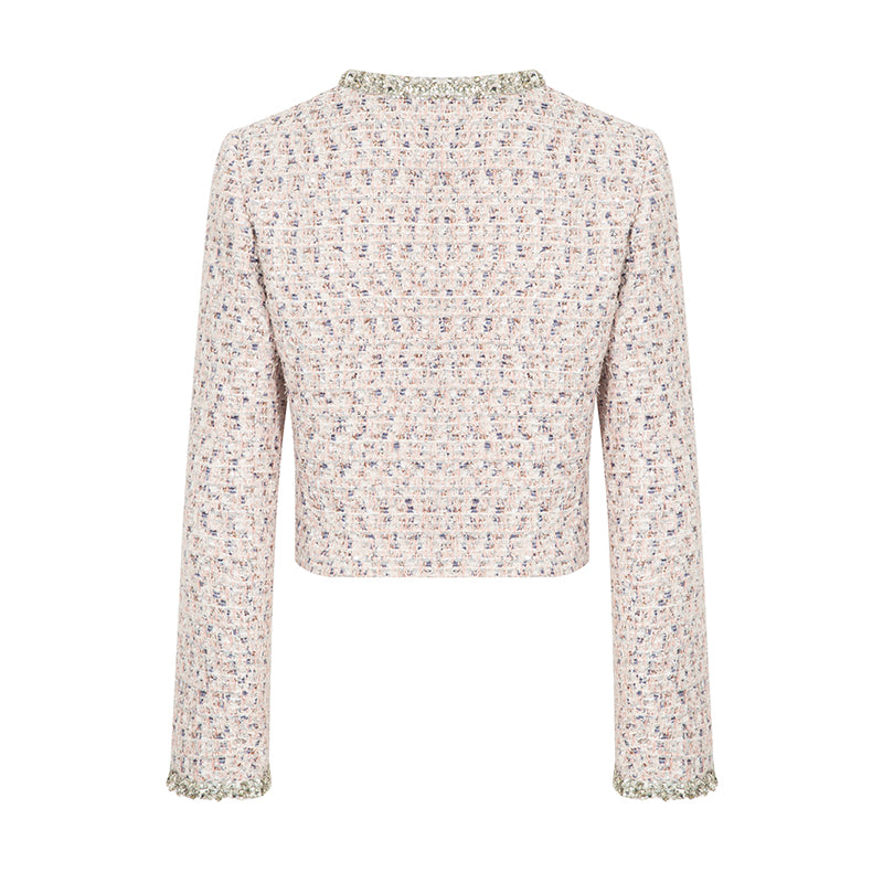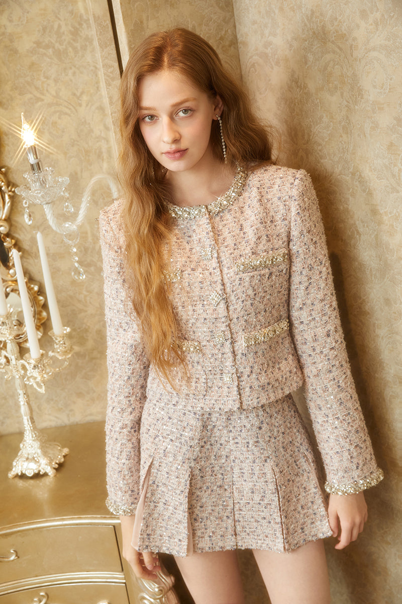 CEE CUBED Grey Lilac Crystal Embellished Cropped Jacket & Pleated Skirt Set