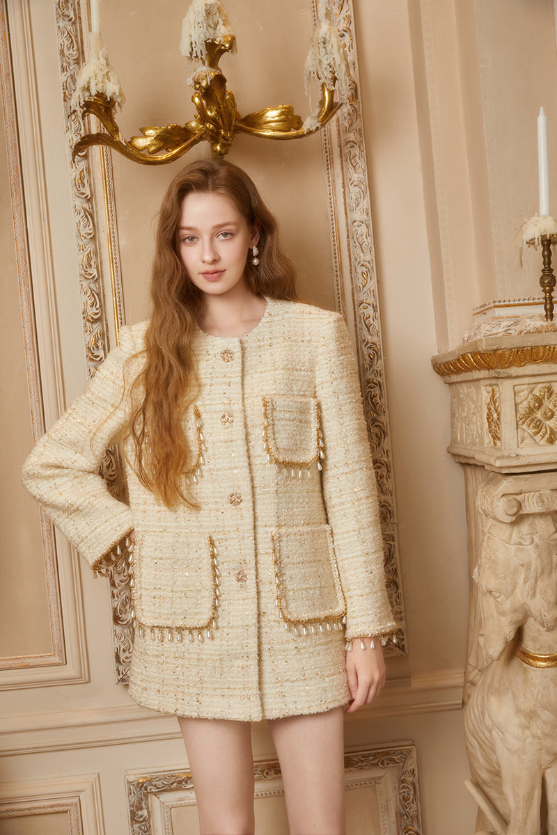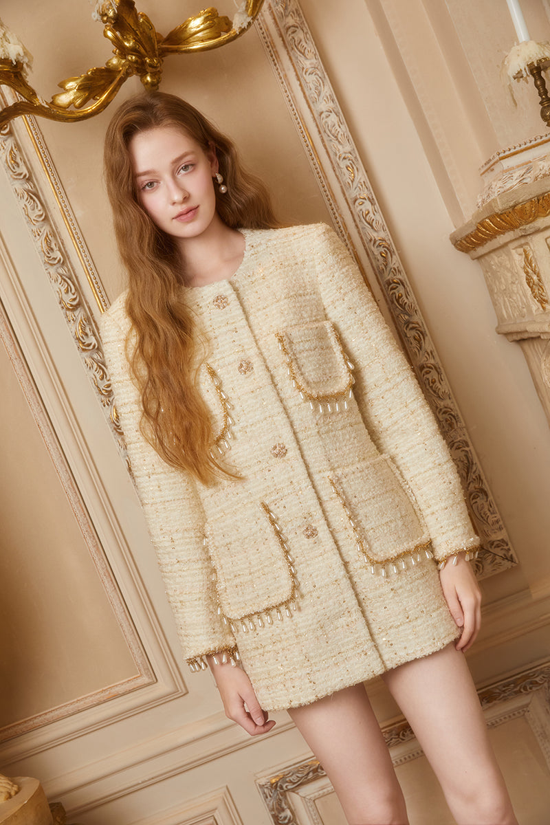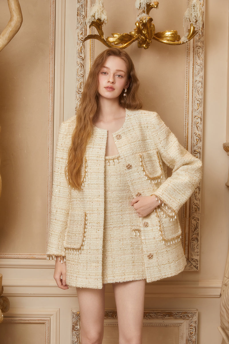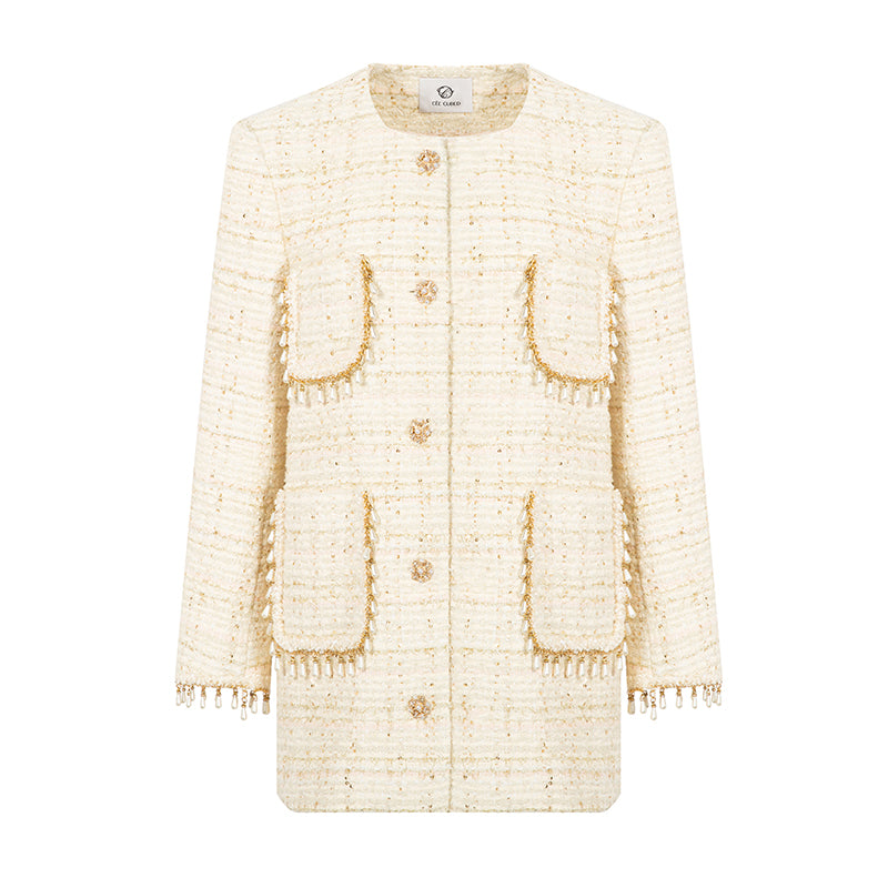 CEE CUBED Ivory Pearl Chain Bouclé Jacket